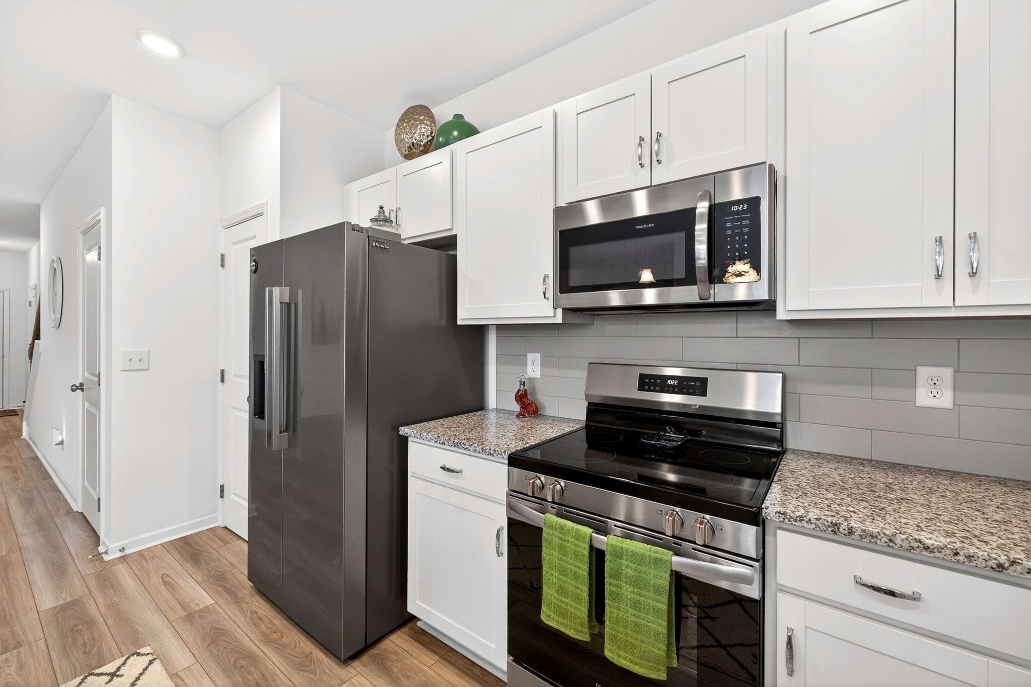 - Electric Oven, Electric Range, Dishwasher, Disposal, Microwave, Stainless Steel Appliance(s)