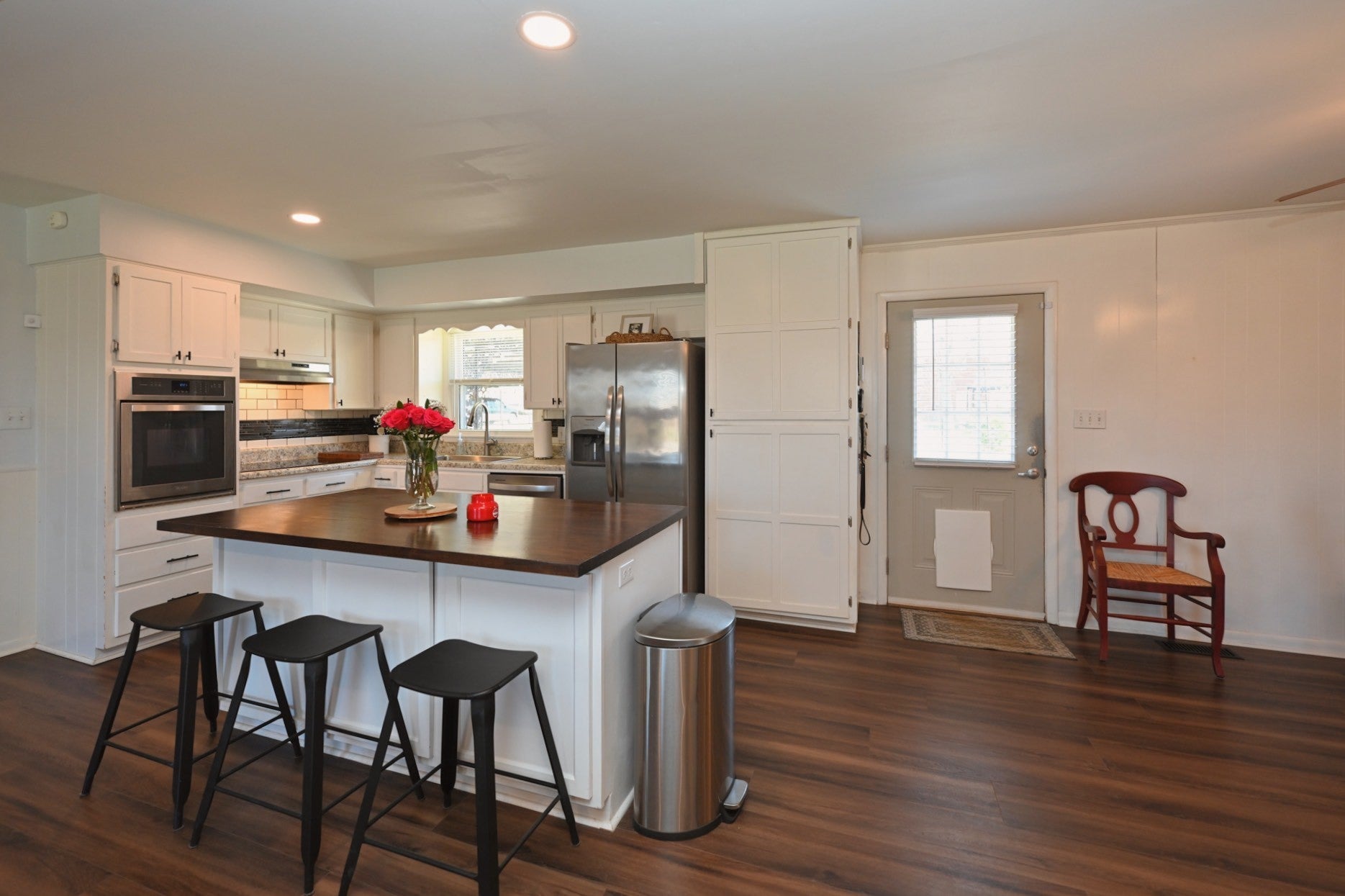 - Electric Oven, Cooktop, Dishwasher, Disposal, Microwave, Refrigerator