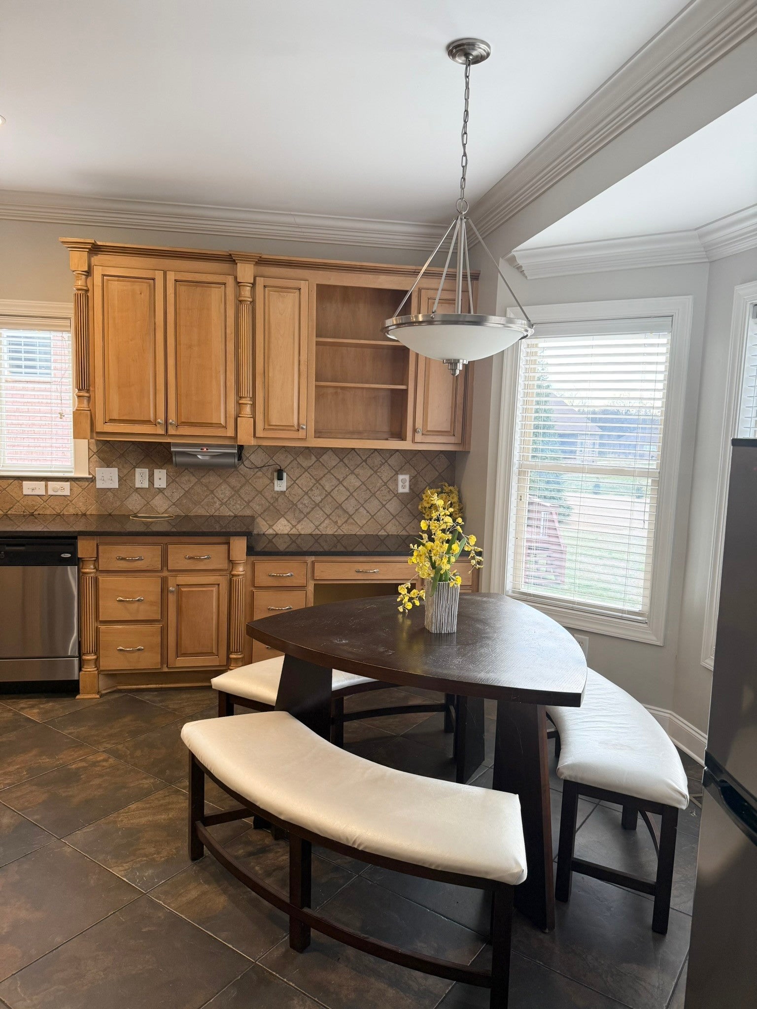 - Built-In Electric Oven, Built-In Gas Range, Dishwasher, Disposal, ENERGY STAR Qualified Appliances, Microwave, Refrigerator, Stainless Steel Appliance(s)