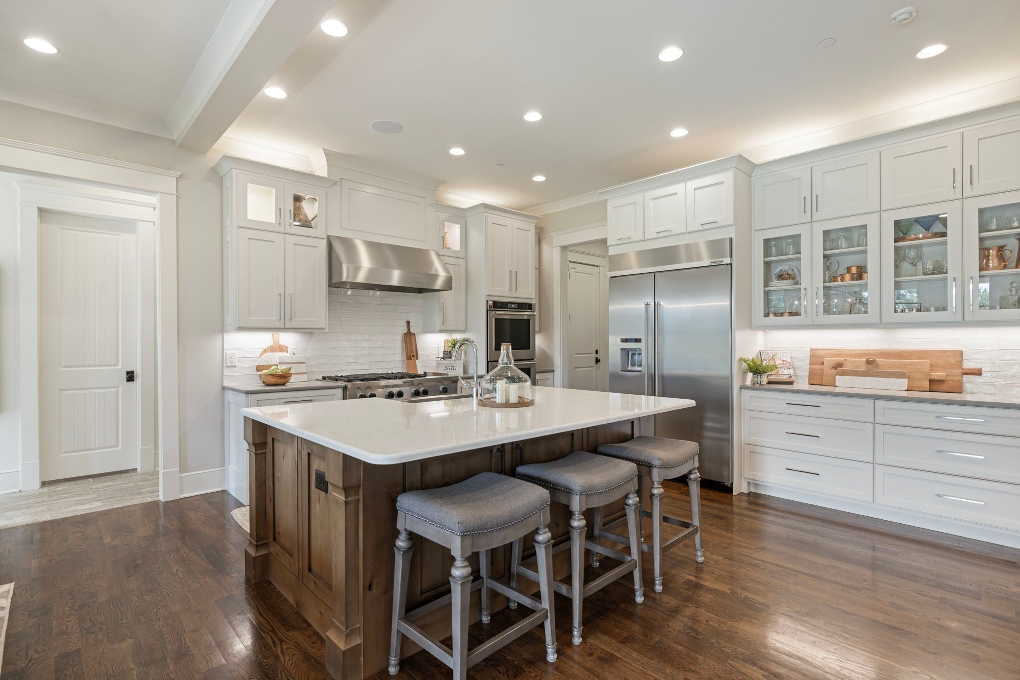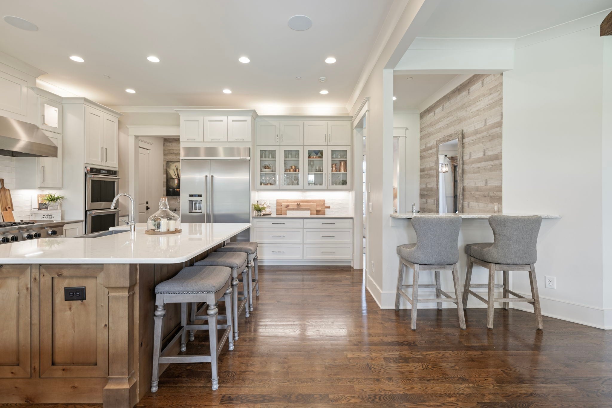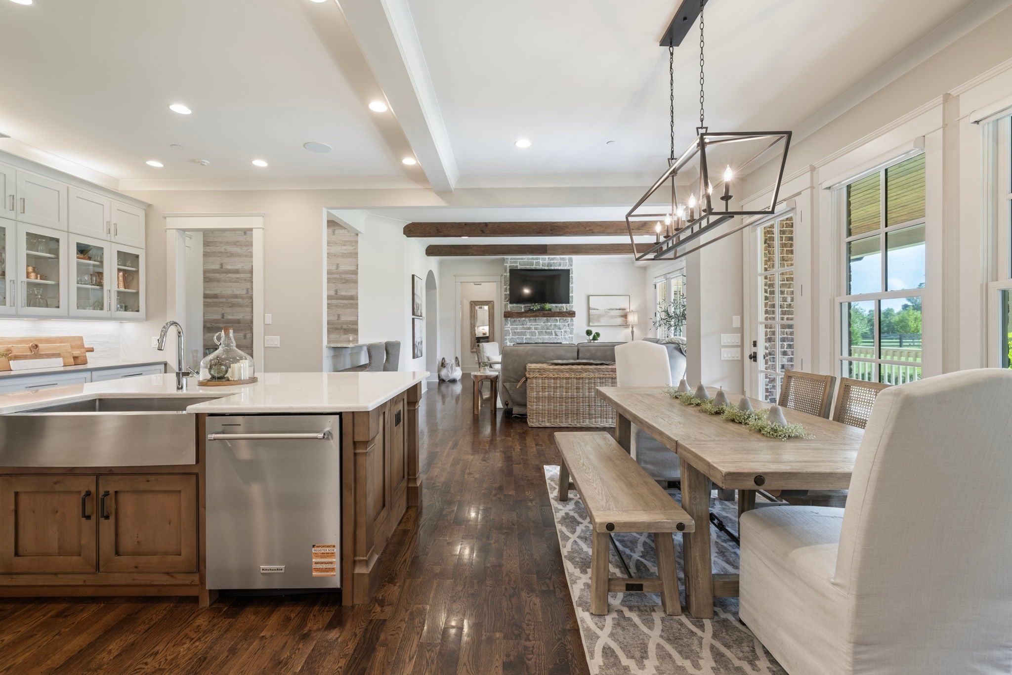 This custom-built home sits on 1.7 flat acres in the highly sought-after Black Hawk neighborhood in beautiful Arrington. The layout features an open-concept main living area with stunning hardwood floors, french doors that flood the space with natural light, and rustic accents throughout. The main level offers a bright formal dining/sitting room with coffered ceilings and two full bedroom suites. Built-in speaker system, home sprinkler system, and automated window treatments. The spacious primary suite includes a spa-style en-suite bath and walk-in closet, while the private guest suite includes a Murphy bed, providing comfort and convenience for visitors, and then transform it into a home office. The chef’s kitchen is equipped with a 48-inch gas range with griddle, built-in refrigerator, oversized island, custom cabinetry, butler’s pantry, wine bar, and a separate cooktop for larger meal preparation needs. The living room is highlighted by a floor-to-ceiling stone fireplace. Upstairs, the home offers two additional bedroom suites, a large recreation room, and a game room, making it an entertainer’s dream! Outdoor living is just as impressive, and it includes a covered patio with built-in gas fire pit, in-ground trampoline, professional landscape lighting, full-yard irrigation, and a fully fenced yard with a high-end electric privacy gate. Enjoy peaceful sunrises from the back patio and vibrant sunsets from the front porch. Additional highlights include a three-car garage, tankless water heater, UV air purifier, and extensive storage and entertaining space. Recent upgrades within the past two years include newly finished epoxy garage floors, newly tiled showers, expanded and upgraded irrigation system, privacy trees, newly added landscape lighting, and new electric gate fencing in the entire property.