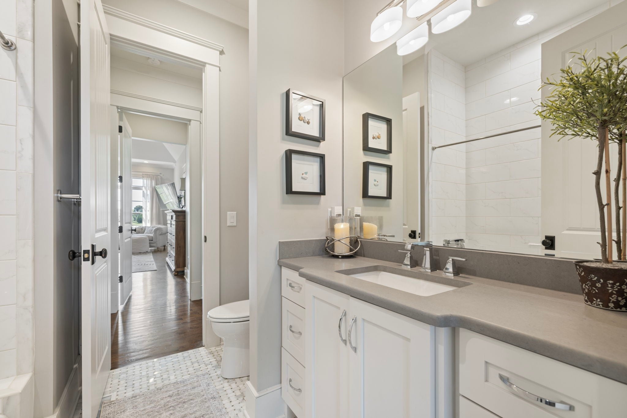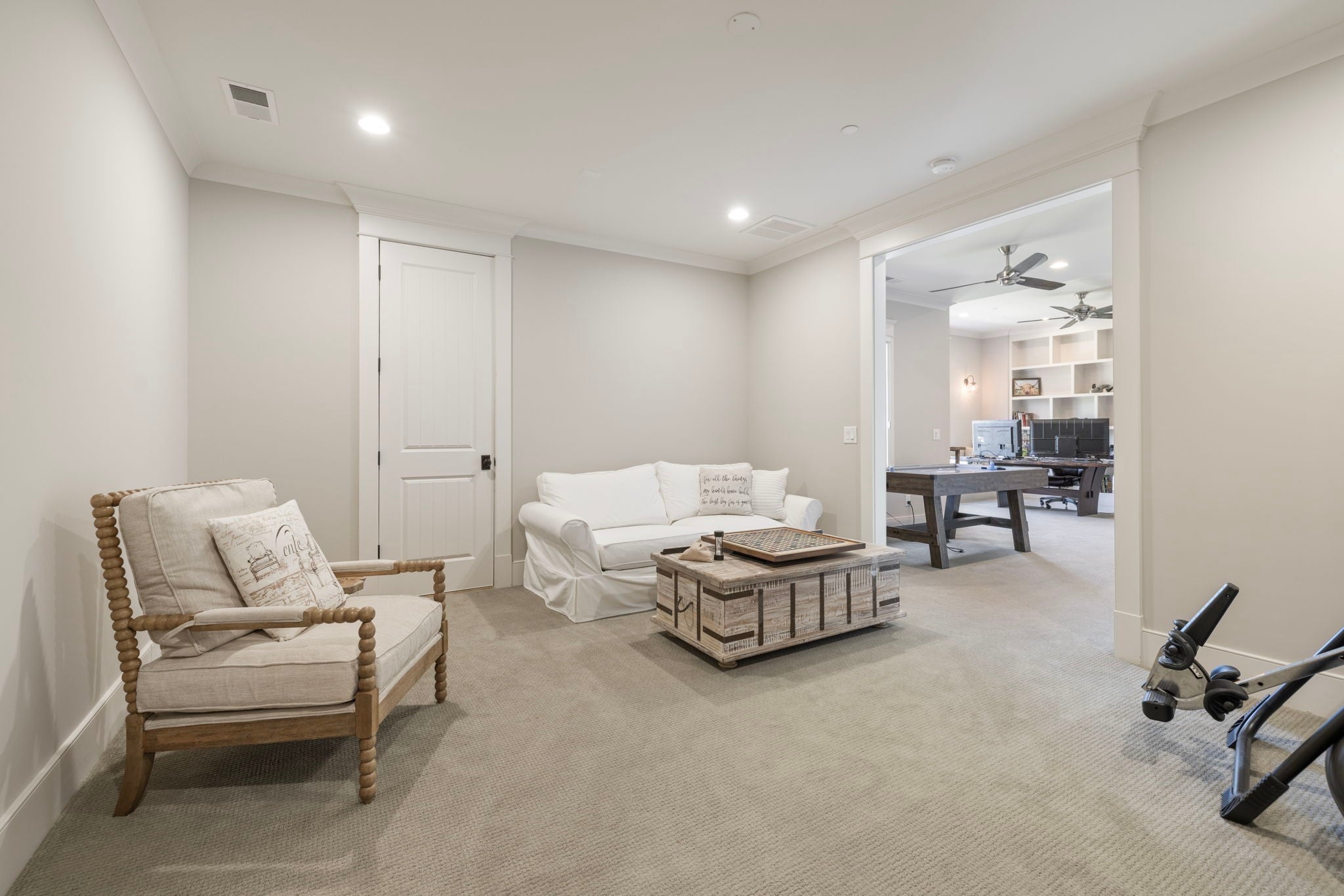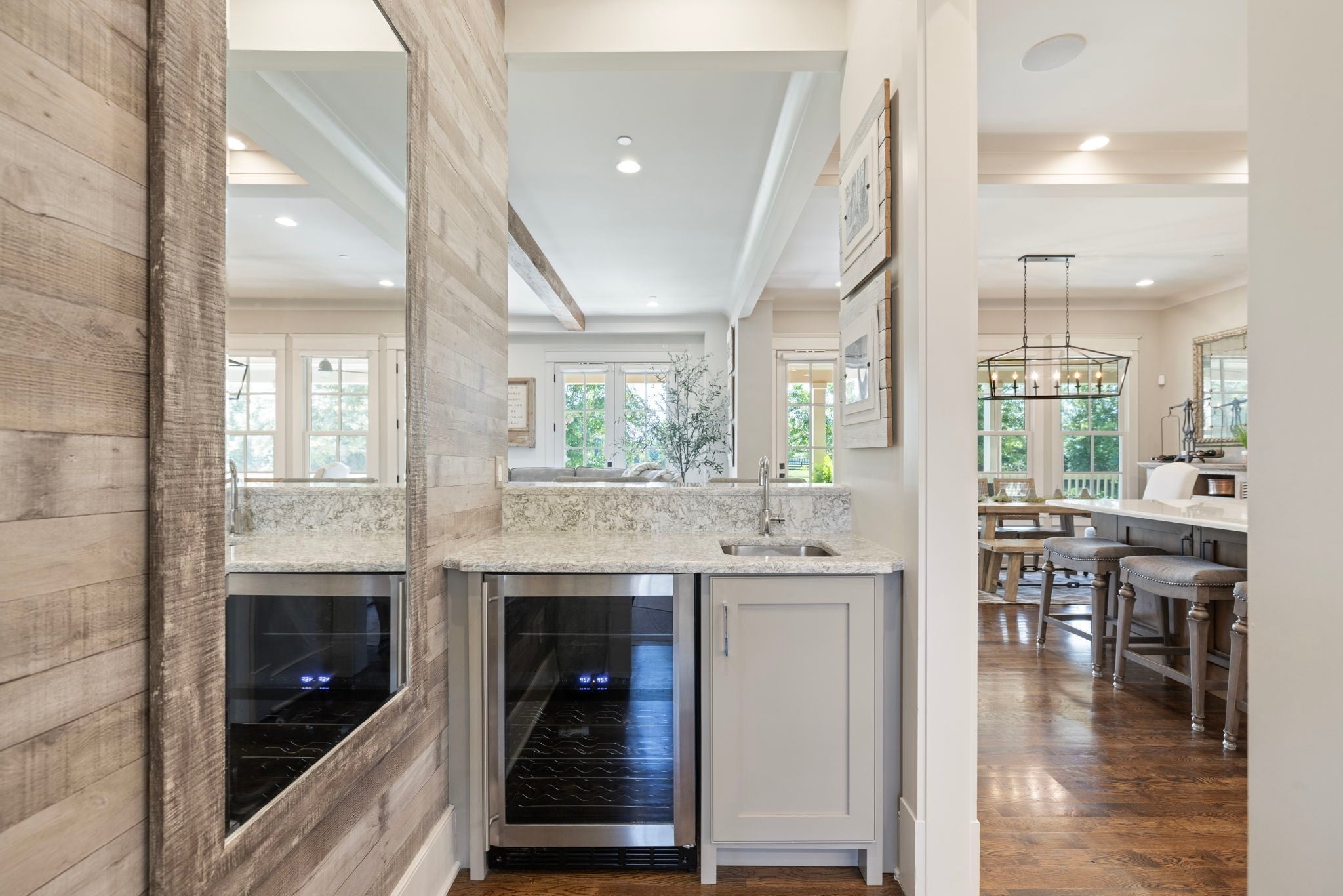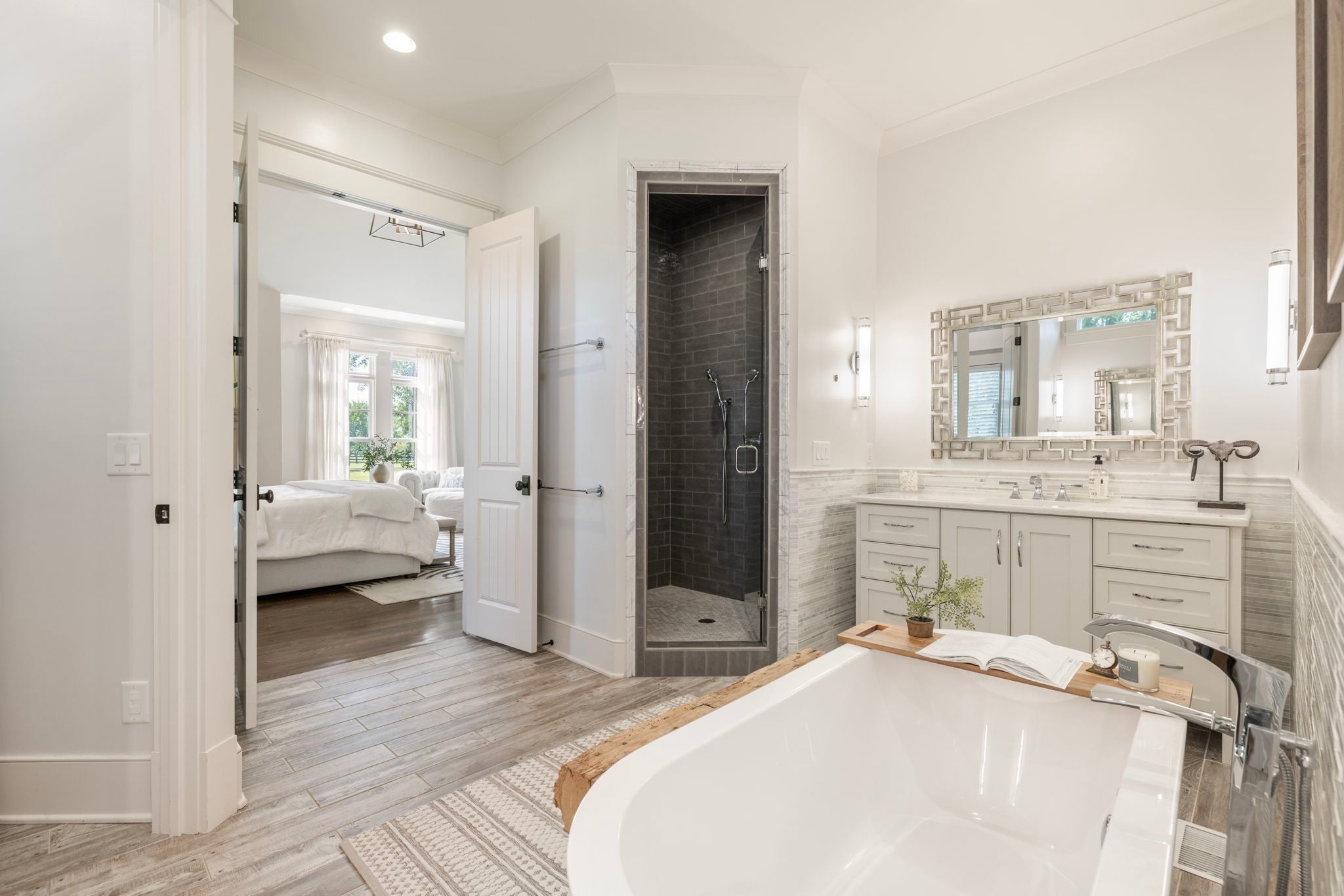 This custom-built home sits on 1.7 flat acres in the highly sought-after Black Hawk neighborhood in beautiful Arrington. The layout features an open-concept main living area with stunning hardwood floors, french doors that flood the space with natural light, and rustic accents throughout. The main level offers a bright formal dining/sitting room with coffered ceilings and two full bedroom suites. Built-in speaker system, home sprinkler system, and automated window treatments. The spacious primary suite includes a spa-style en-suite bath and walk-in closet, while the private guest suite includes a Murphy bed, providing comfort and convenience for visitors, and then transform it into a home office. The chef’s kitchen is equipped with a 48-inch gas range with griddle, built-in refrigerator, oversized island, custom cabinetry, butler’s pantry, wine bar, and a separate cooktop for larger meal preparation needs. The living room is highlighted by a floor-to-ceiling stone fireplace. Upstairs, the home offers two additional bedroom suites, a large recreation room, and a game room, making it an entertainer’s dream! Outdoor living is just as impressive, and it includes a covered patio with built-in gas fire pit, in-ground trampoline, professional landscape lighting, full-yard irrigation, and a fully fenced yard with a high-end electric privacy gate. Enjoy peaceful sunrises from the back patio and vibrant sunsets from the front porch. Additional highlights include a three-car garage, tankless water heater, UV air purifier, and extensive storage and entertaining space. Recent upgrades within the past two years include newly finished epoxy garage floors, newly tiled showers, expanded and upgraded irrigation system, privacy trees, newly added landscape lighting, and new electric gate fencing in the entire property.