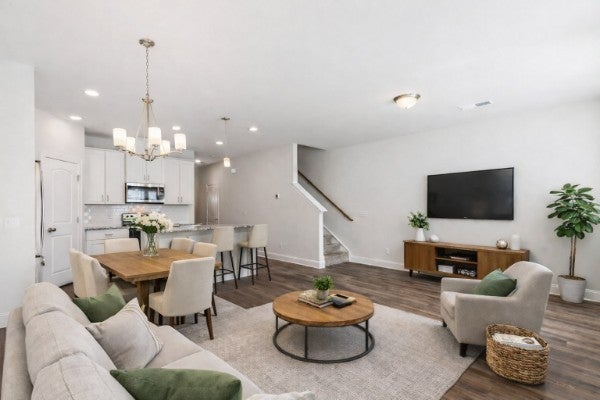 Welcome Home! This beautiful townhome comes with a washer, dryer, refrigerator, and window blinds for your convenience. Entertain family and guests in the spacious second-story loft—perfect for game nights or a home office. Downstairs, the open-concept kitchen features a large island overlooking the great room and dining area, ideal for everyday living and entertaining. Enjoy stylish finishes throughout, including white cabinetry, Bengal White granite countertops, EVP flooring, and plush carpet. Located in the highly sought-after West End Station community, this home offers a designer-curated townhome with an open floor plan and a 1- car garage. Residents enjoy exceptional amenities such as a community pool and dog park, along with a prime Lebanon location near downtown shopping, dining, and the Music City Star commuter train—providing easy access to downtown Nashville.