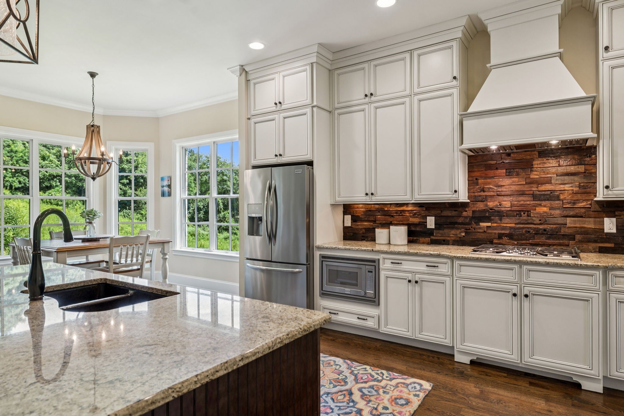- Built-In Electric Oven, Double Oven, Cooktop, Dishwasher, Disposal, Microwave, Refrigerator, Stainless Steel Appliance(s)