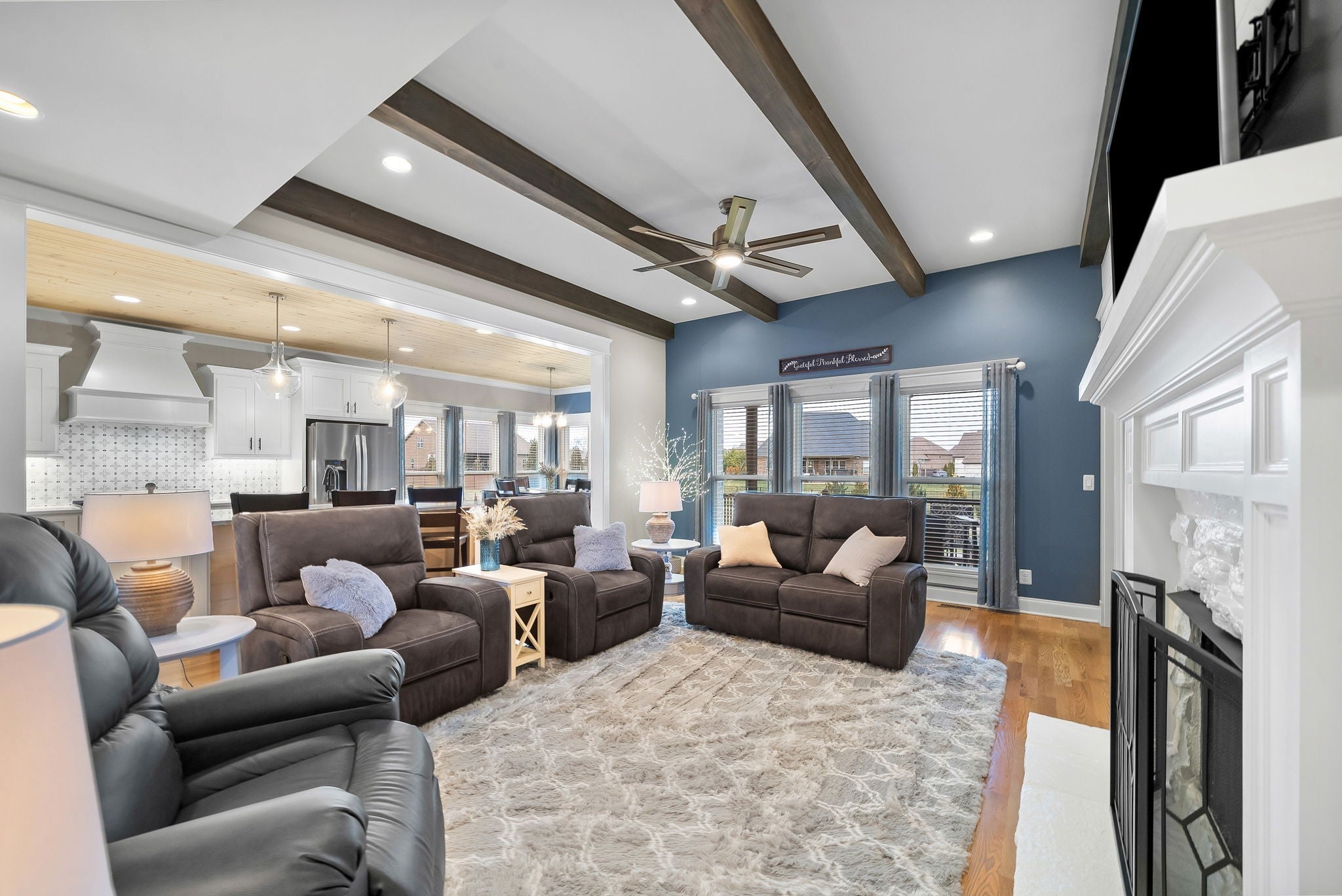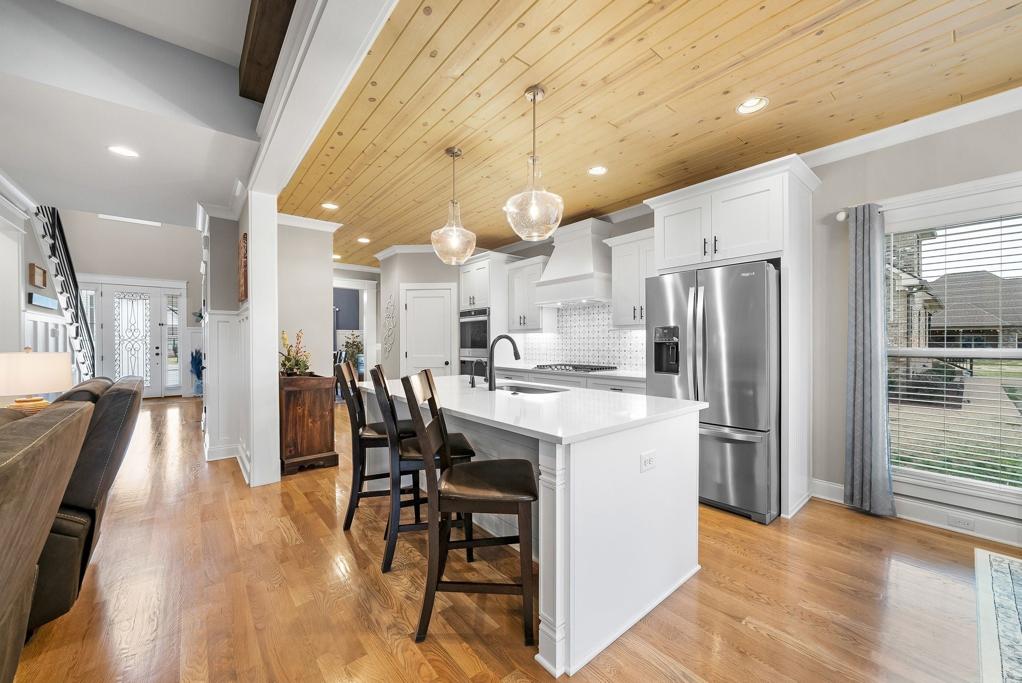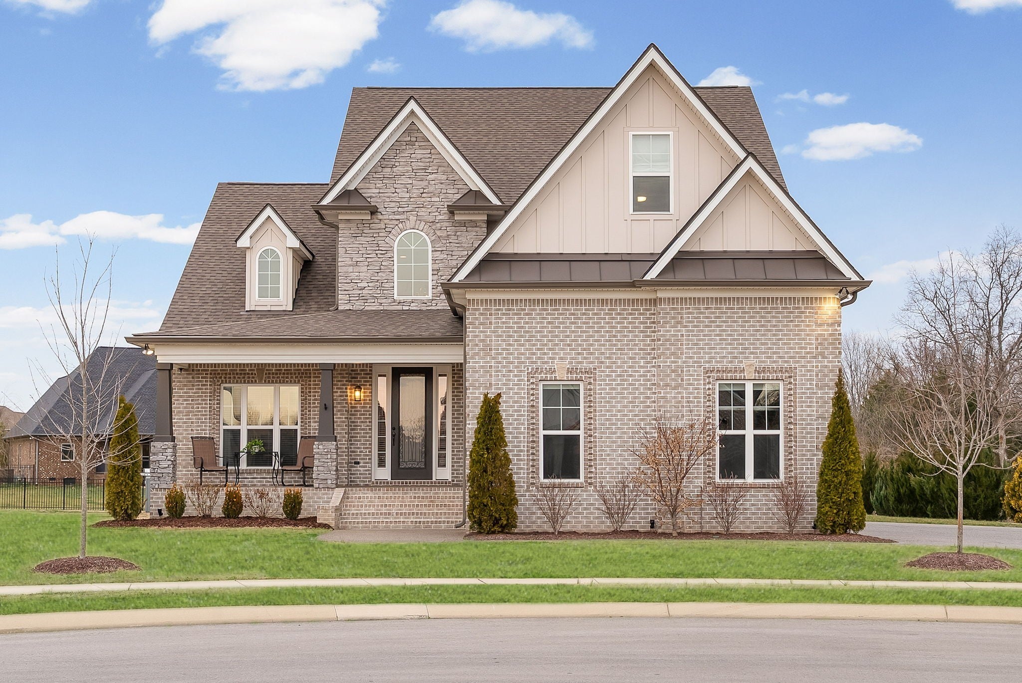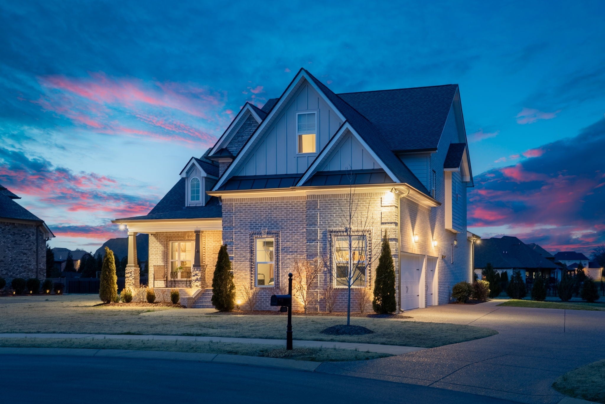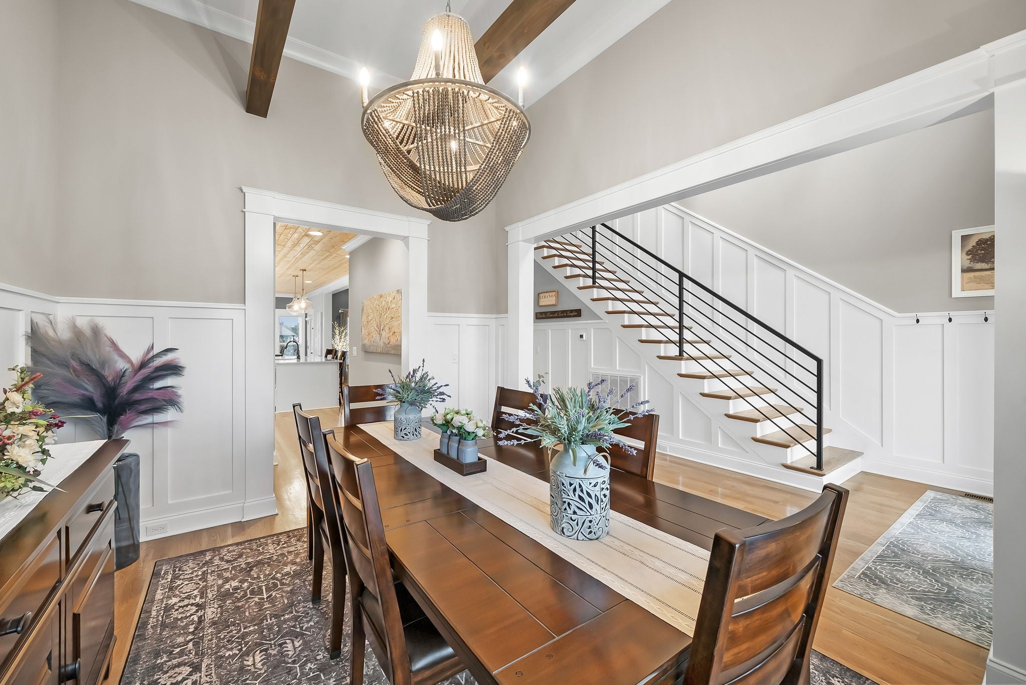 Located in one of Lebanon’s most sought-after neighborhoods, Farmington Woods is known for its spacious lots and beautiful custom homes. 455 Huntington sits at the end of a quiet cul-de-sac on .70 of an acre, offering a level yard and generous side yard with room to add a pool, outdoor oasis, detached garage, or whatever your dream outdoor space looks like. The home features a 3-car side-entry garage with added storage and ample space. Built by respected local builder Eastland Construction, the Englewood Cottage plan features the layout buyers consistently ask for plus extensive upgrades throughout. Upon entering, you’ll notice the hardwood floors, detailed crown molding, and iron staircase railing. Architectural touches including wood beams, custom built-ins flanking the gas fireplace, pine tongue-and-groove ceilings, and wainscoting add warmth and craftsmanship. The kitchen is truly the heart of the home with maple cabinetry, designer backsplash, dedicated coffee bar, and an eat-in nook. A formal dining room provides the ideal setting for holidays and gatherings. The primary suite features a custom tray ceiling and recessed lighting. The ensuite bath includes double vanities separated by a custom cabinets, and the oversized walk-in closet is outfitted with floor-to-ceiling custom built-ins. Upstairs offers three additional bedrooms plus an enclosed bonus room with upgraded flooring — ideal for a private office or media space. Bedroom two spans an impressive 21 feet, creating flexibility for a secondary office, playroom, or game room. Bedrooms three and four feature custom wood accent walls. The sellers have completed numerous upgrades and improvements (see attached list). Be sure to drive by in the evening to appreciate the exterior lighting that automatically illuminates at dusk.