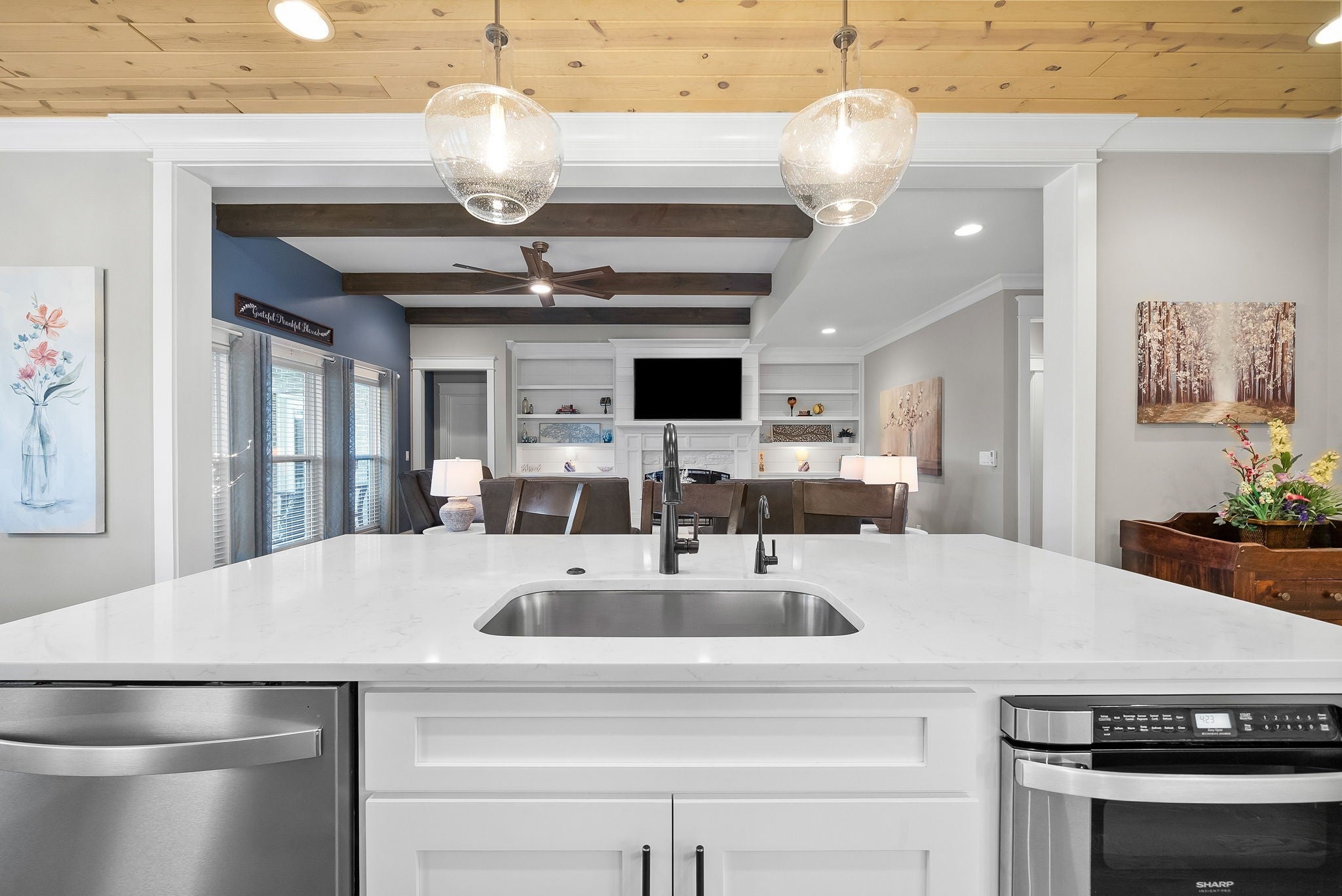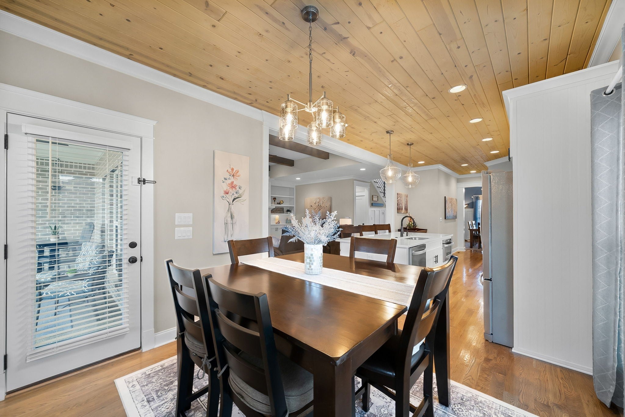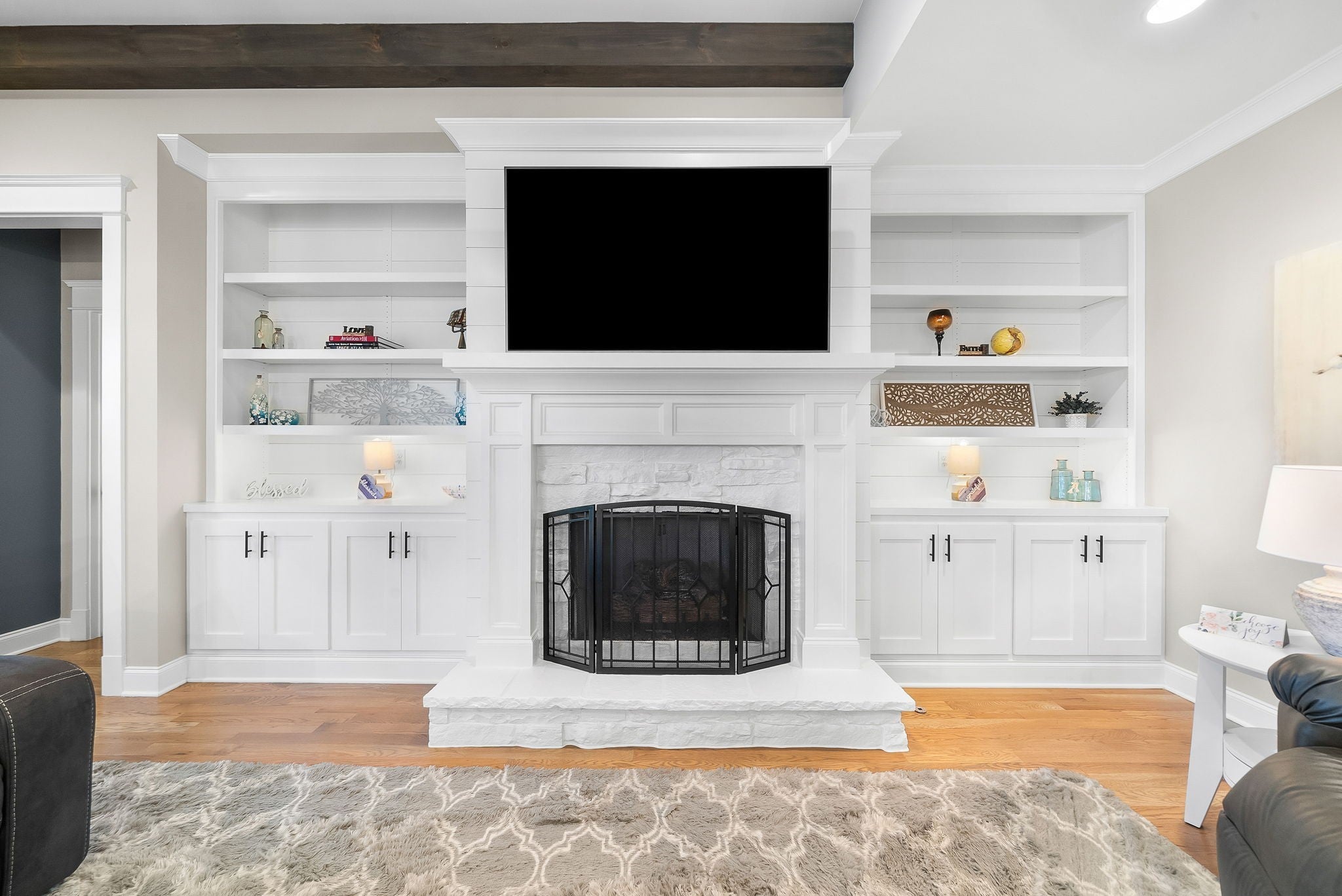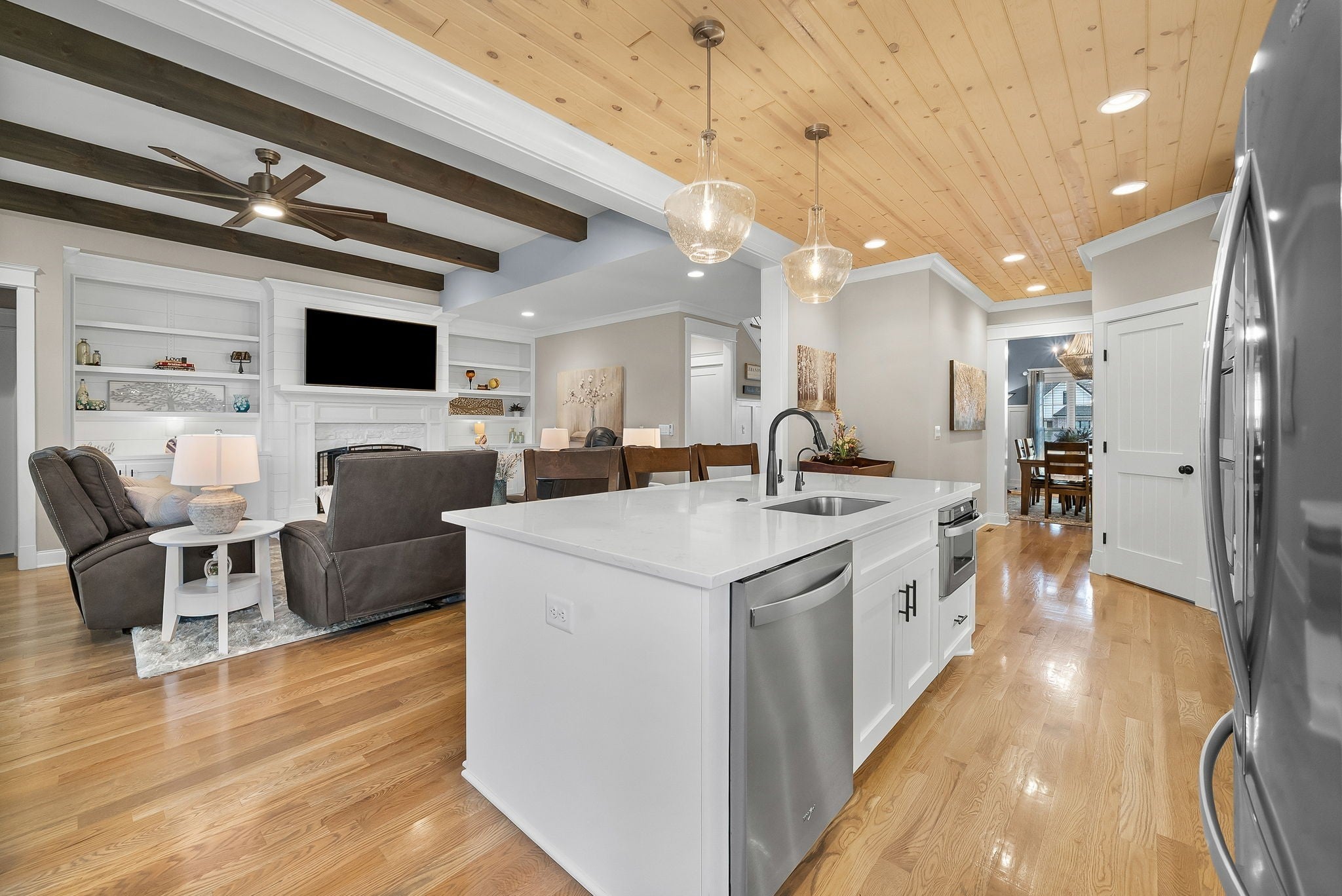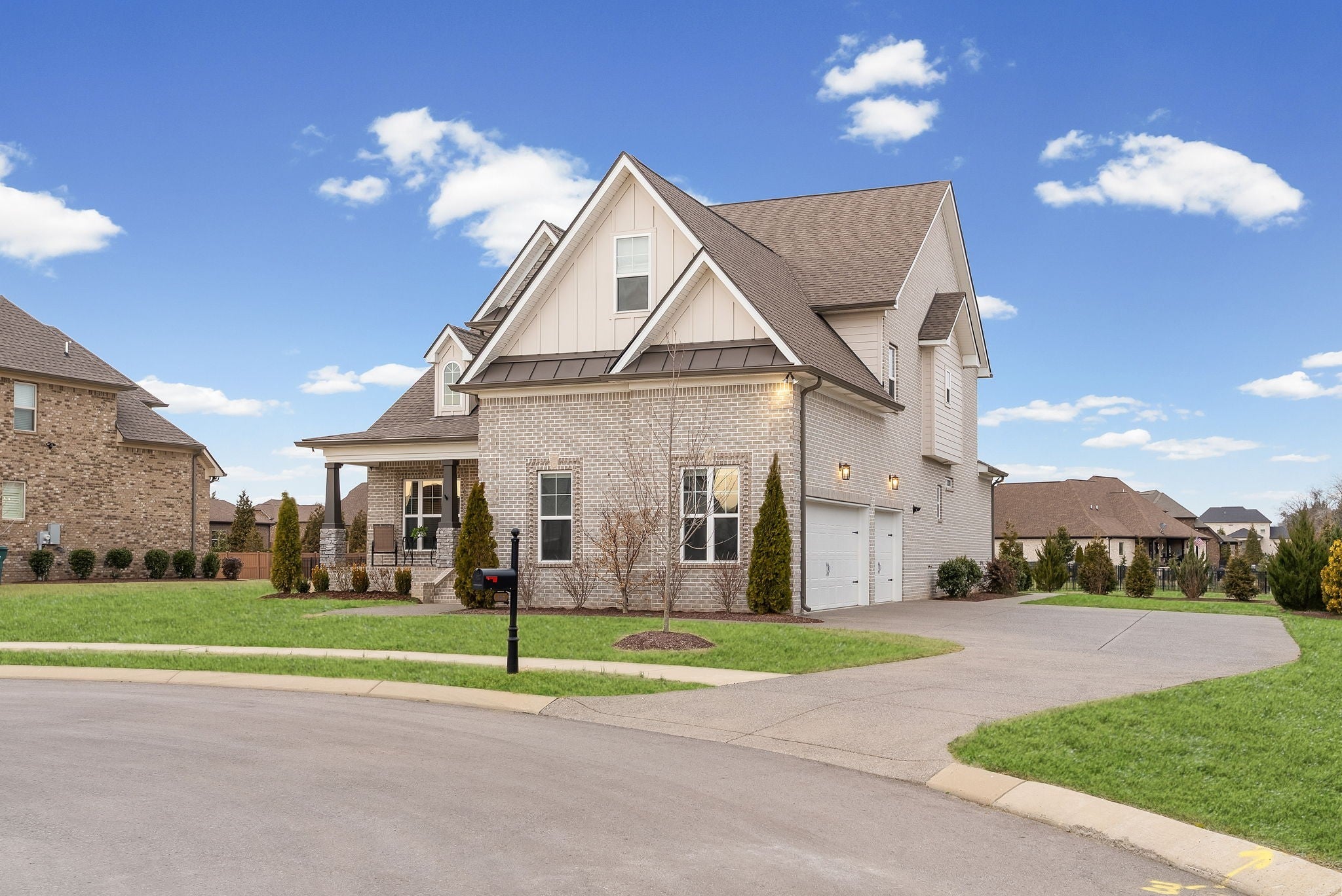 Located in one of Lebanon’s most sought-after neighborhoods, Farmington Woods is known for its spacious lots and beautiful custom homes. 455 Huntington sits at the end of a quiet cul-de-sac on .70 of an acre, offering a level yard and generous side yard with room to add a pool, outdoor oasis, detached garage, or whatever your dream outdoor space looks like. The home features a 3-car side-entry garage with added storage and ample space. Built by respected local builder Eastland Construction, the Englewood Cottage plan features the layout buyers consistently ask for plus extensive upgrades throughout. Upon entering, you’ll notice the hardwood floors, detailed crown molding, and iron staircase railing. Architectural touches including wood beams, custom built-ins flanking the gas fireplace, pine tongue-and-groove ceilings, and wainscoting add warmth and craftsmanship. The kitchen is truly the heart of the home with maple cabinetry, designer backsplash, dedicated coffee bar, and an eat-in nook. A formal dining room provides the ideal setting for holidays and gatherings. The primary suite features a custom tray ceiling and recessed lighting. The ensuite bath includes double vanities separated by a custom cabinets, and the oversized walk-in closet is outfitted with floor-to-ceiling custom built-ins. Upstairs offers three additional bedrooms plus an enclosed bonus room with upgraded flooring — ideal for a private office or media space. Bedroom two spans an impressive 21 feet, creating flexibility for a secondary office, playroom, or game room. Bedrooms three and four feature custom wood accent walls. The sellers have completed numerous upgrades and improvements (see attached list). Be sure to drive by in the evening to appreciate the exterior lighting that automatically illuminates at dusk.