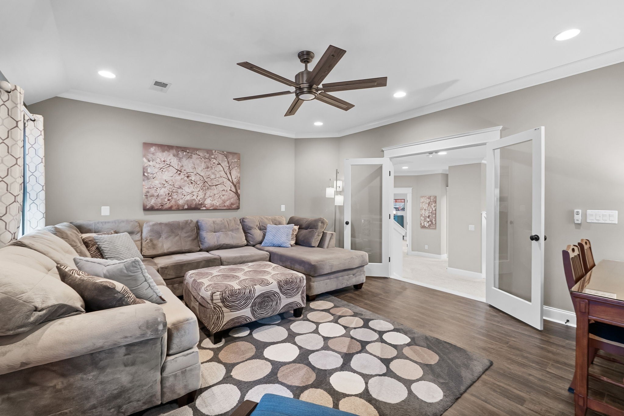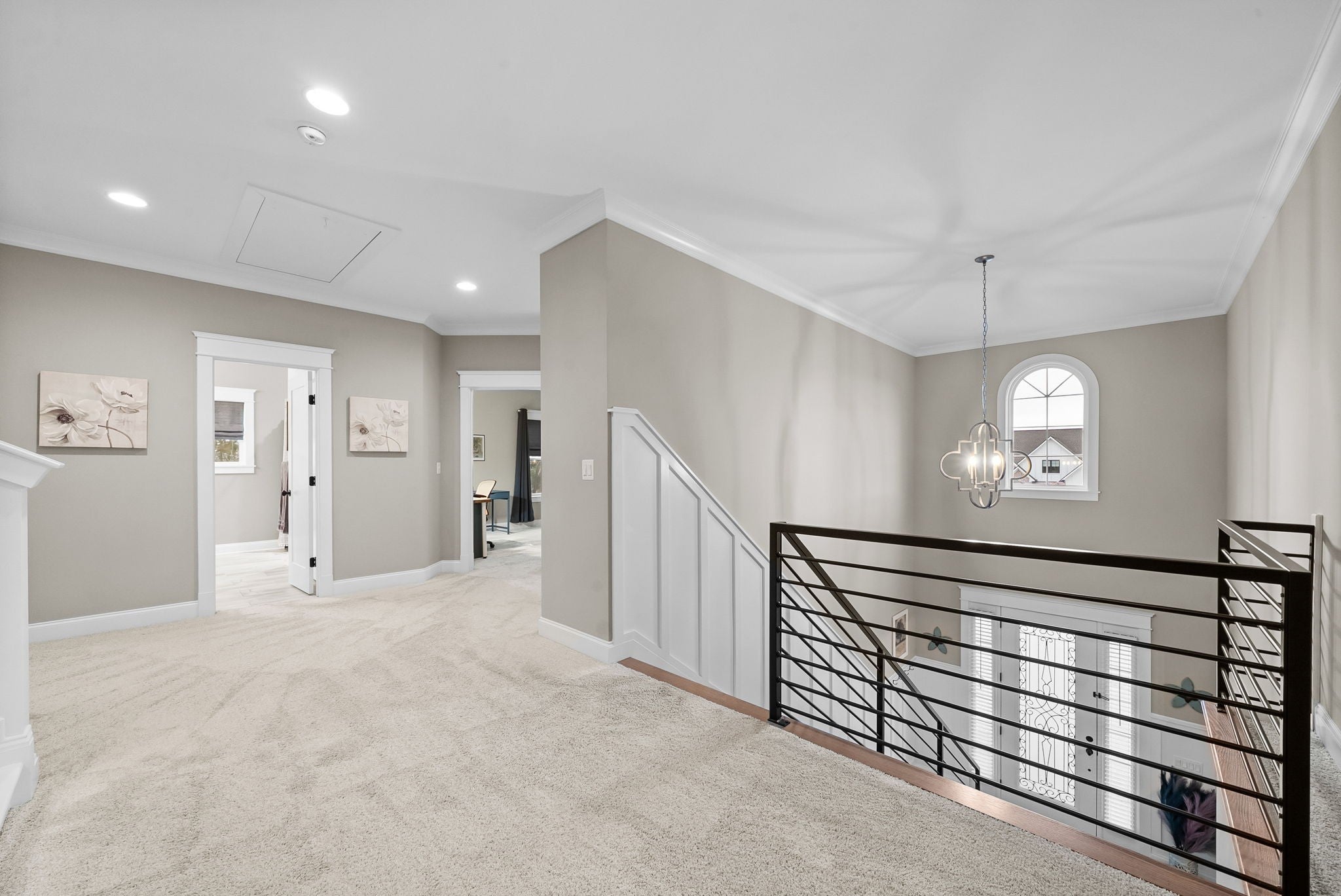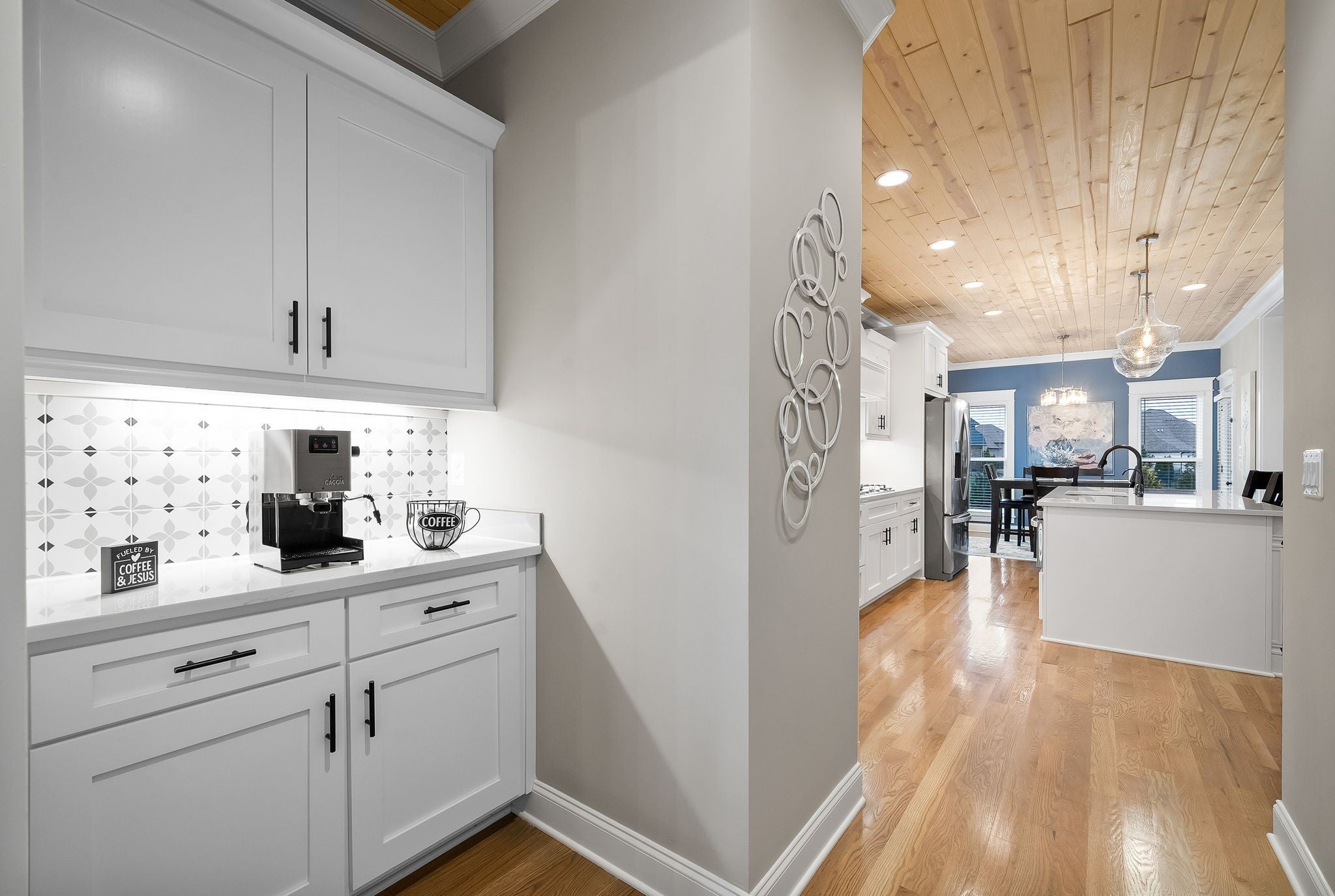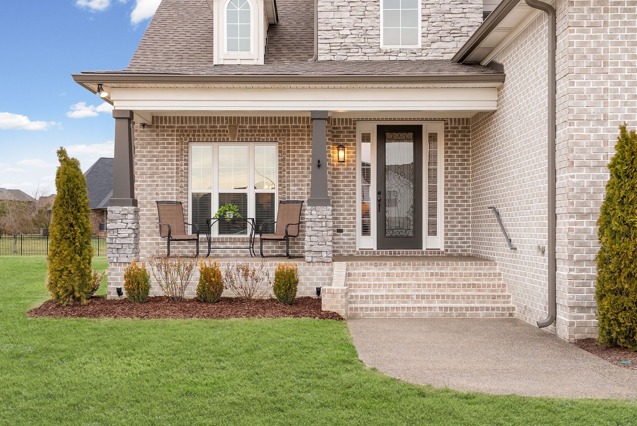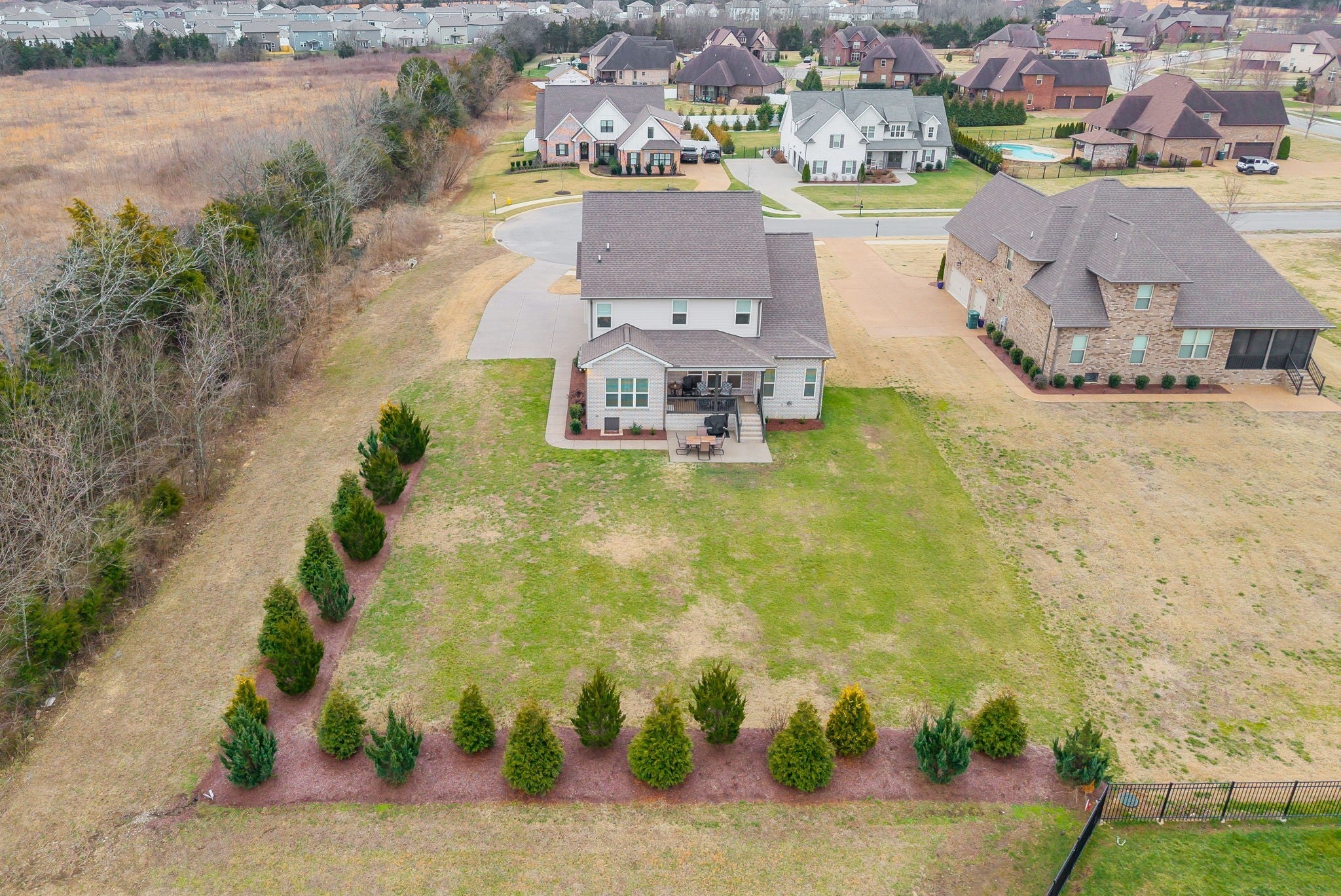 Located in one of Lebanon’s most sought-after neighborhoods, Farmington Woods is known for its spacious lots and beautiful custom homes. 455 Huntington sits at the end of a quiet cul-de-sac on .70 of an acre, offering a level yard and generous side yard with room to add a pool, outdoor oasis, detached garage, or whatever your dream outdoor space looks like. The home features a 3-car side-entry garage with added storage and ample space. Built by respected local builder Eastland Construction, the Englewood Cottage plan features the layout buyers consistently ask for plus extensive upgrades throughout. Upon entering, you’ll notice the hardwood floors, detailed crown molding, and iron staircase railing. Architectural touches including wood beams, custom built-ins flanking the gas fireplace, pine tongue-and-groove ceilings, and wainscoting add warmth and craftsmanship. The kitchen is truly the heart of the home with maple cabinetry, designer backsplash, dedicated coffee bar, and an eat-in nook. A formal dining room provides the ideal setting for holidays and gatherings. The primary suite features a custom tray ceiling and recessed lighting. The ensuite bath includes double vanities separated by a custom cabinets, and the oversized walk-in closet is outfitted with floor-to-ceiling custom built-ins. Upstairs offers three additional bedrooms plus an enclosed bonus room with upgraded flooring — ideal for a private office or media space. Bedroom two spans an impressive 21 feet, creating flexibility for a secondary office, playroom, or game room. Bedrooms three and four feature custom wood accent walls. The sellers have completed numerous upgrades and improvements (see attached list). Be sure to drive by in the evening to appreciate the exterior lighting that automatically illuminates at dusk.