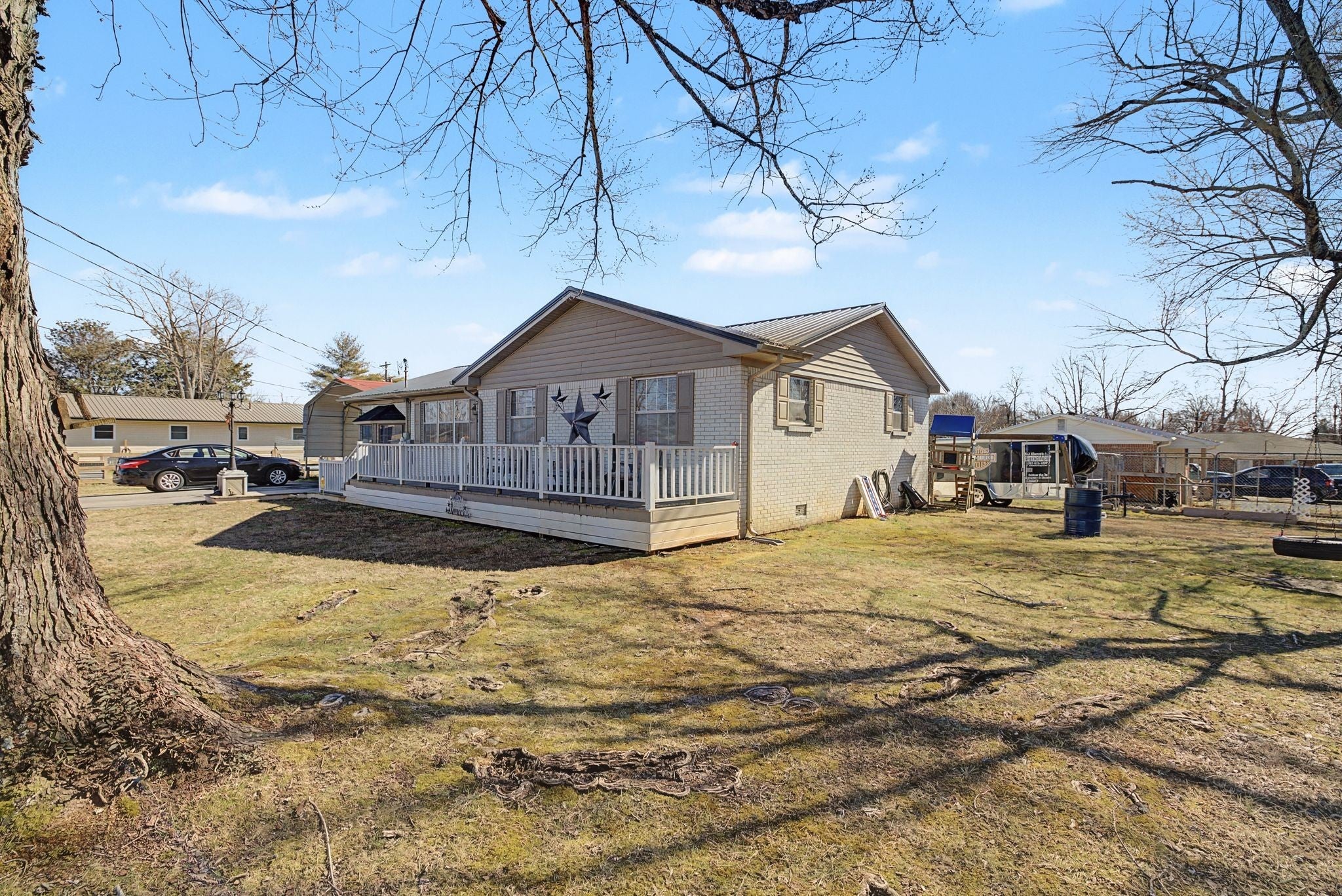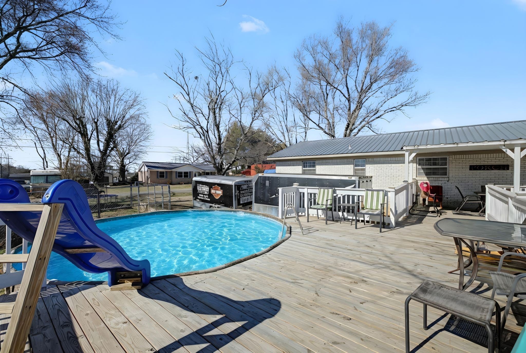 Wonderful Gem. Mr. clean lives here. This home features 3 bdrm plus could be a 4th large bdrm (beautiful garage conversion). Updated flooring. Extra large kitchen dining combo with custom ceiling. 1.5 bathrooms. Outside is your own vacation with custom decking, above ground pool, custom patio all on a 3/4 acre corner lot. But there is more... Enjoy your very own extra extra large workshop/entertainment room with electricity and wall a/c. Plus 2 storage sheds and RV canopy for just about any size RV. This rare beauty won't last long. Close to shopping