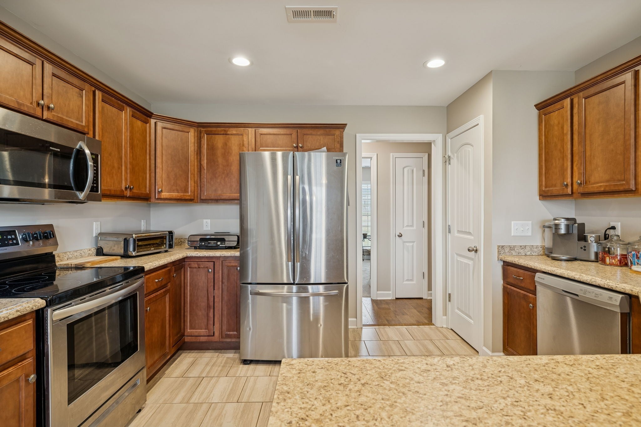 - Electric Range, Dishwasher, Microwave