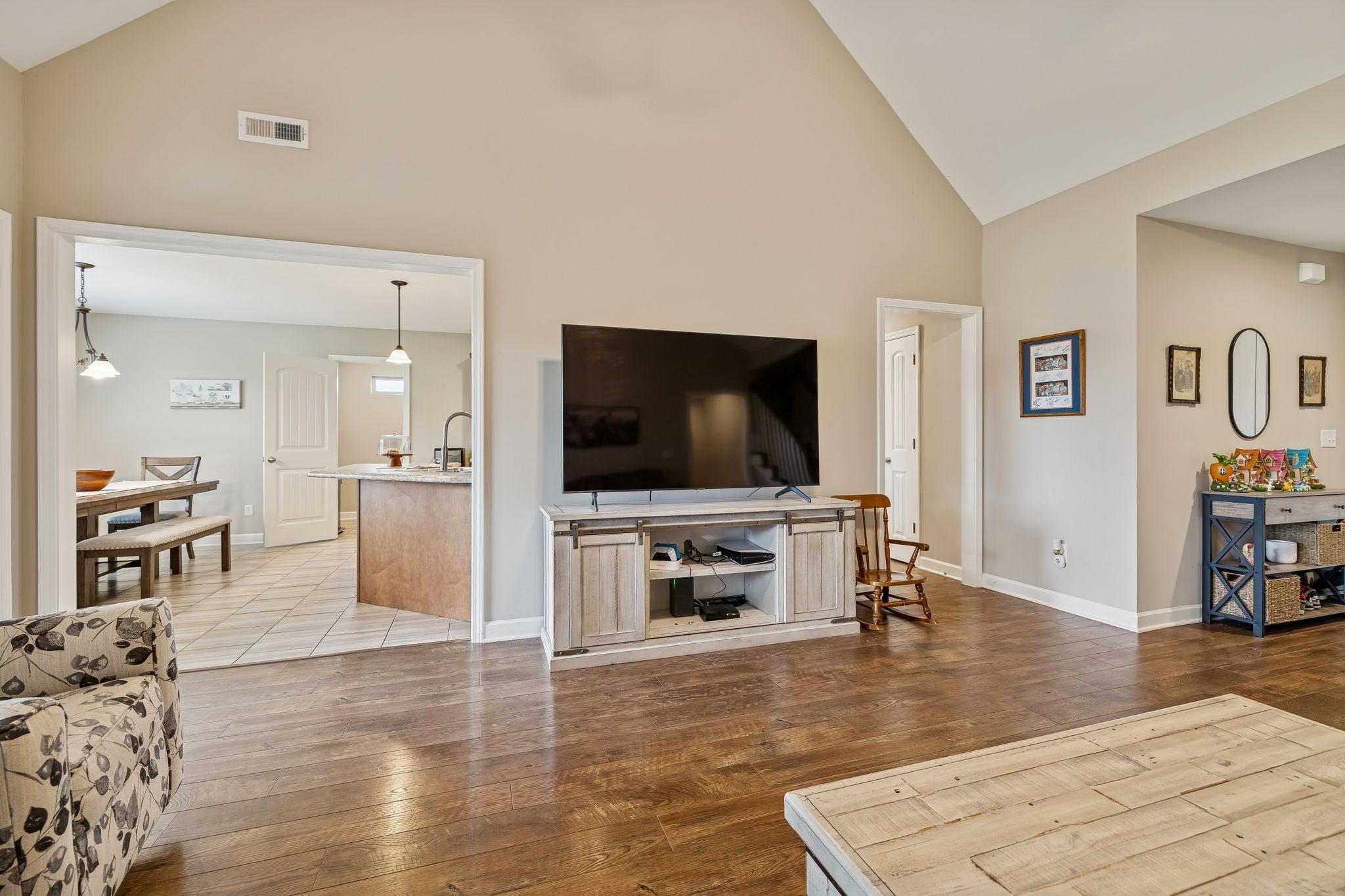 One owner home on 106 acre lot with no HOA! Open plan with covered porch, fenced dog or kid play area, vaulted ceilings, kitchen peninsula, flex room off kitchen could be office, very large pantry, storage closet. Great Bonus Room with walk-in attic, LVP, tile and carpet flooring. House in located in the USDA/Rural Development loan area for qualified buyers