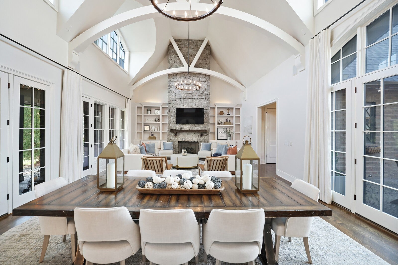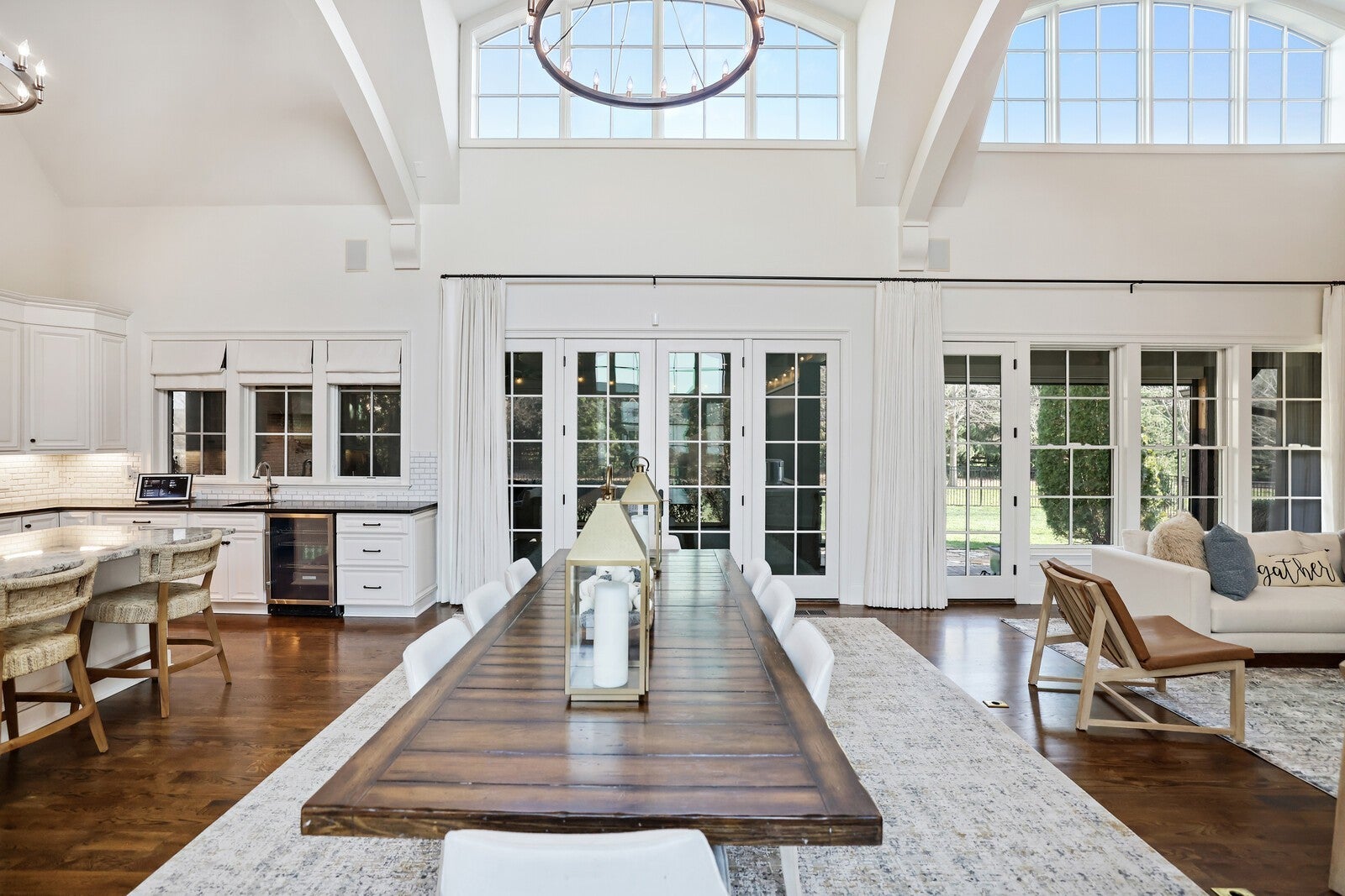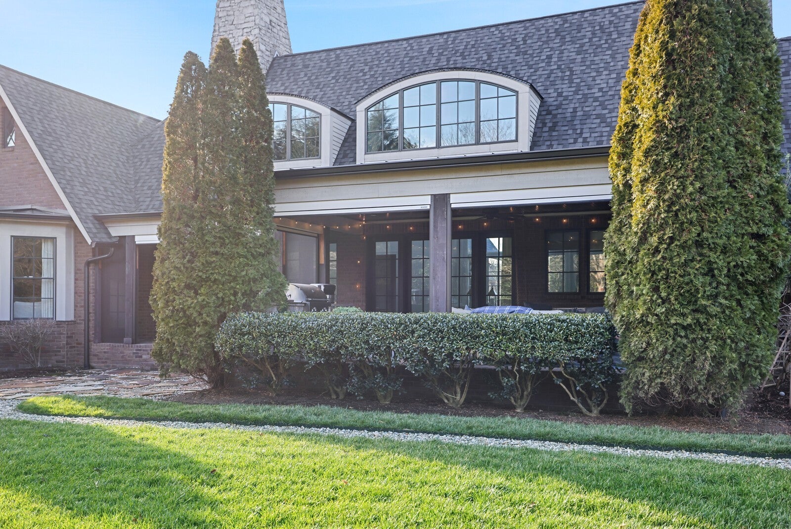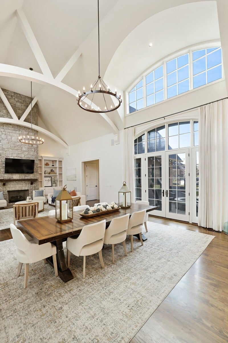 Tucked within the exclusive, gated The Grove community, this residence offers resort style living in a highly sought after neighborhoods. The Grove is known for its rolling hills, manicured landscapes, & unmatched amenities: grand Manor House clubhouse, 3 pools, a Greg Norman 18 hole golf course, full service spa & fitness center, multiple dining venues, walking trails, fishing ponds, equestrian areas, playgrounds, & a vibrant calendar of community events - a true “golf cart” community. The 4,574 sq ft home sits on a private .46-acre lot and features a fully fenced backyard, 3 car garage, lush landscaping, & full yard irrigation. Designed by P. Shea, the thoughtfully planned unique layout includes 5 bedrooms & 5.5 baths, w/ 3 bedrooms on the main level & 2 upstairs. Rich hardwood floors anchor the main level, which showcases a stunning open concept living space with soaring arched ceilings, exposed beams, wagon-wheel lighting, & a dramatic 2 story stacked stone fireplace. The gourmet kitchen features Thermador appliances, a 6 burner gas range with griddle, double ovens, oversized island, farmhouse sink, prep sink, walk-in pantry, & abundant custom cabinetry. The adjacent dining area opens seamlessly to both front & rear porches. Outdoor living is exceptional w/ a charming gated front patio & a show stopping covered back porch offering retractable screens, gas fireplace, brick pavers, outdoor kitchen w/ gas grill & Green Egg, surround sound, & porch swing—perfect for year round enjoyment. The main level primary suite is a true retreat w/ arched ceiling, bay windows, porch access, spa inspired bath w/ clawfoot tub, tiled shower, sauna, & large walk in closet. Additional main level highlights include an office/den, spacious laundry w/ dog wash, powder room, & 2 bedrooms w/ ensuite baths. Upstairs offers a bonus den & 2 two en suite bedrooms. Zoned for award winning Williamson County schools.