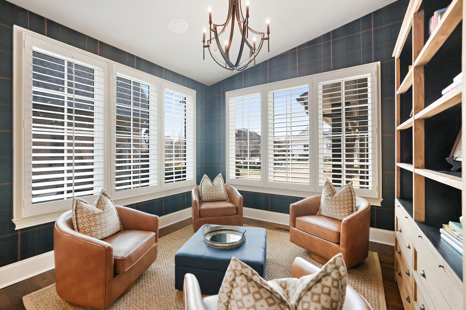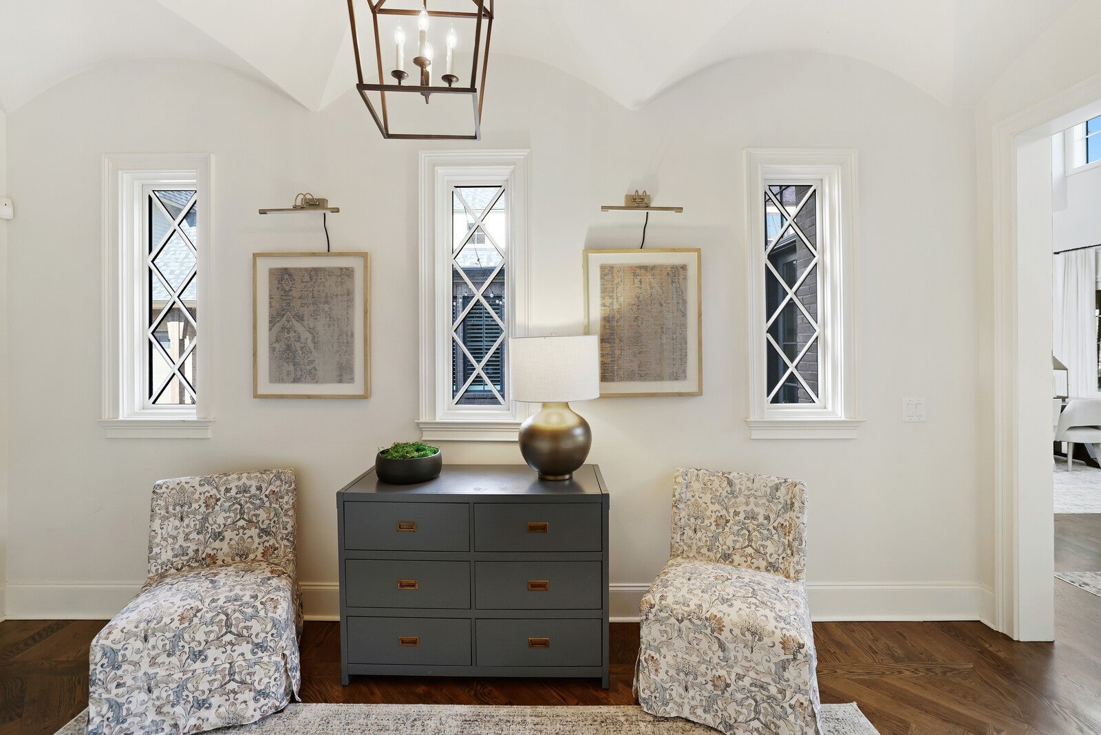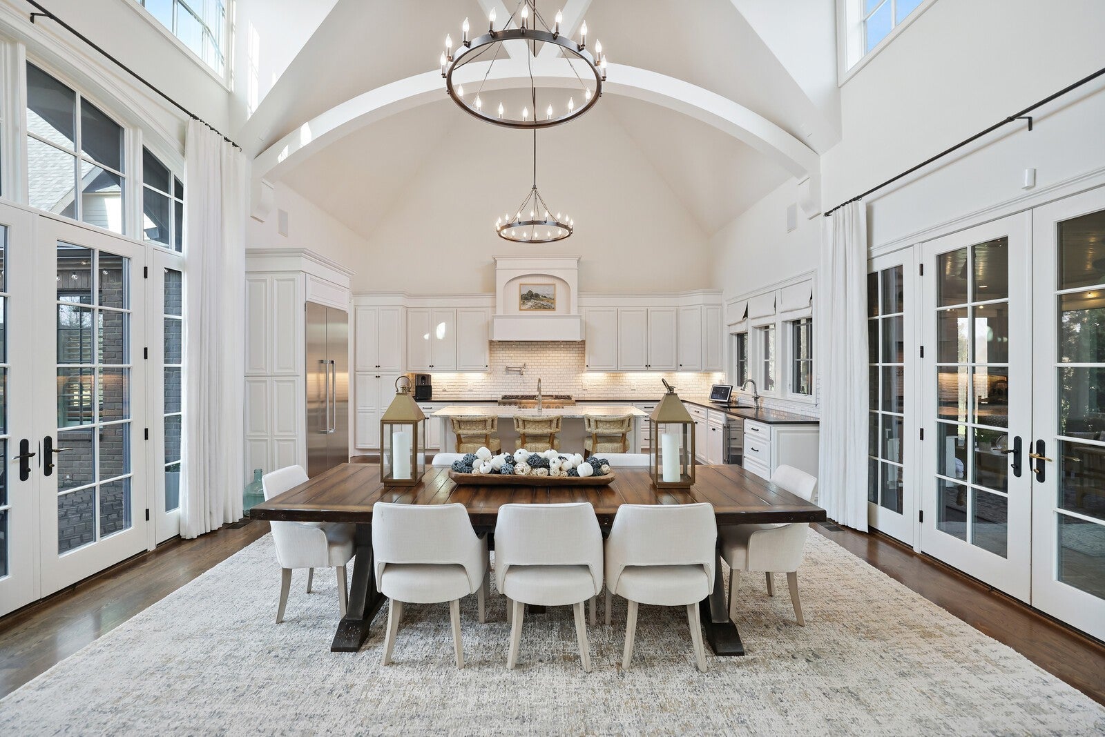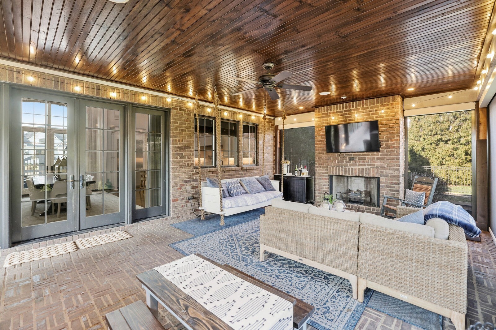 Tucked within the exclusive, gated The Grove community, this residence offers resort style living in a highly sought after neighborhoods. The Grove is known for its rolling hills, manicured landscapes, & unmatched amenities: grand Manor House clubhouse, 3 pools, a Greg Norman 18 hole golf course, full service spa & fitness center, multiple dining venues, walking trails, fishing ponds, equestrian areas, playgrounds, & a vibrant calendar of community events - a true “golf cart” community. The 4,574 sq ft home sits on a private .46-acre lot and features a fully fenced backyard, 3 car garage, lush landscaping, & full yard irrigation. Designed by P. Shea, the thoughtfully planned unique layout includes 5 bedrooms & 5.5 baths, w/ 3 bedrooms on the main level & 2 upstairs. Rich hardwood floors anchor the main level, which showcases a stunning open concept living space with soaring arched ceilings, exposed beams, wagon-wheel lighting, & a dramatic 2 story stacked stone fireplace. The gourmet kitchen features Thermador appliances, a 6 burner gas range with griddle, double ovens, oversized island, farmhouse sink, prep sink, walk-in pantry, & abundant custom cabinetry. The adjacent dining area opens seamlessly to both front & rear porches. Outdoor living is exceptional w/ a charming gated front patio & a show stopping covered back porch offering retractable screens, gas fireplace, brick pavers, outdoor kitchen w/ gas grill & Green Egg, surround sound, & porch swing—perfect for year round enjoyment. The main level primary suite is a true retreat w/ arched ceiling, bay windows, porch access, spa inspired bath w/ clawfoot tub, tiled shower, sauna, & large walk in closet. Additional main level highlights include an office/den, spacious laundry w/ dog wash, powder room, & 2 bedrooms w/ ensuite baths. Upstairs offers a bonus den & 2 two en suite bedrooms. Zoned for award winning Williamson County schools.