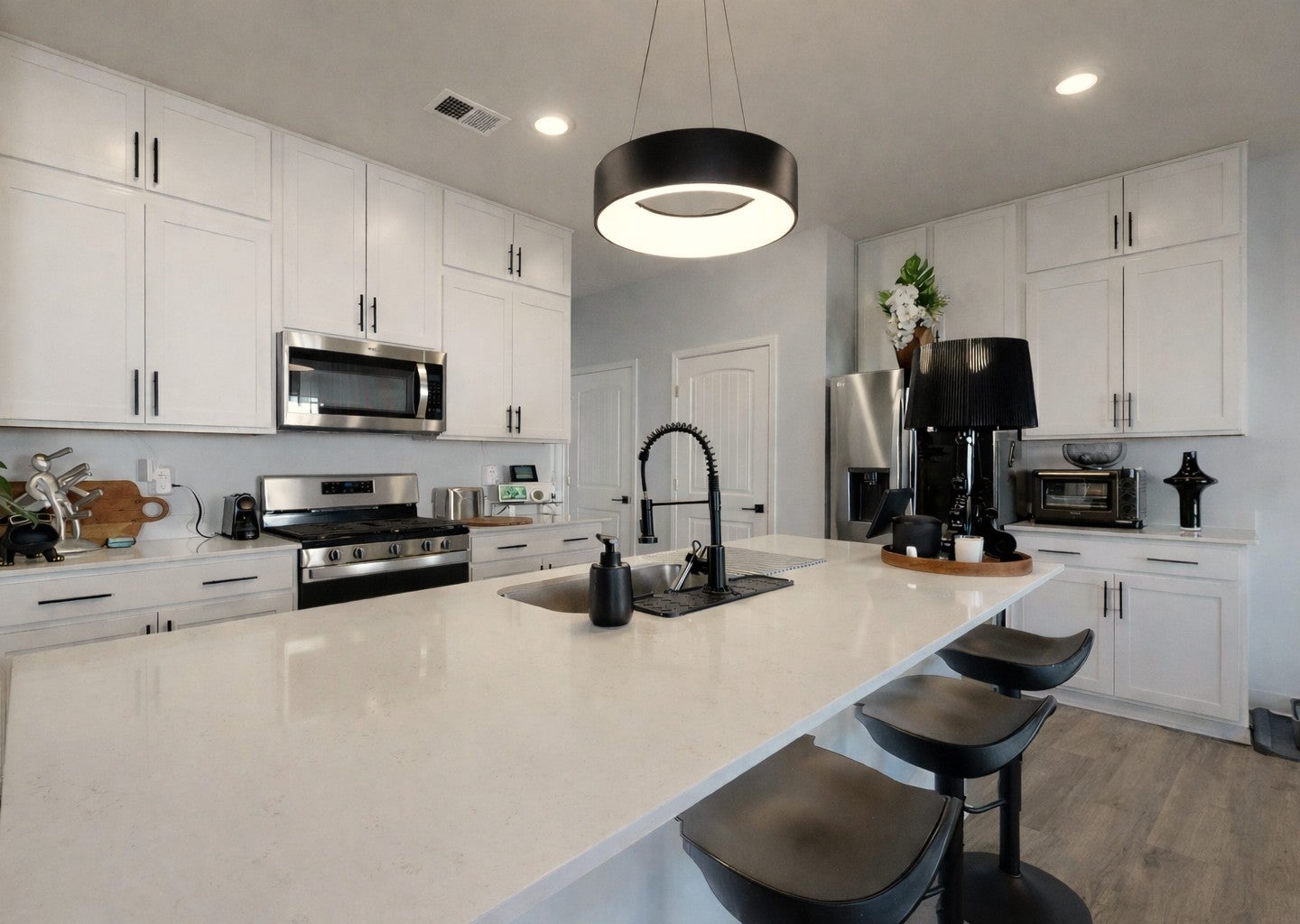 Move-in ready 4 bedroom, 2.5 bath, 2,055 sqft, craftsman style home with an open layout, quartz countertops, modern lighting throughout, smart home features and a fully fenced backyard. Located in one of Lebanon’s newer communities, this property reflects thoughtful updates and attention to detail throughout. The main level offers engineered wood flooring and a spacious kitchen with quartz countertops, stainless steel appliances and updated cabinetry. Custom light fixtures have been installed throughout, giving each room a fresh and updated feel. Smart features include thermostats, garage door opener, front door lock, and video doorbell. A professionally installed roof mounted TV antenna is also included. The front entry features a premium full-view storm door with interchangeable glass and screen panels that allow for added natural light or fresh air. Smart automatic blinds and custom curtains are installed on all downstairs windows as well as the primary bedroom. The primary suite features double quartz vanities with updated faucets, upgraded shower trim with dual shower heads, linen closet and a spacious walk-in closet. Outside, enjoy the fully fenced backyard with professionally landscaped front and back yards and well-maintained grass that is coming in beautifully this spring. Bi-monthly pest and rodent service with Urbanex has been maintained. A spacious two car garage provides additional storage and convenience. The home also offers several features buyers often add later, including completed landscaping, custom window treatments, and thoughtful upgrades already in place. The seller is relocating to be closer to family. Community amenities including a resort style pool, park and walking trails.