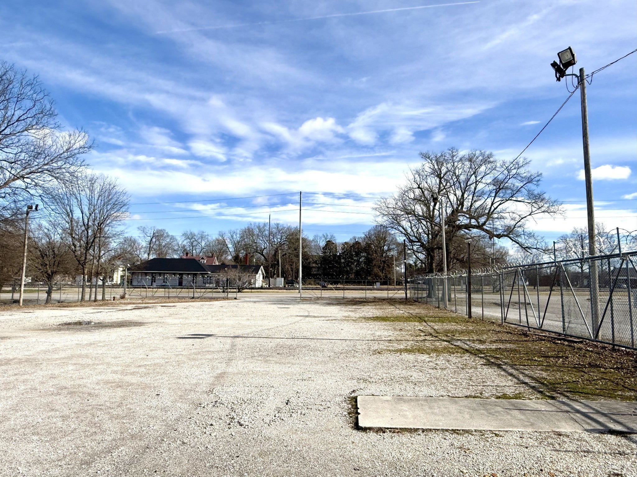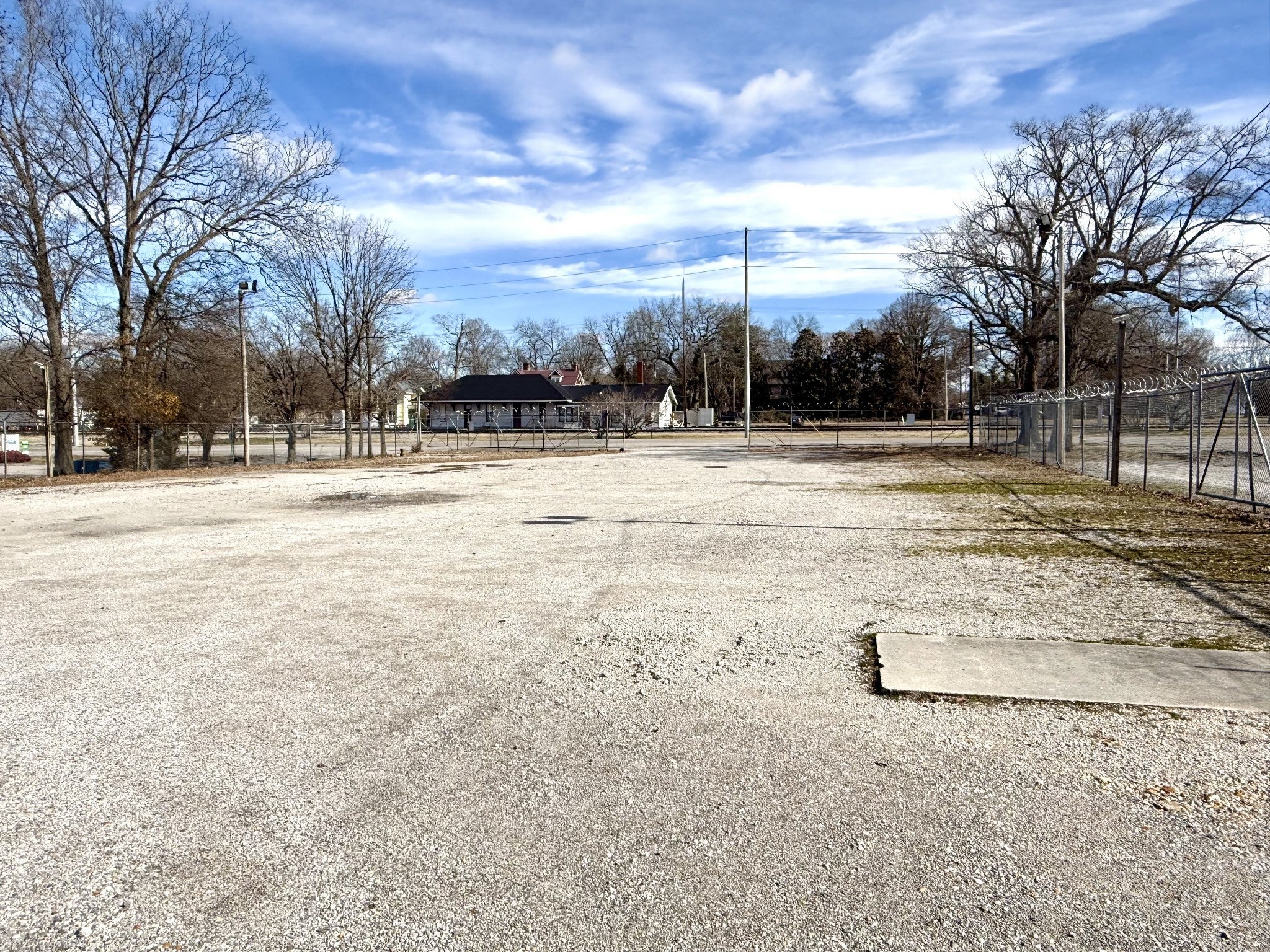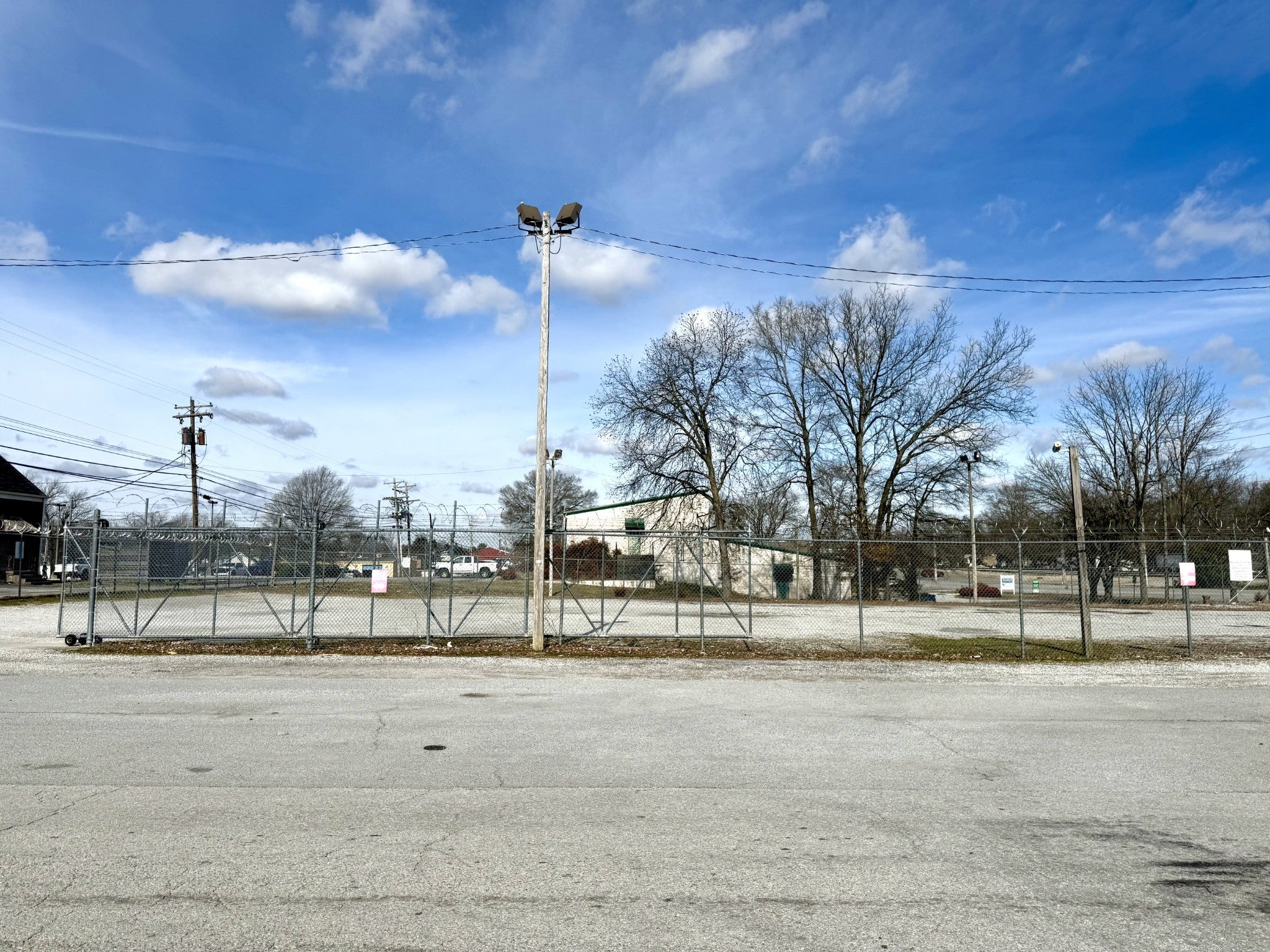PRIME COMMERCIAL CORNER LOT on city streets with high visibility very near to the center of downtown Tullahoma. There is approximately 335' of road frontage and the alley is another 130' of access to a paved road, a fire hydrant is easily accessible at the corner of the lot. Safety and protection have been given good attention by providing the barbed and razor wire topped chain link fencing and includes (2) manually retractable security gates that encompass the entire perimeter (gate openings are approximately 30ft across), (4) poles with double security lights, and outdoor power connections. This property is ready to view and easy to schedule. Give us a call.
