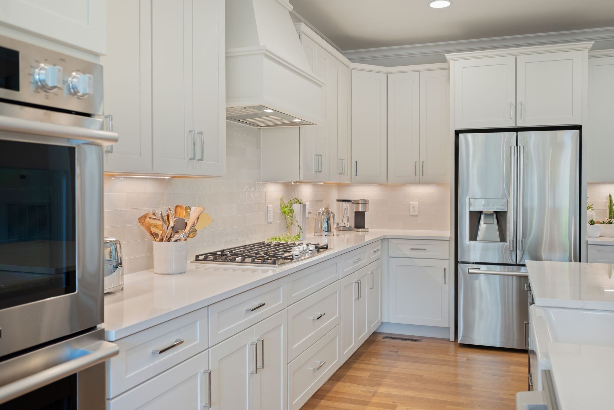 - Built-In Gas Oven, Cooktop, Dishwasher, Disposal, Dryer, Microwave, Refrigerator, Stainless Steel Appliance(s), Washer, Water Purifier