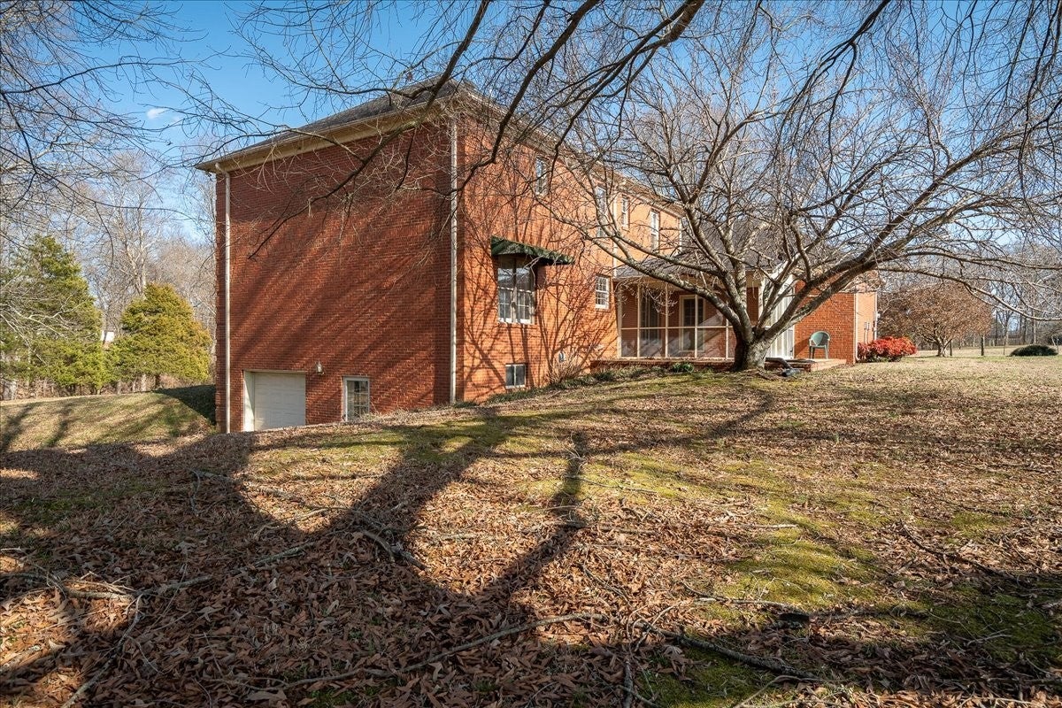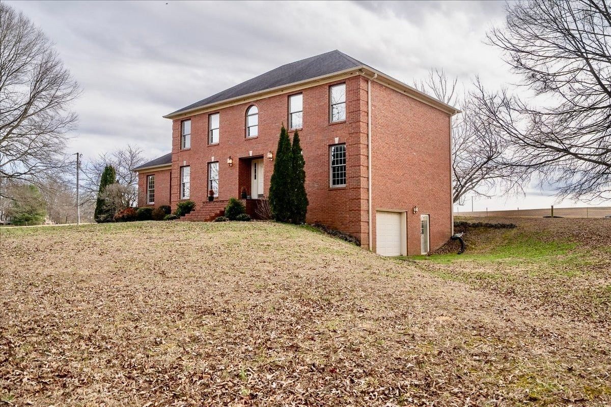 This custom built Colonial style home is perfectly situated on the outskirts of Lawrenceburg. Still conveniently located to town, the 3.5 acre (to be surveyed) property offers a quiet country setting. Right off the 2 story foyer, you will find a large formal living and dining area. The spacious kitchen is located on the back of the house and opens to a breakfast area which leads to a screened porch. The main floor is complete with a roomy den, primary bedroom, and a 2 car garage. Upstairs you will find another expansive primary bedroom and bath, 2 more bedrooms, bathroom, and an office or craft room. An unfinished basement offers another 1,850 sq feet and a full bath, perfect for storage, workshop, playroom, or additional living area! An open shed on the edge of the property allows ample space for yard tools, mowers, and tractors. Septic permit appears to be for 3 bedrooms, however the original owners had 4 bedrooms.