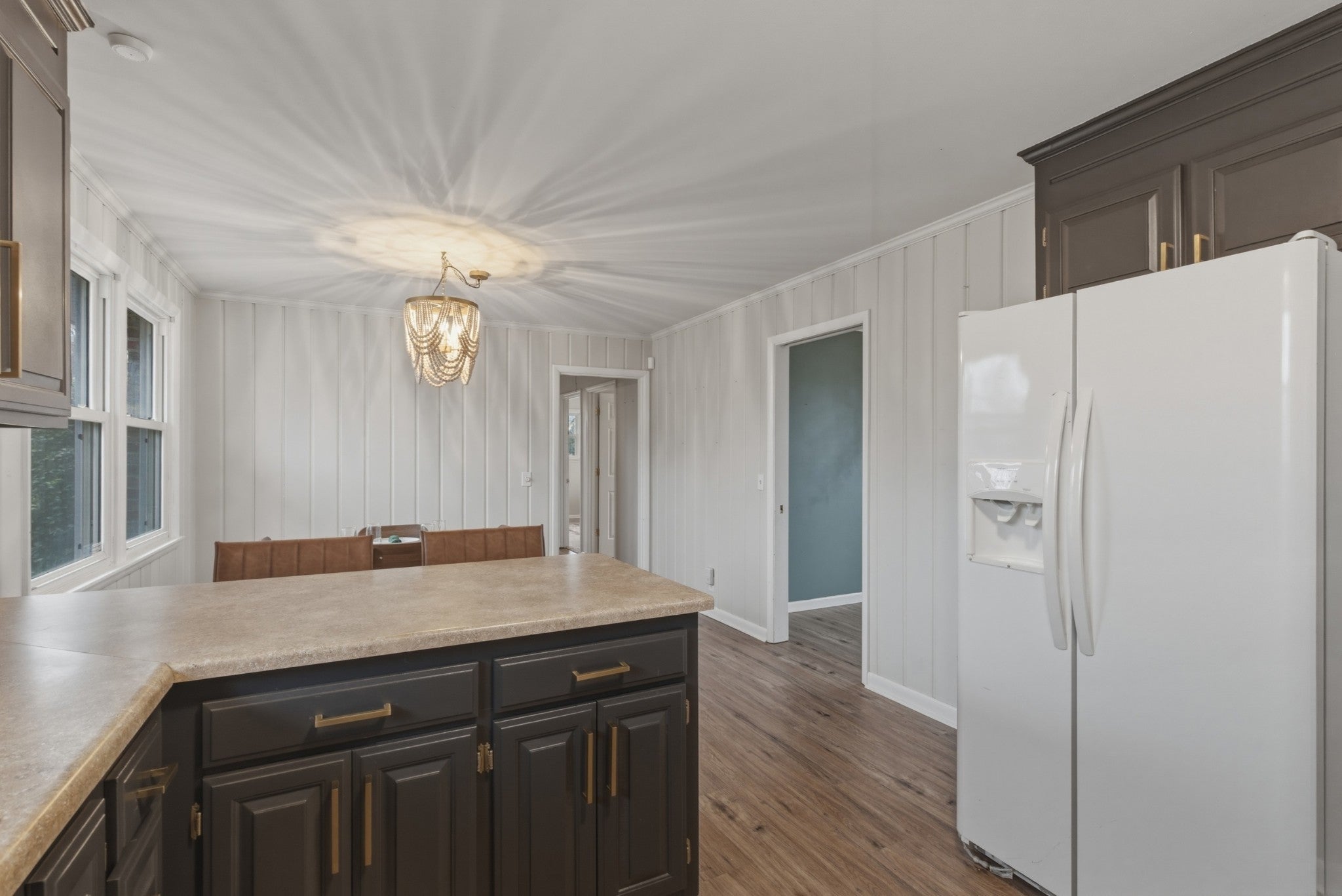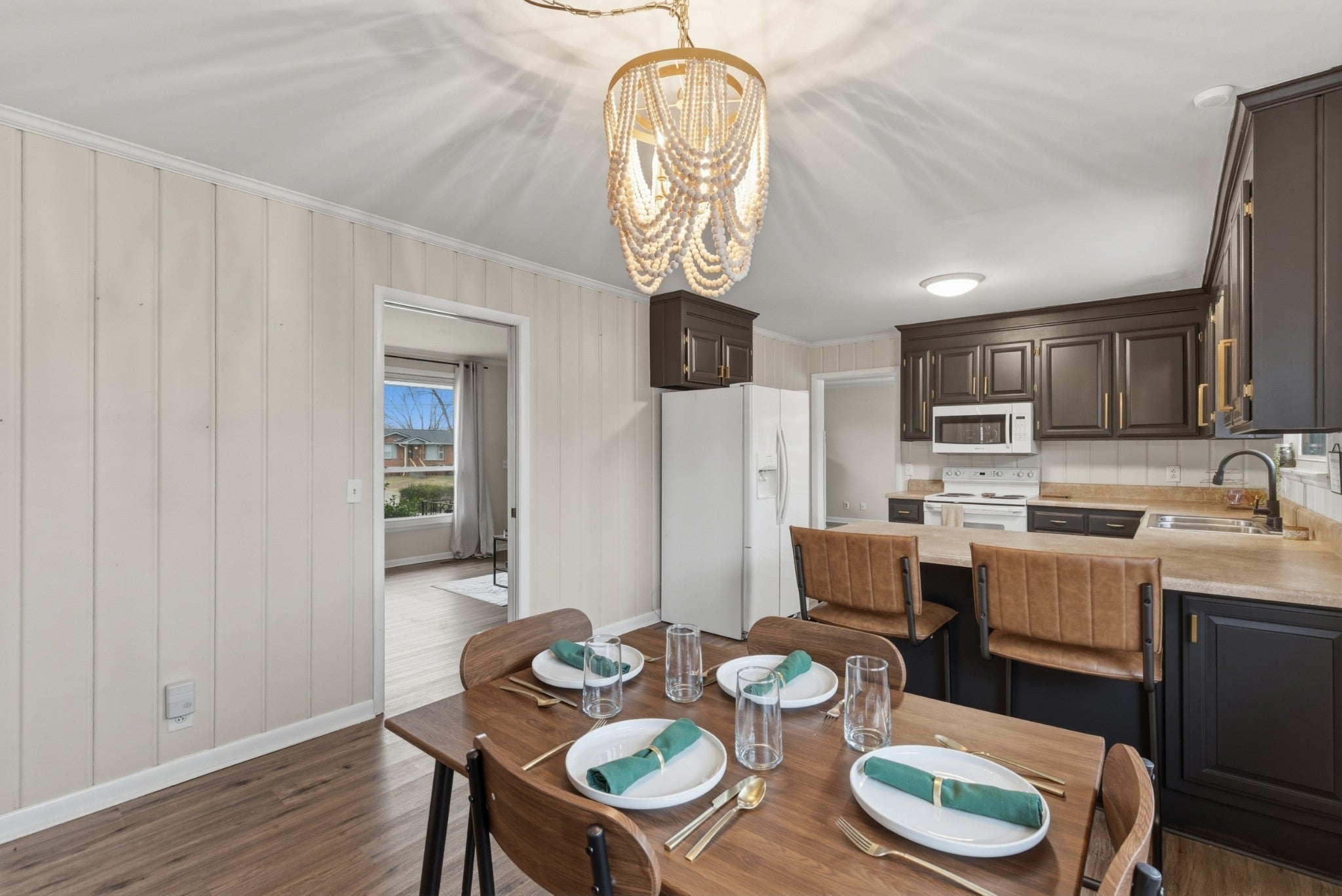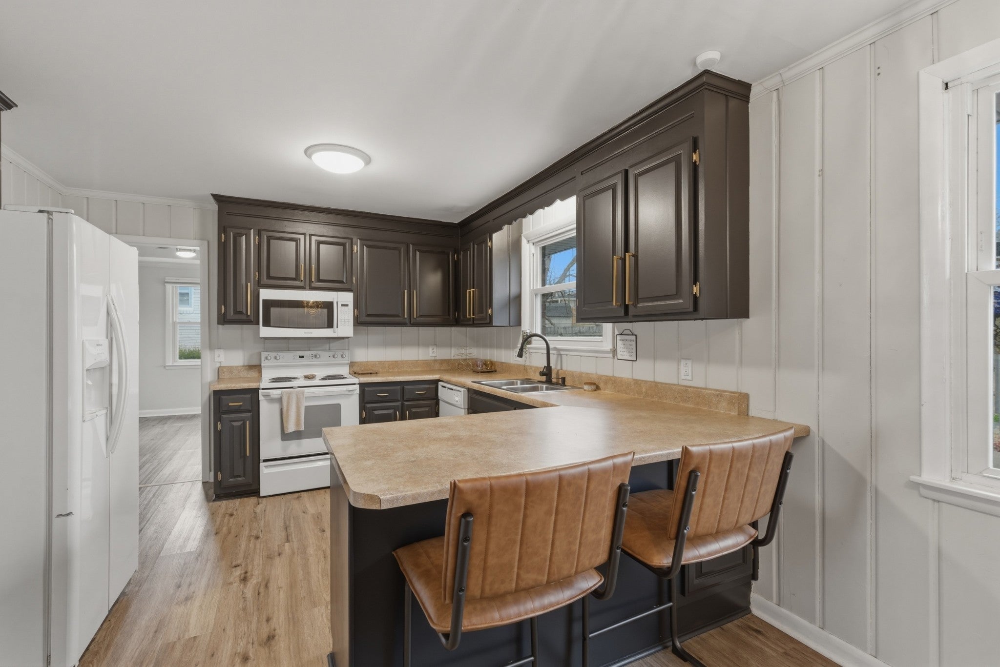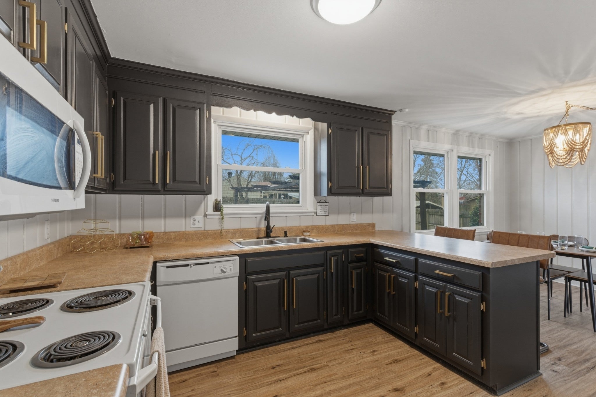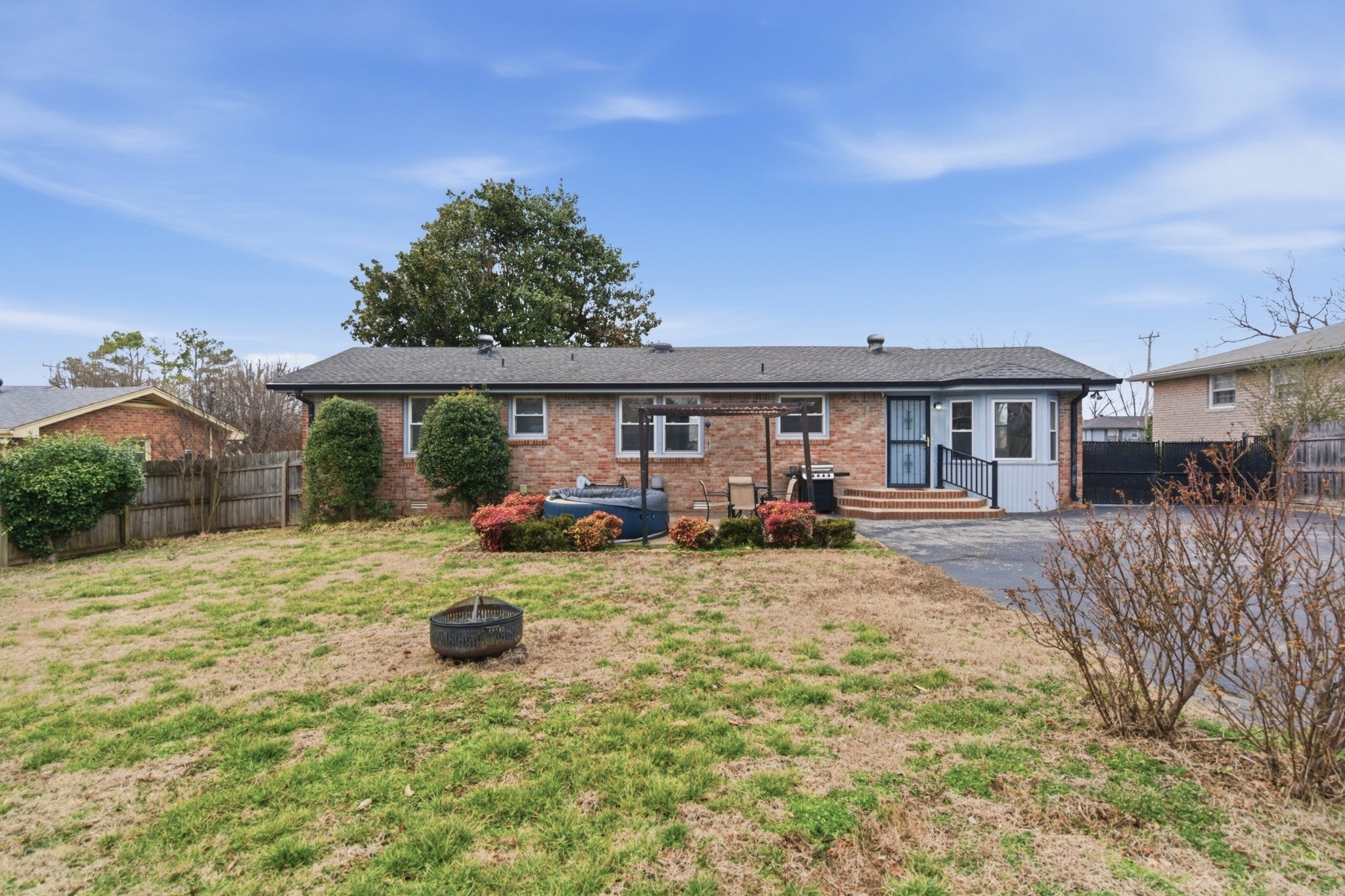 Super cute all-brick gem in the heart of Hermitage, showcasing mid-century modern charm at its finest...and NO HOA! The garage conversion offers flexible bonus space perfect for an entertainment lounge, home gym, playroom, or private office. The kitchen shines with sleek black cabinetry, brushed gold hardware, and updated lighting for a bold, modern look. A centrally located, updated bathroom features a spacious walk-in shower and a stunning vintage-style vanity. Step outside to a huge, fully fenced backyard with mature trees, a storage shed that conveys, and plenty of room to relax or play. Ideally located under 5 miles to Nashville Shores, 7.5 miles to BNA, and minutes from schools, Summit Hospital, shopping, and I-40.