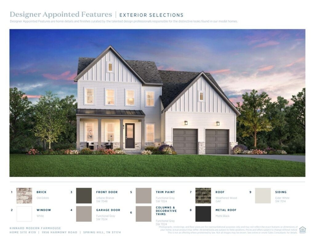 MOVE IN NOW! True elegance can only come from America's Luxury Homebuilder. Toll Brothers would like to welcome you to come explore our beautiful homes tucked away in the August Park community here in Spring Hill. Situated in a cul de sac and ready now, this gorgeous Kinnard plan Quick Move In Home provides you with room for working and entertaining, while keeping your private space tucked away. Well appointed finishes chosen for this beautiful home include a neutral palette of quartz countertops in the kitchen and bathrooms, engineered hardwoods that carry throughout the main level and common areas upstairs. Natural light abounds in this airy home between the abundance of windows and the 10ft first story and 9ft second story ceilings on each floor. Boasting a primary suite downstairs plus 3 additional bedrooms, a loft area and storage upstairs, everyone in your home will have all the space they need! Be situated in close proximity to everything you'll need; easy access for shopping; schools are less than a mile away and highway access that can take you up to Franklin or Nashville or straight south to the calm of the Gulf Beaches. This home is almost ready to be loved and make lots of memories for it's new family; will that be you? Price shown includes base cost, lot premium, structural and design choices. Ask about our current incentives for Quick Move In Homes! Contact onsite sales team for more information. All information deemed accurate; buyers to verify. Photos and/or renderings are for representational purposes and floorplans may vary in elevation and size.