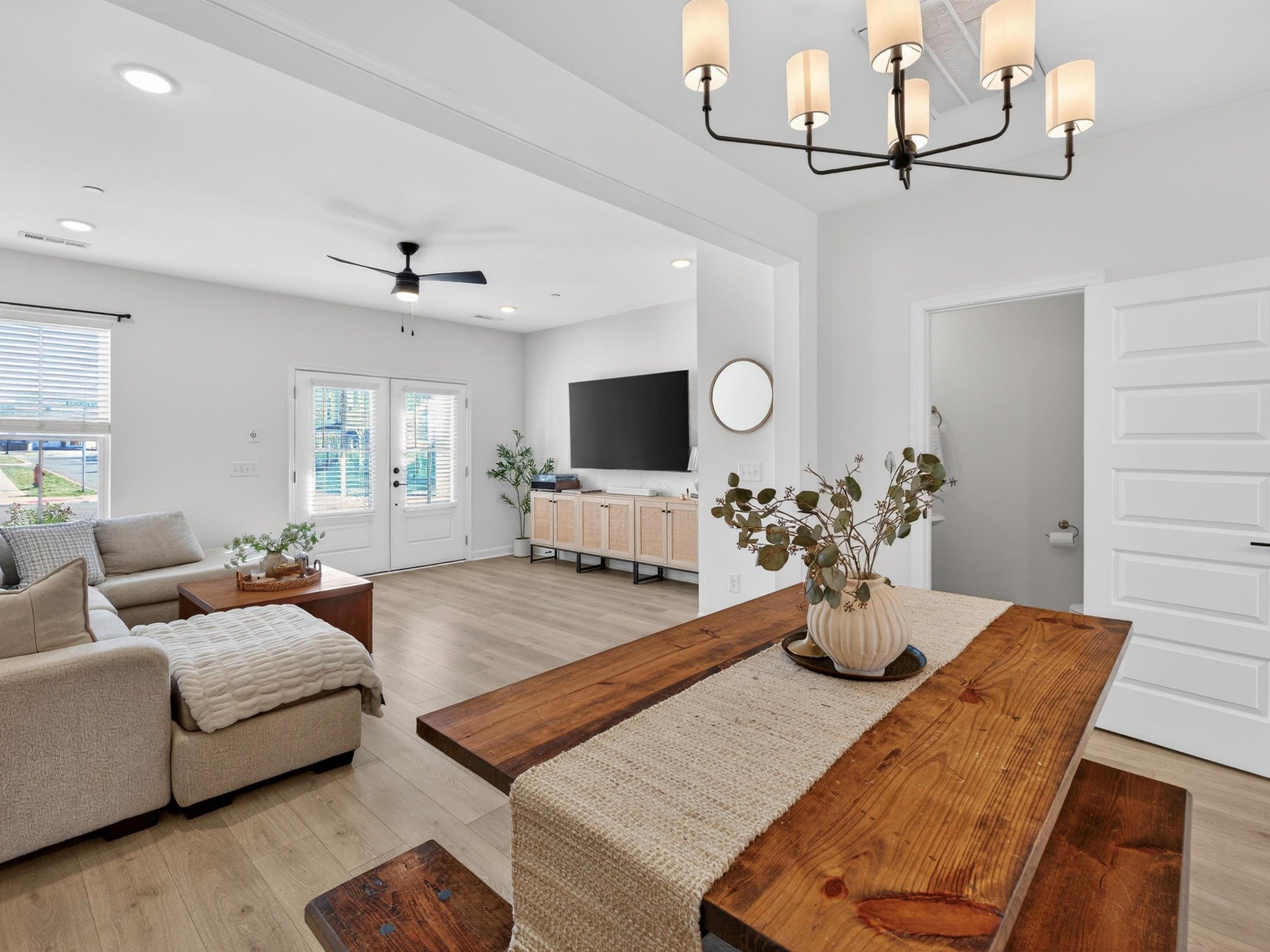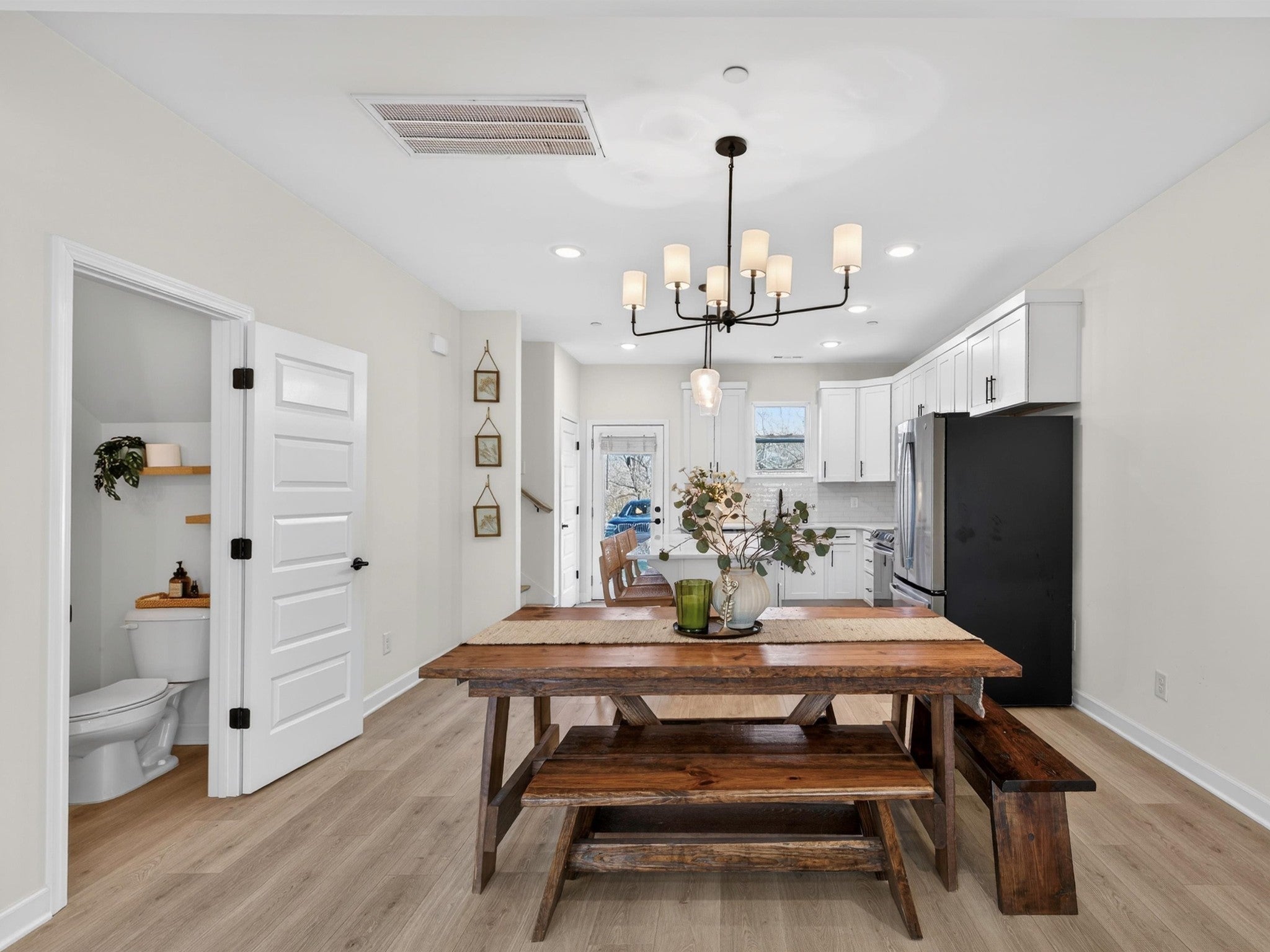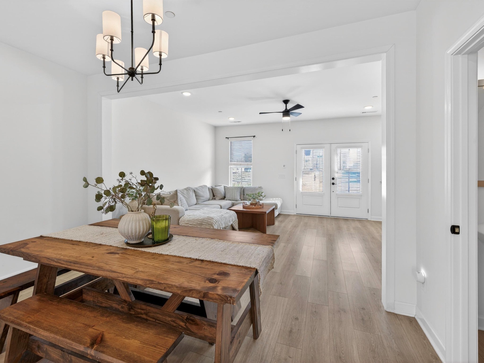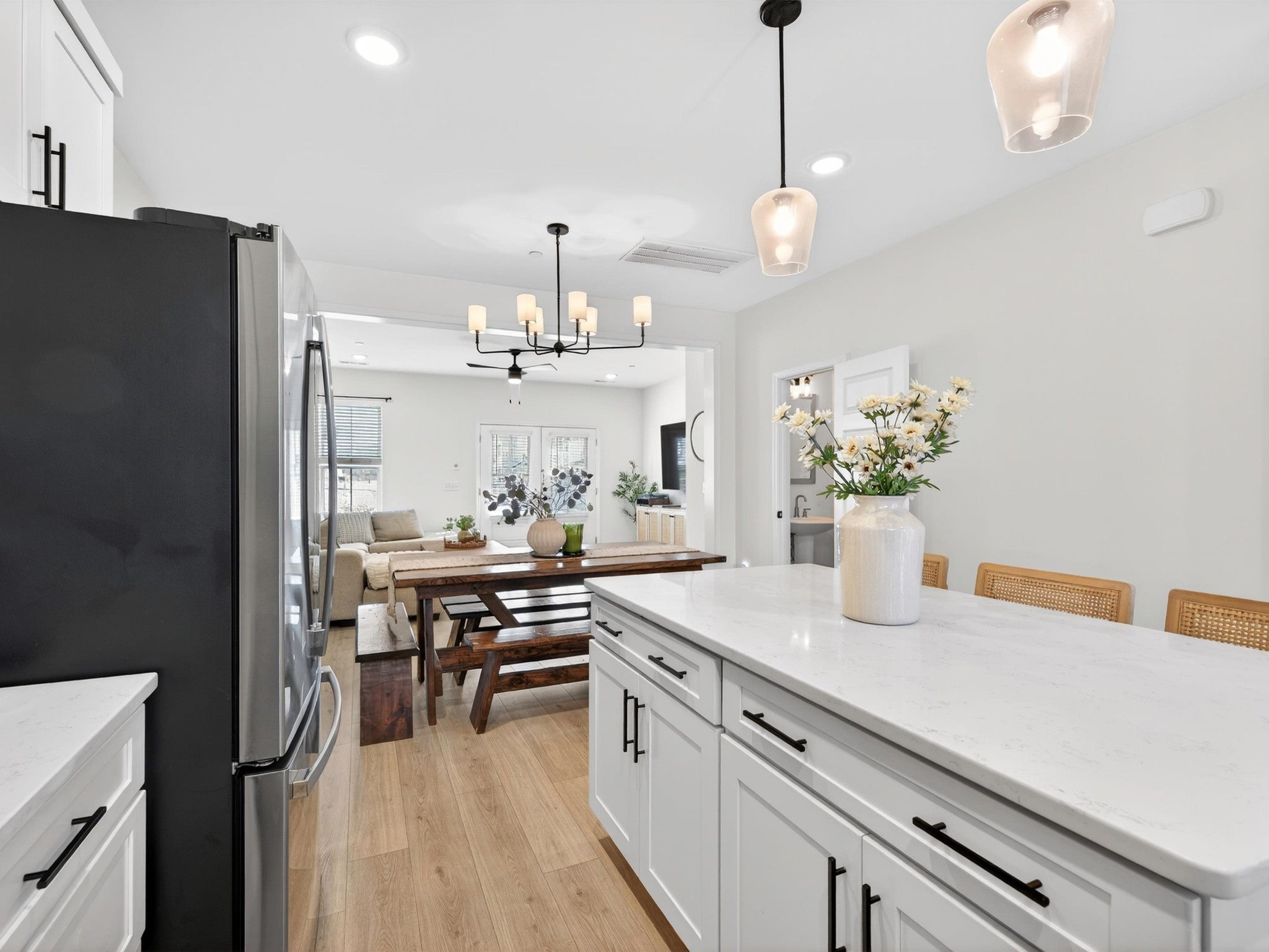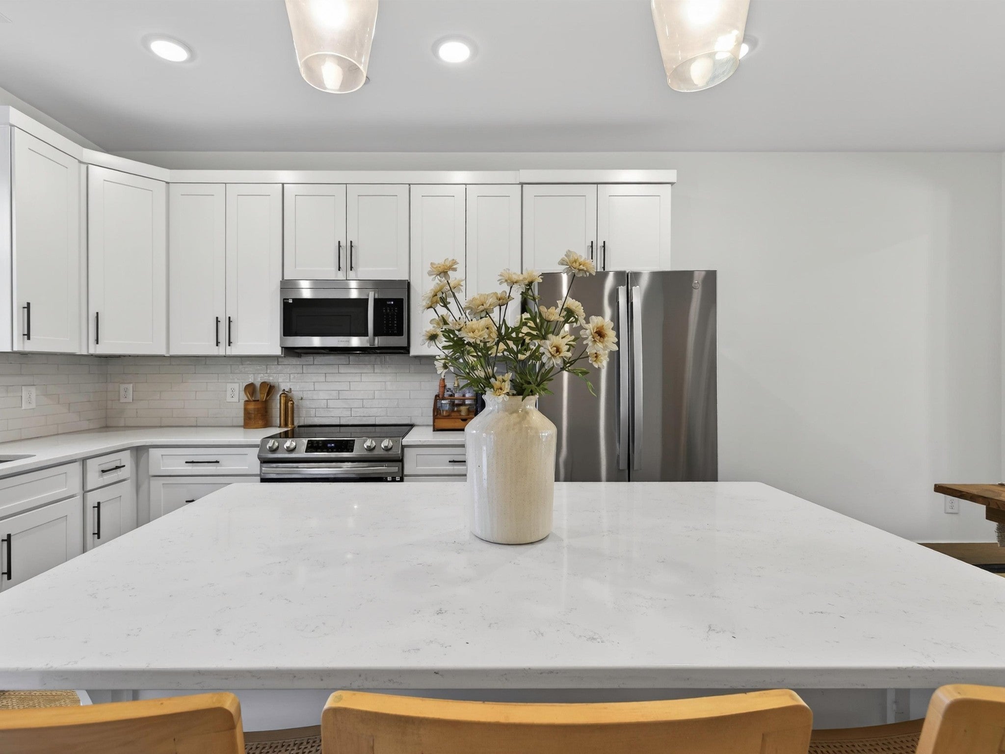 Welcome to 1945 Amacher Dr, a stunning newer construction townhome in the heart of Spring Hill, built in 2023 and designed with modern comfort and style in mind. This beautifully appointed 2-bedroom, 2.5-bath home offers 1,330 square feet of thoughtfully designed living space across two levels. The main living area features rich hardwood floors and hardwood stairs, creating a warm and upscale feel throughout. The open-concept kitchen is a true highlight, complete with sleek quartz countertops, crisp white cabinets, stainless steel appliances, a spacious center island, and large pantry—perfect for everyday living and entertaining. The kitchen flows seamlessly into the living and dining areas, filled with natural light. Upstairs, the primary bedrooms offer a private en-suite bathroom with quartz countertops, double sinks, and large walk-in shower. The second bedroom offers an en-suite bathroom and covered balcony extending the living space outdoors ideal for morning coffee or evening relaxation. Located just steps away from shopping and restaurants, this home offers unmatched walkability while still providing a low-maintenance lifestyle. With contemporary finishes, a prime Spring Hill location with top rated schools, and easy access to major commuter routes, this property is ideal for first-time buyers, young professionals, downsizers, or investors alike. Don’t miss this opportunity to own a nearly new home in one of Middle Tennessee’s most desirable and fast-growing communities.