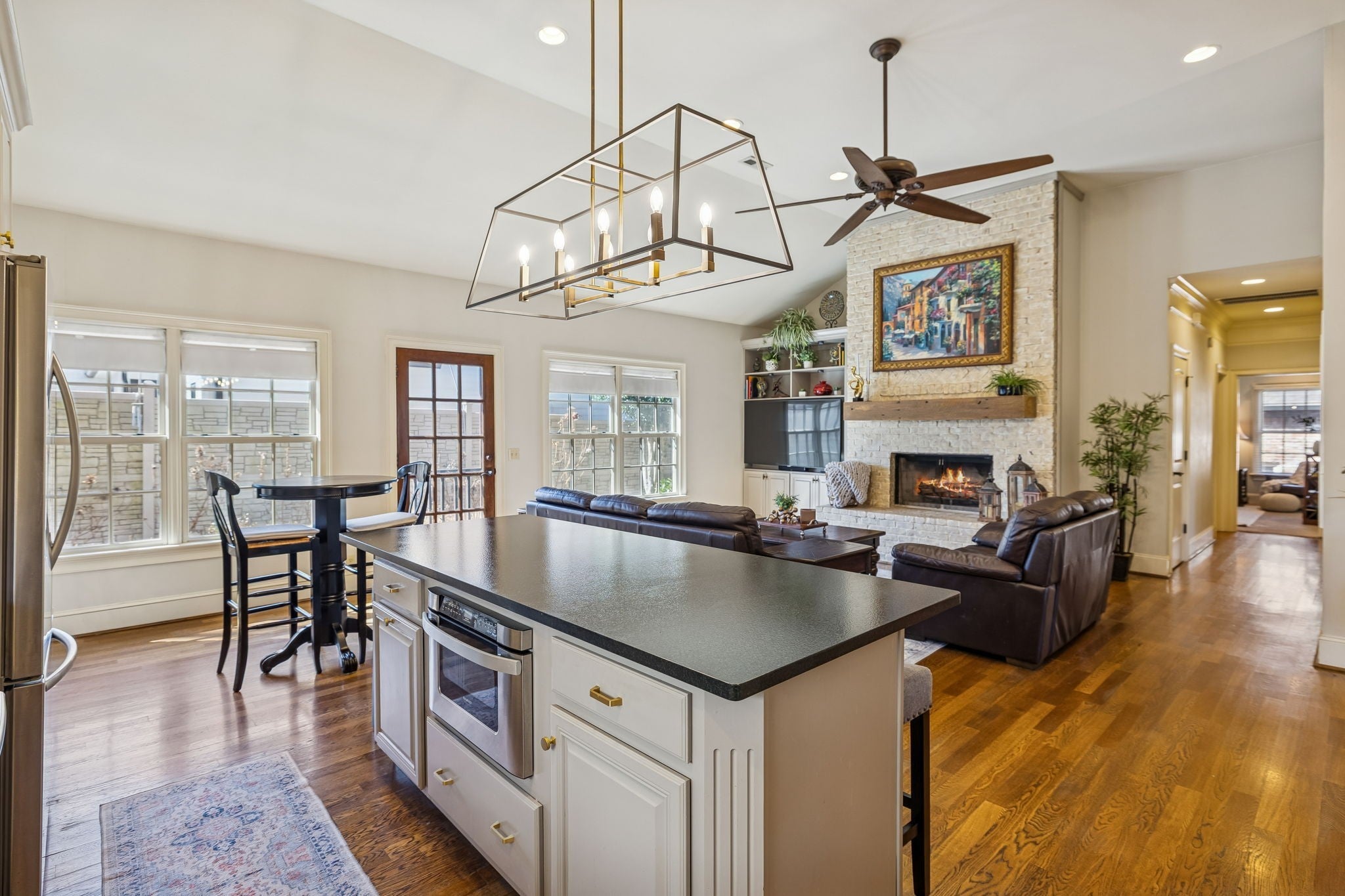 Welcome to effortless one-level living in this charming and meticulously maintained three-bedroom, two-bath brick home. Situated on a generous 109 x 100 lot and offering 2,411 square feet of thoughtfully designed space, this detached single-family residence combines timeless character with quality upgrades throughout. Inside, you’ll find a beautiful kitchen with stainless appliances! The kitchen opens to the living room with a vaulted ceiling that enhances the home’s open and airy feel. The stone fireplace serves as a warm focal point for the main living area, while the bonus room over the garage provides flexible space perfect for a home office, media room, or guest retreat. The attached two-car garage is as impressive as the home itself, featuring an epoxy floor, built-in cabinetry, and even a vehicle vacuum system for added convenience. Outdoors, the attention to detail continues with exceptional hardscape, a full irrigation system, and a lush green lawn (spring and summer months are coming!). The backyard is lined with gorgeous hydrangeas, creating a private and picturesque setting for relaxing or entertaining. BRAND NEW ROOF! All of this in an unbeatable location just minutes from Vanderbilt, Downtown, Green Hills, and Belle Meade. Enjoy the freedom of no HOA and the benefits of a prime address where convenience truly meets comfort. LOCATION, LOCATION, LOCATION.