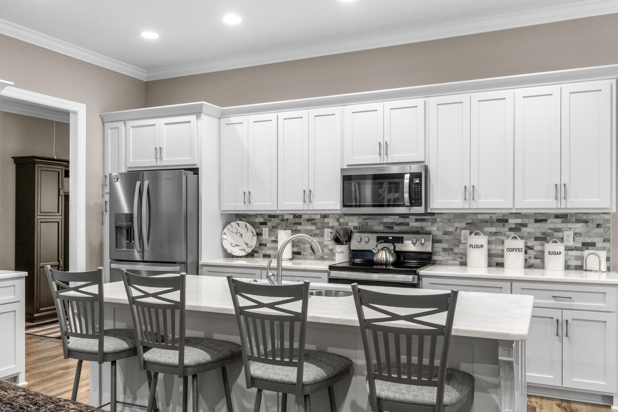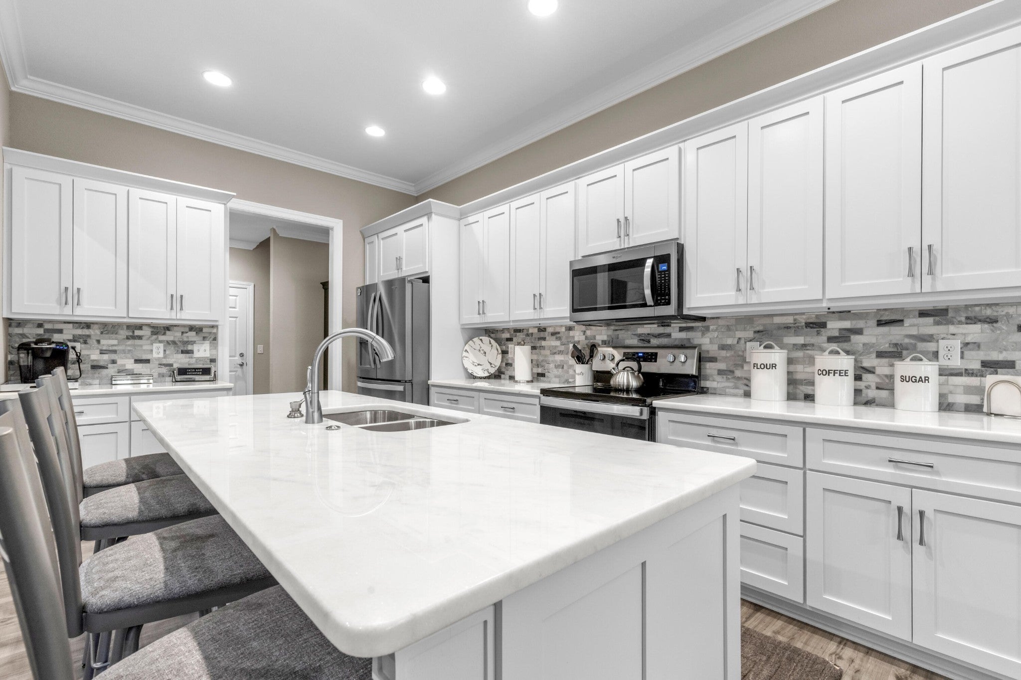 - Refrigerator, Microwave, Electric Oven, Cooktop, Dishwasher, Dryer, Washer