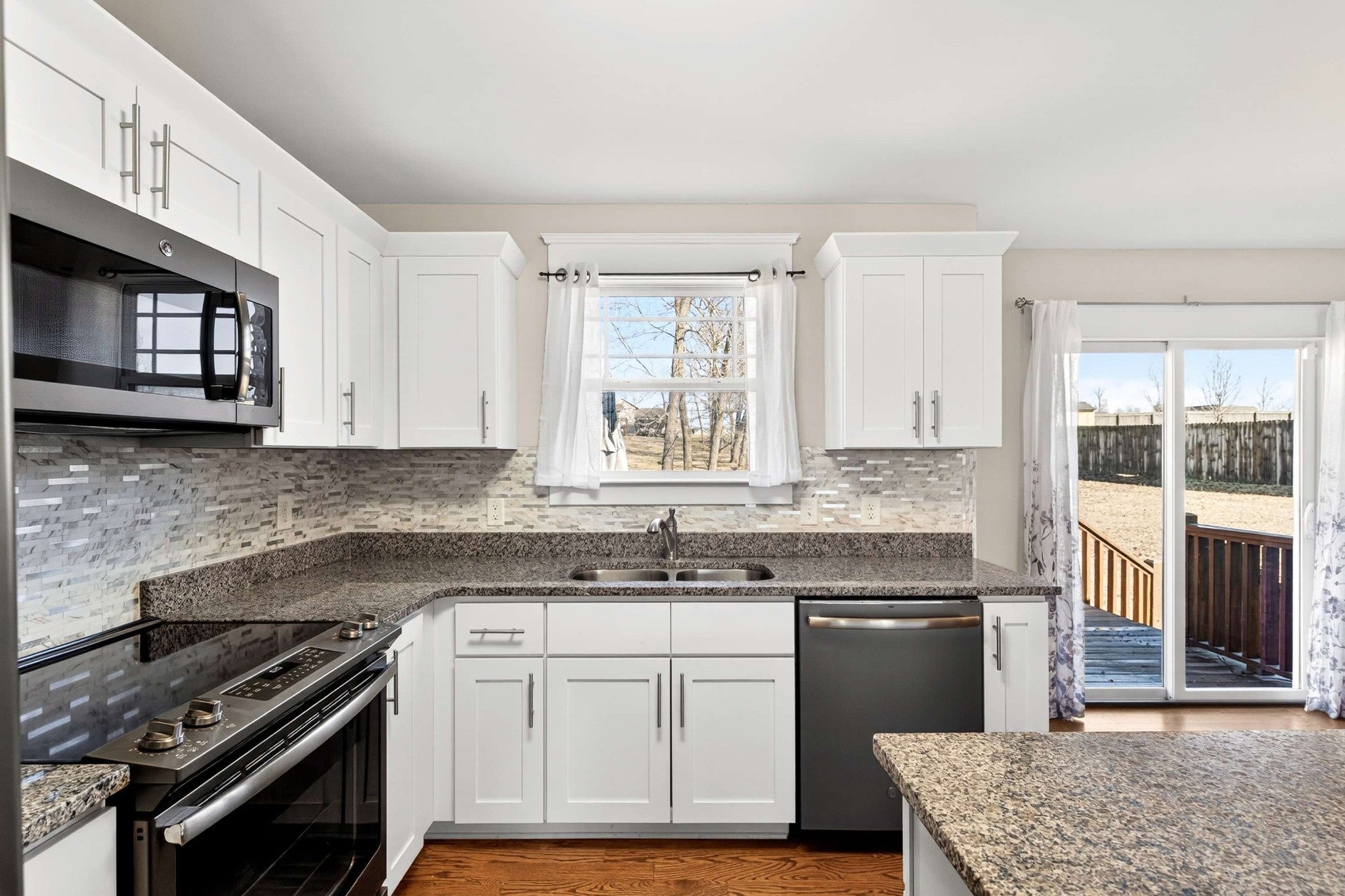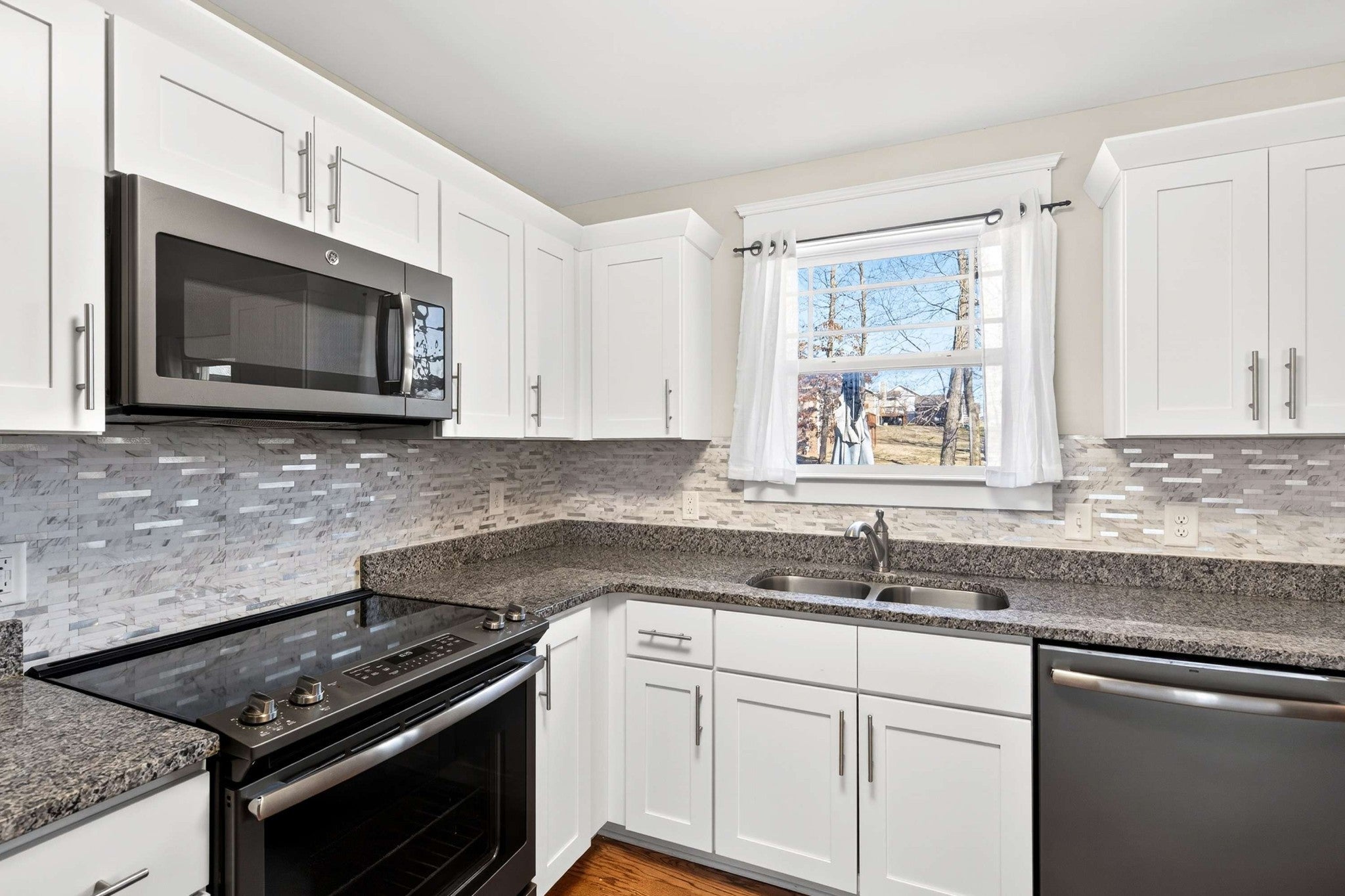 - Electric Range, Dishwasher, Disposal, Dryer, Microwave, Refrigerator, Stainless Steel Appliance(s), Washer