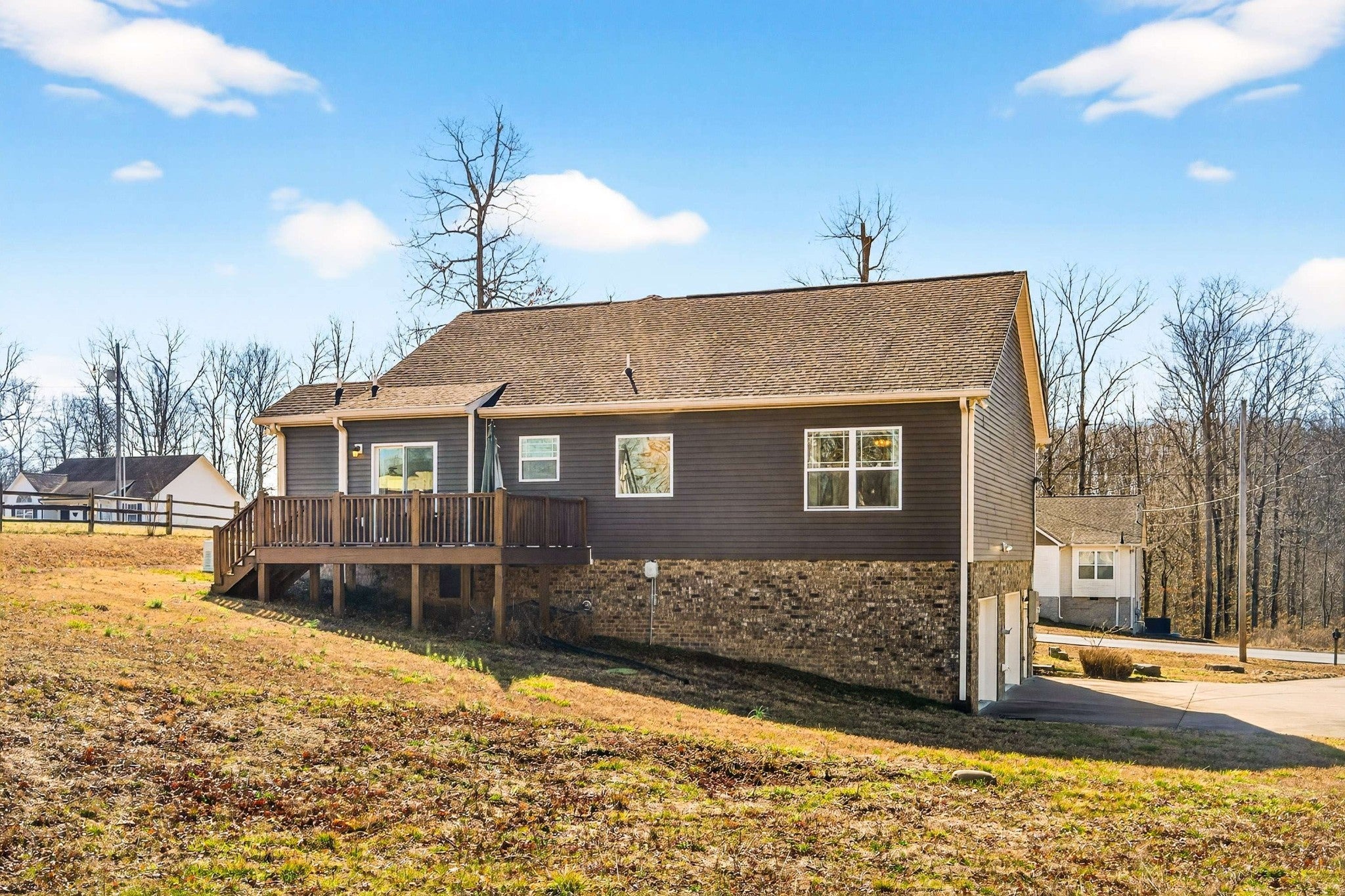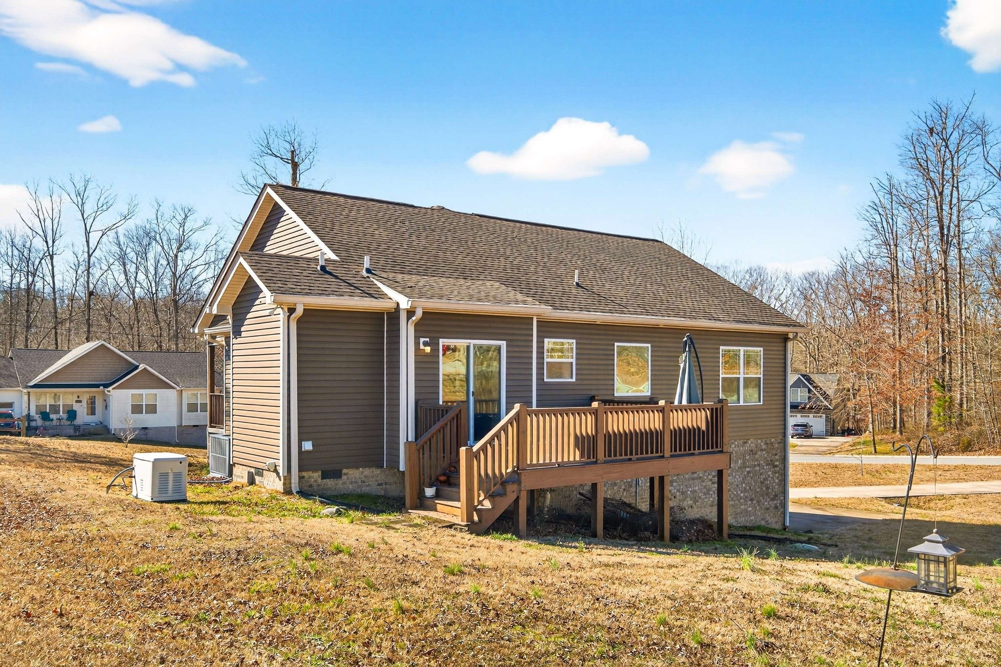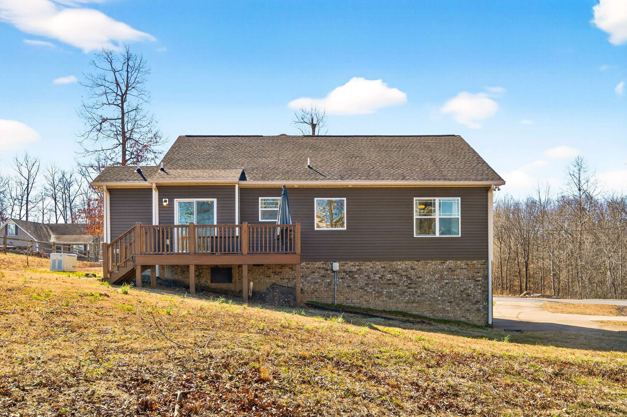 A Whole-Home Generac generator, an ADT security system, and built-in accessibility features set this home apart — upgrades that add real comfort and reliability to everyday living. A one-level home offers a functional, easy-to-maintain layout with wood flooring in the main living areas and carpeted bedrooms for added warmth. The kitchen features granite countertops, stainless steel GE appliances, electric range, side-by-side refrigerator, and disposal, designed for practical daily use and entertaining alike. The laundry room includes an LG stainless front-loading washer and dryer, plus built-in shelving. The primary suite provides two walk-in closets and a spacious bathroom with dual sinks, granite counters, a soaking tub, and a separate shower. The guest bath also features granite counters, tile flooring, and a large soaking tub. Additional highlights include: Tankless Water Heater, Natural Gas Log Fireplace, 5-panel Interior Doors, Coat Closet for added storage,Stair Lift from basement garage to main level, freshly painted throughout, Firepit, and umbrella on back deck. Located in the White Bluff Hills, this home is well-suited for a first-time buyer or anyone looking to simplify their life into a comfortable, manageable next chapter. Move-in ready and thoughtfully designed for easy living.