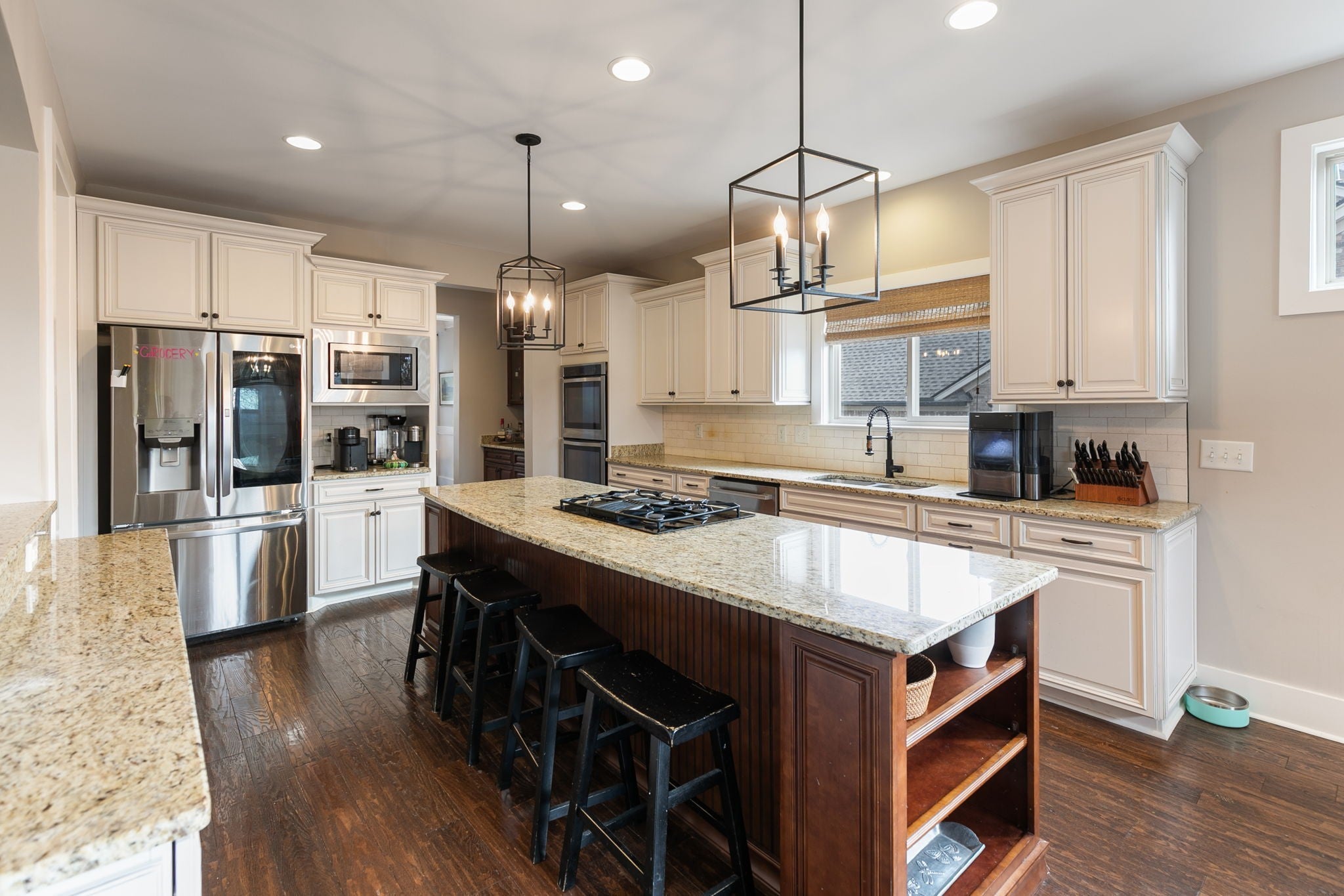 - Double Oven, Built-In Gas Range, Dishwasher, Disposal, Microwave, Refrigerator, Stainless Steel Appliance(s)