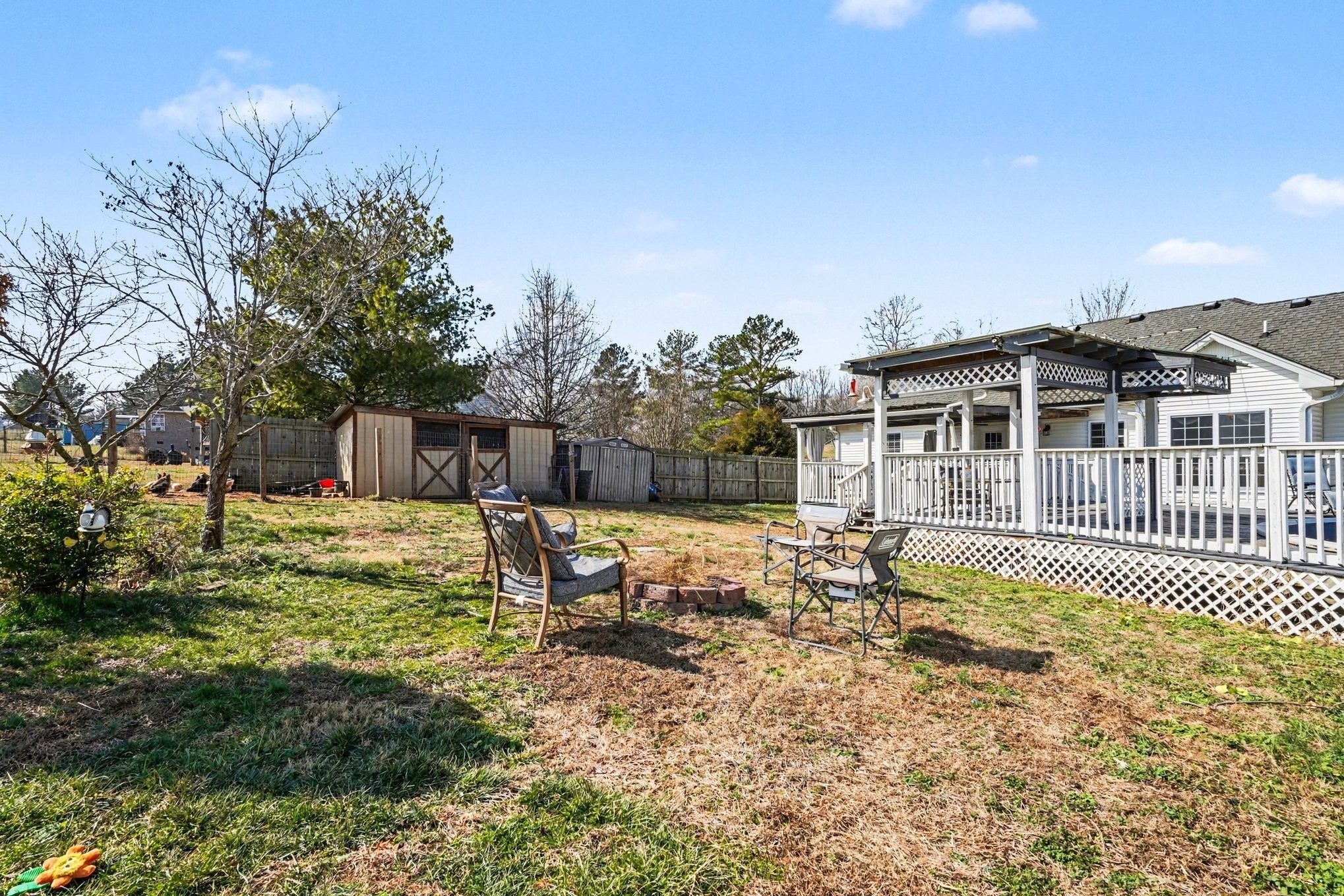 Very close to I-65, this beautiful 3 bedroom, 2 bath home sits on almost an acre with a well-designed split floorplan and exceptional indoor and outdoor space. Step inside from the welcoming entry foyer into a spacious living area, separate dining room, and a well-appointed kitchen featuring granite countertops, stainless steel appliances, pantry, and breakfast nook. The fully upgraded main bathroom adds a fresh, updated feel, while Bedrooms 2 and 3 include double closets for ample storage. The extra-large bonus room offers brand-new carpet, skylights for abundant natural light, and its own heating and cooling unit — making it perfect as a 4th bedroom, gym, office, or media room. Just off the deck, the finished workshop/shed is heated and cooled with a window unit, ideal for hobbies or additional recreational space. Outdoors, enjoy relaxing under the covered deck or entertaining on the expansive deck surrounding the above-ground pool with a brand-new liner. The HUGE double-fenced yard is ready for almost any need and includes a new 2-stall barn, chicken coop, and additional storage shed. A large 2-car attached garage and spacious parking area provide plenty of room for multiple vehicles. This property truly offers space, flexibility, and convenience in one complete package.