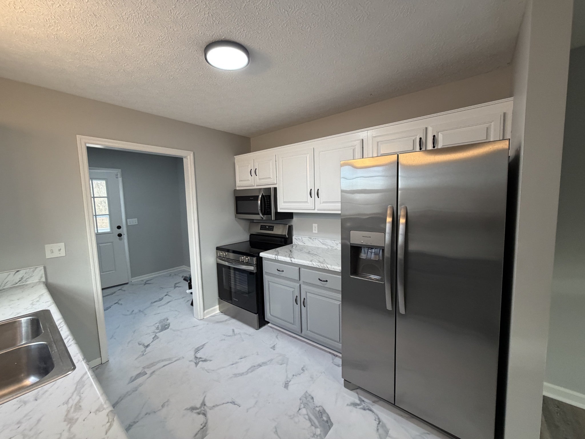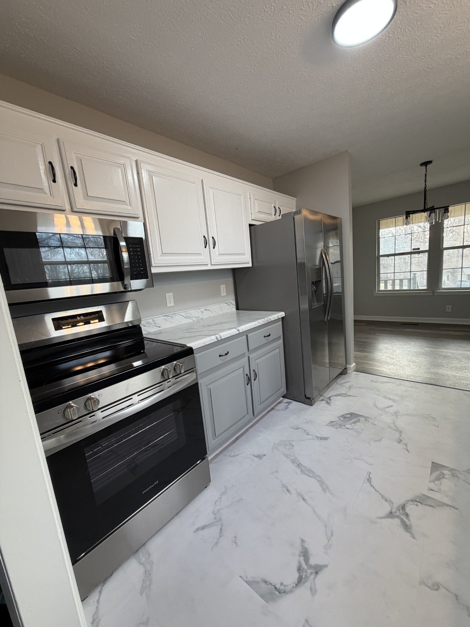 - Built-In Electric Oven, Electric Range, Dishwasher, Ice Maker, Microwave, Refrigerator, Stainless Steel Appliance(s)