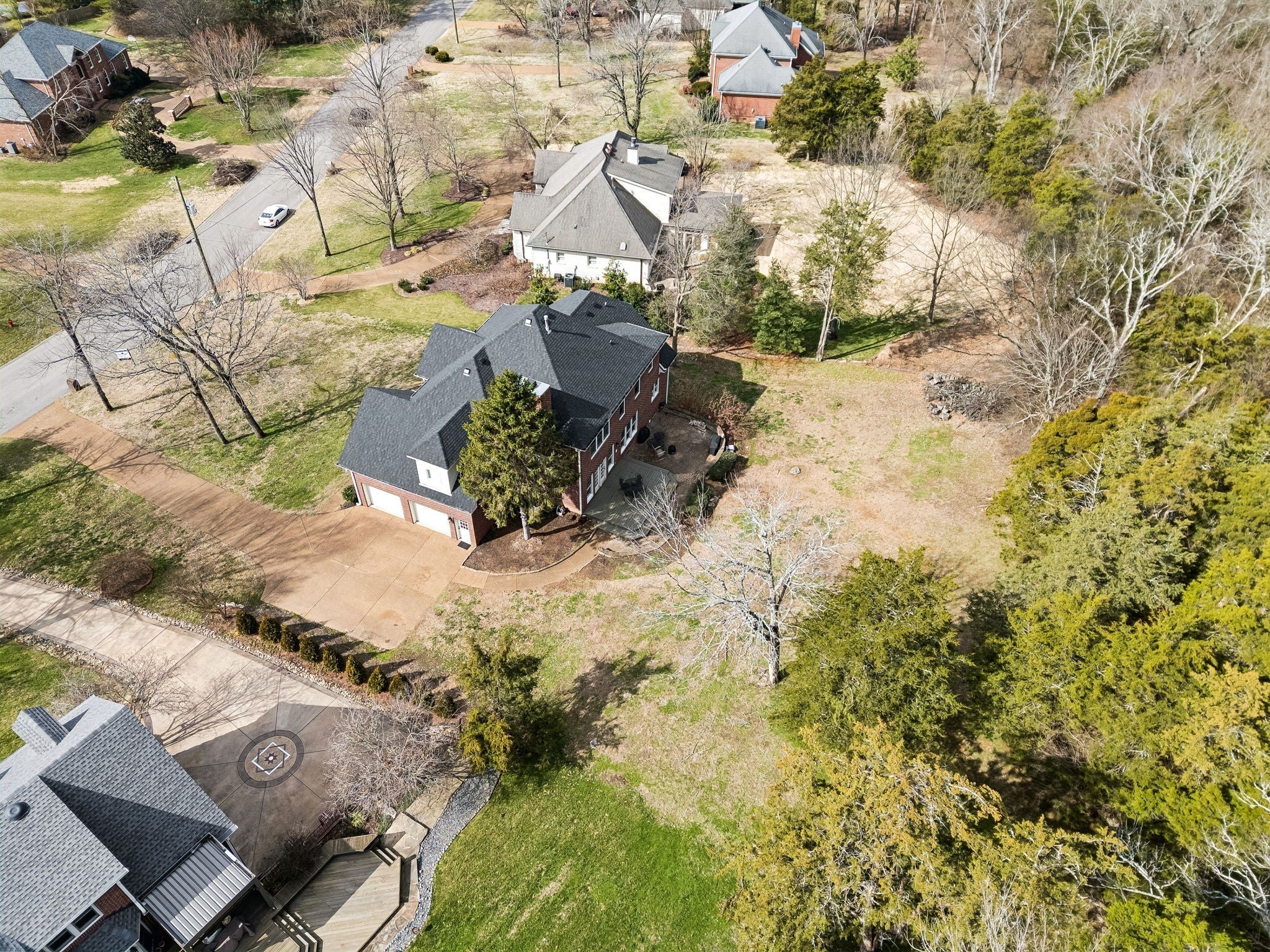 Without a doubt, the Best Buy in Brentwood! This exceptional 4-bedroom, 3.5-bath home offers over 3,100 square feet of beautifully maintained living space, ideally positioned on just shy of an acre in one of Brentwood’s most desirable settings. Perched on a scenic hilltop and backing to peaceful woods, this property delivers the perfect balance of privacy, space, and breathtaking views, yet convenient access to I-65.You will appreciate the fabulous open floor plan designed for both everyday living and effortless entertaining. Abundant natural light pours through newer Pella windows and front door, highlighting the hardwood floors that span the entire main level. The spacious living areas flow seamlessly into one another, creating an inviting atmosphere ideal for gatherings of any size. The thoughtfully designed layout ensures that every bedroom has direct access to a bathroom, offering comfort and convenience for family members and guests alike. Upstairs features brand-new carpet, adding fresh style and plush comfort to the secondary bedrooms. The oversized primary suite is truly a retreat, offering generous proportions, beautiful views, and a spa-like bath designed for relaxation. The en-suite bathroom provides ample space, dual vanities, and a luxurious feel, while the massive walk-in closet delivers exceptional storage. Outdoor living is just as impressive. Step onto the expansive patio and deck to enjoy morning coffee, evening sunsets, or weekend entertaining all surrounded by mature trees and the tranquility of your private wooded backdrop. The nearly one-acre lot provides room to breathe while maintaining a manageable footprint. Significant updates include a brand-new roof and newer Pella windows, offering peace of mind and long-term value. Located within highly sought-after Brentwood High School zoning and featuring a voluntary HOA, this home combines flexibility with access to top-tier schools and community amenities.