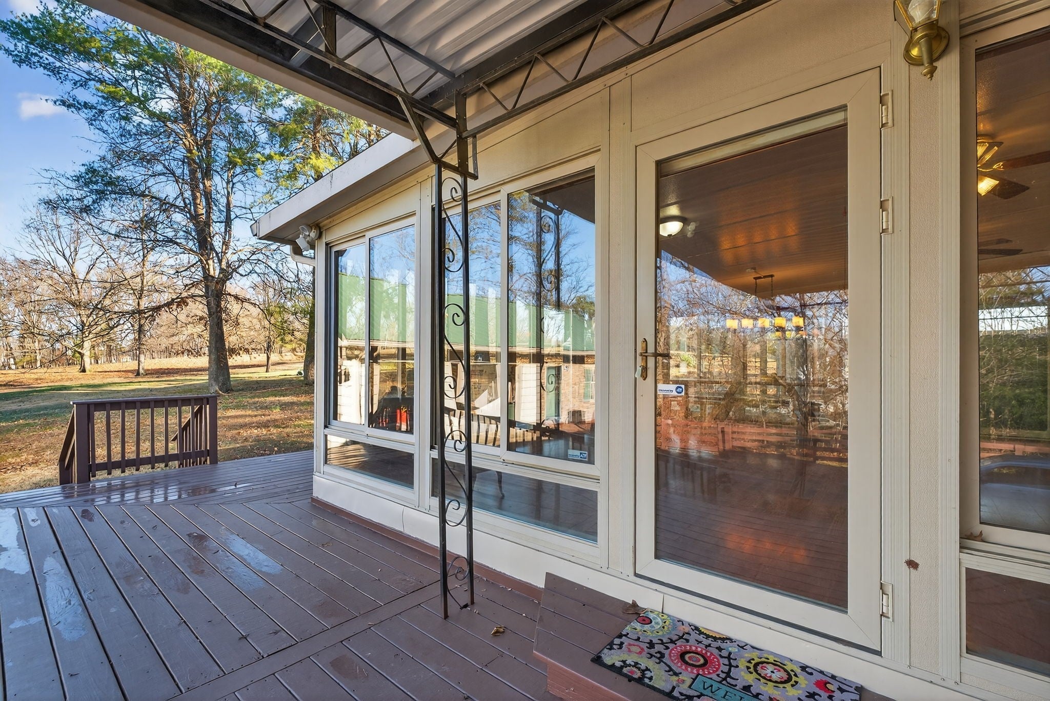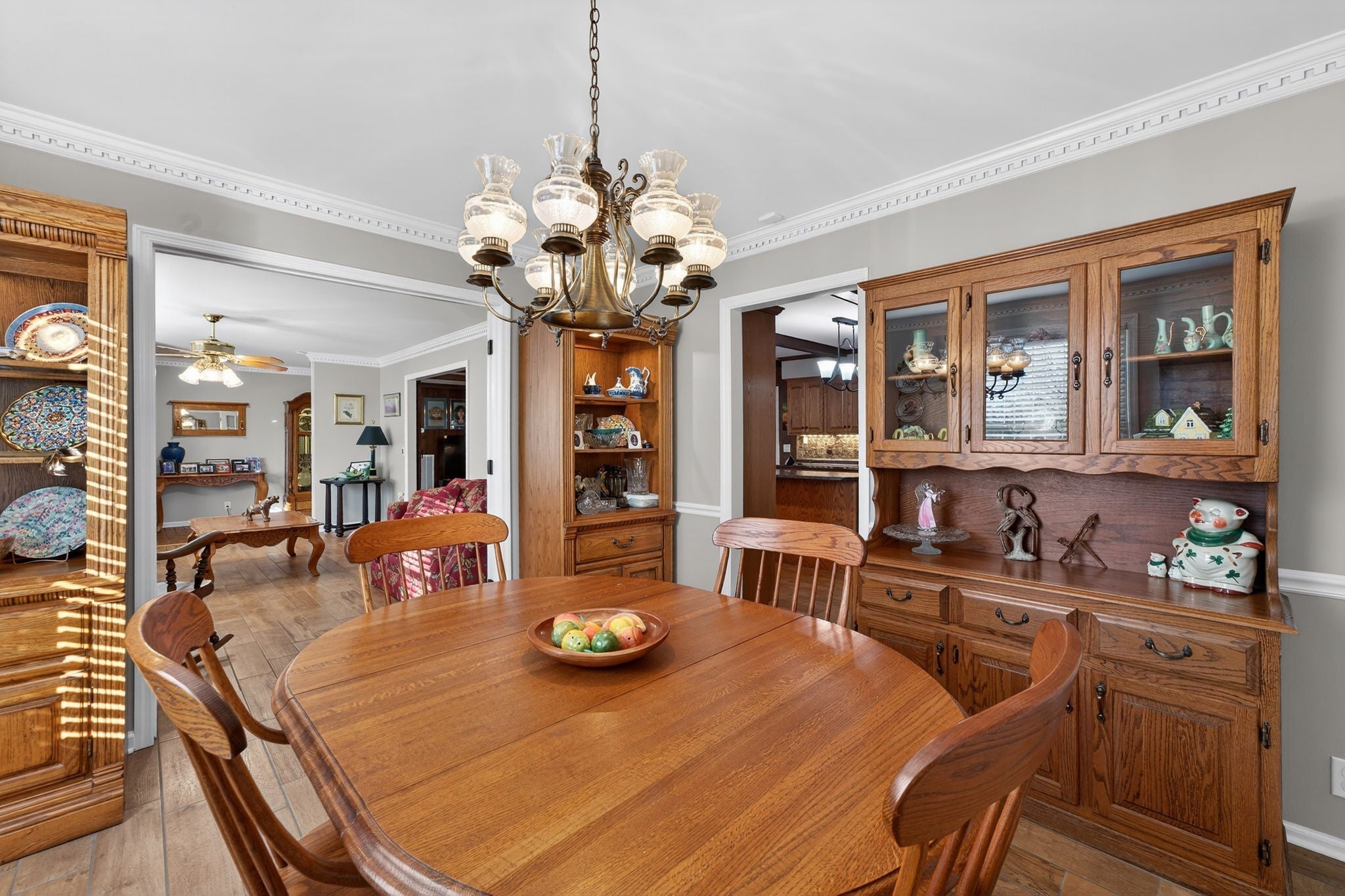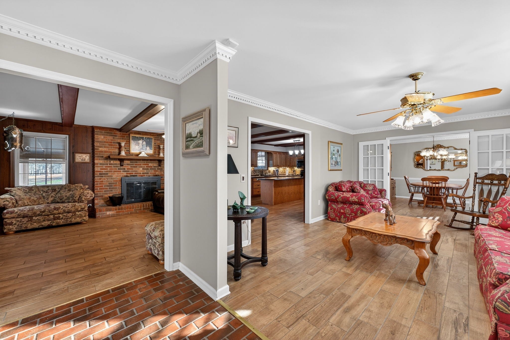 Welcome to this beautifully updated property offering the perfect blend of comfort, functionality, and outdoor living on 4 scenic acres. This home features a fully remodeled kitchen with updated cabinetry, new stainless steel appliances, fresh paint, and updated finishes throughout. Along with a redesigned primary bathroom featuring a walk-in zero-entry shower and a hall bathroom with a jacuzzi tub. Both bathrooms include updated toilets. Enjoy the durability and modern look of new ceramic flooring across the entire home, along with new 6-panel interior doors and two updated 50-gallon water heaters. This all electric home features replacement windows and sliding barn doors that separate family and living rooms. Step outside to a new deck (August 2025) overlooking a large private yard, complete with a covered area and a 24’ x 18’ all-weather dog run featuring a deck, AstroTurf and a convenient doggy door surrounded by 6 foot protective privacy fence—perfect for pet lovers. The property offers a private setting with many, many mature trees, including oak, elm, pear, hickory, redbud, chestnut (4), and pecan (5). Along with 2 raised vegetable gardens. Approximately 1 acre of virgin woods located at the rear of the lot. For those needing space to work or create, the property includes a 2-car pass-through detached garage, an expansive 1,974 sq ft basement including garage, ideal for workshop and storage use, and approximately 450 sq ft of climate-controlled office/flex space (not included in listed square footage), complete with a full-length, stand-up attic above for additional storage. Security and peace of mind come standard with a 6-camera Ring security system as well as 6 garage door openers with My Q smartphone accessibility. This unique property offers space, upgrades, and versatility—perfect for hobbyists, pet owners, or anyone seeking room to spread out while enjoying modern updates.