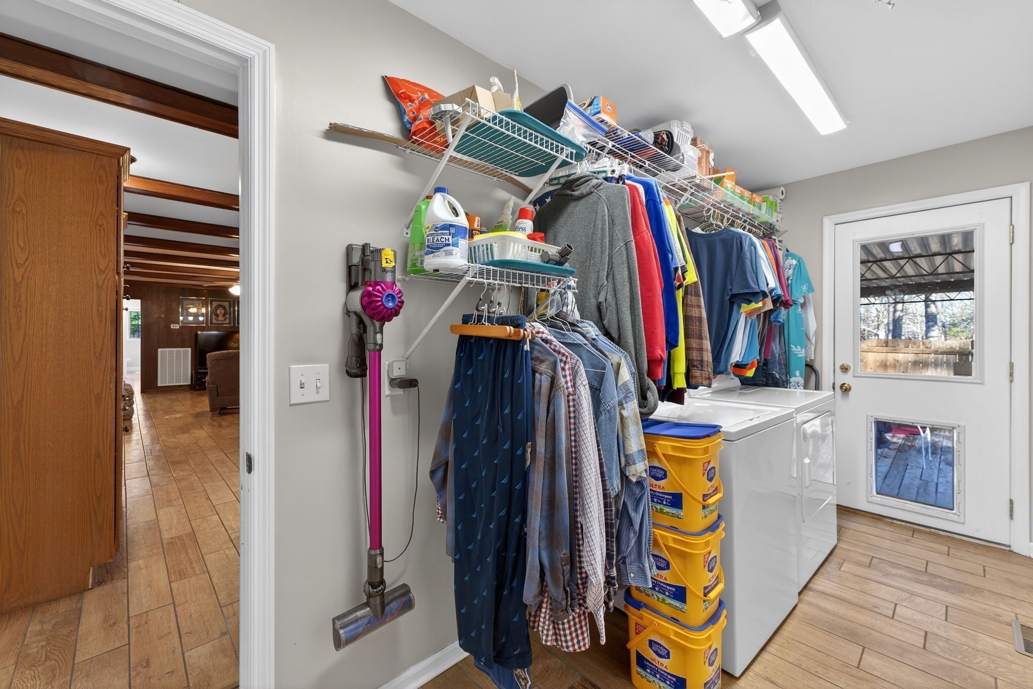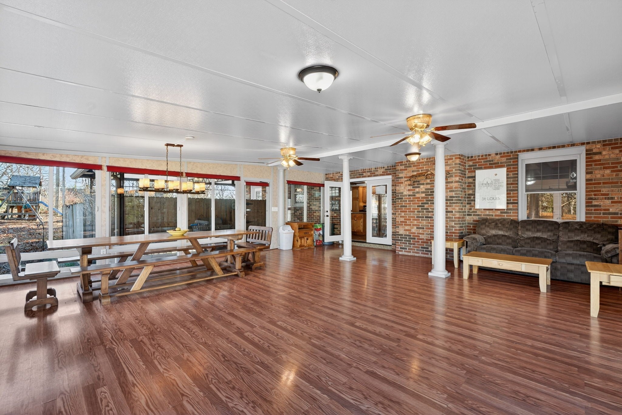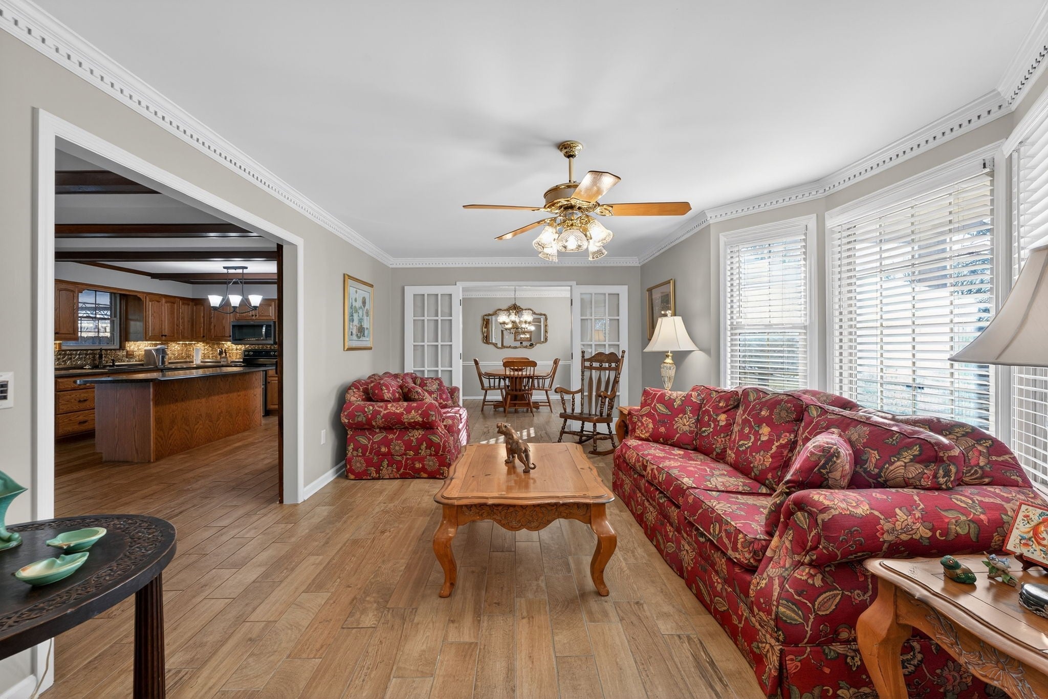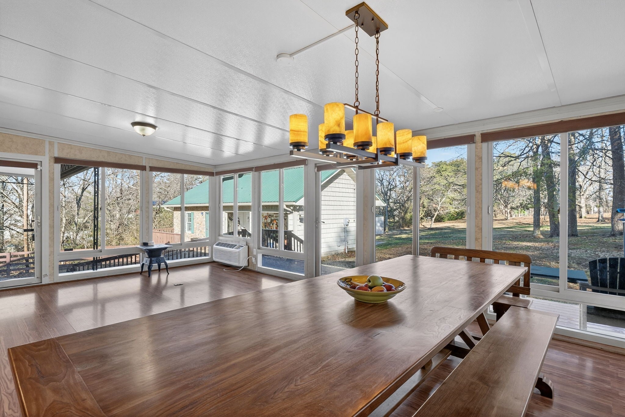 Welcome to this beautifully updated property offering the perfect blend of comfort, functionality, and outdoor living on 4 scenic acres. This home features a fully remodeled kitchen with updated cabinetry, new stainless steel appliances, fresh paint, and updated finishes throughout. Along with a redesigned primary bathroom featuring a walk-in zero-entry shower and a hall bathroom with a jacuzzi tub. Both bathrooms include updated toilets. Enjoy the durability and modern look of new ceramic flooring across the entire home, along with new 6-panel interior doors and two updated 50-gallon water heaters. This all electric home features replacement windows and sliding barn doors that separate family and living rooms. Step outside to a new deck (August 2025) overlooking a large private yard, complete with a covered area and a 24’ x 18’ all-weather dog run featuring a deck, AstroTurf and a convenient doggy door surrounded by 6 foot protective privacy fence—perfect for pet lovers. The property offers a private setting with many, many mature trees, including oak, elm, pear, hickory, redbud, chestnut (4), and pecan (5). Along with 2 raised vegetable gardens. Approximately 1 acre of virgin woods located at the rear of the lot. For those needing space to work or create, the property includes a 2-car pass-through detached garage, an expansive 1,974 sq ft basement including garage, ideal for workshop and storage use, and approximately 450 sq ft of climate-controlled office/flex space (not included in listed square footage), complete with a full-length, stand-up attic above for additional storage. Security and peace of mind come standard with a 6-camera Ring security system as well as 6 garage door openers with My Q smartphone accessibility. This unique property offers space, upgrades, and versatility—perfect for hobbyists, pet owners, or anyone seeking room to spread out while enjoying modern updates.