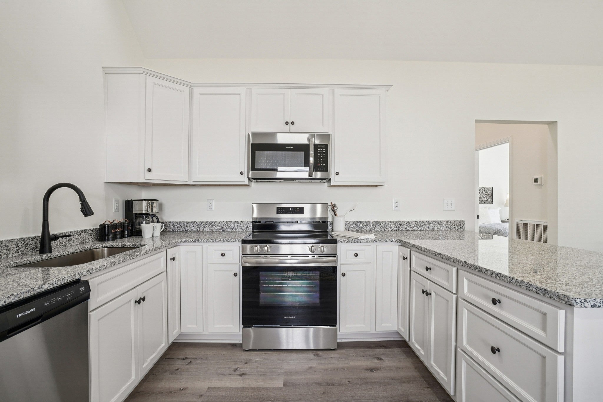 - Electric Oven, Electric Range, Dishwasher, Microwave, Stainless Steel Appliance(s)