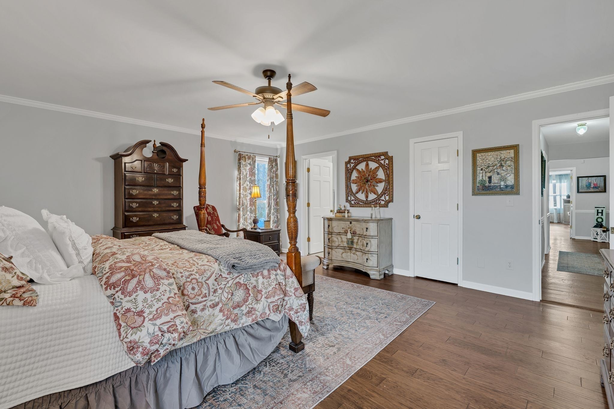 Come explore this beautiful property! This custom home is perfectly situated overlooking a rolling field complete with a beautiful pond. The 4 bedroom house offers a split floor plan, 3 1/2 baths, a large separate family room, sewing room, formal dining room, and a cozy living room. In addition, you will find a great room with a fireplace open to the kitchen. With 16 acres of both wooded and open land, you will find a barn and another pond on the back of the property. A cozy cabin located just behind the home is fully equipped as a separate living space, complete with 1 bedroom, full bath, kitchen, and a large living and dining area. This offers the perfect setup for family or potential rental income. You don't want to miss this gorgeous property!