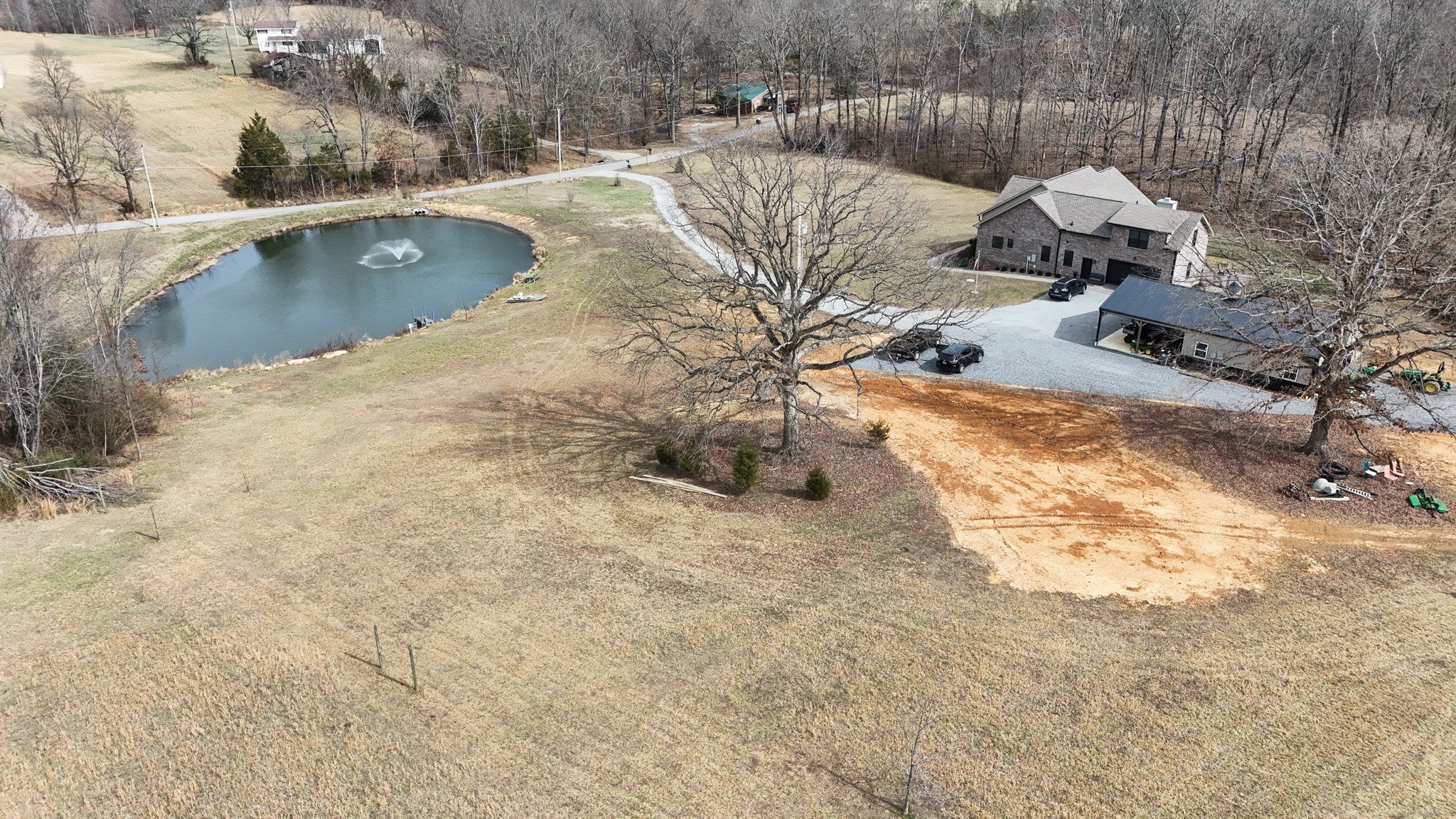 Welcome home to this beautiful retreat in Cottontown, TN where peaceful country living meets custom comfort. Nestled on 8.13 total acres, the homes it’s on an 5.74 acre tract and includes an adjoining 2.39 acre lot approved for a three bedroom house! Built in 2023, this stunning property offers the perfect balance of privacy and convenience with just a short drive to Nashville or Bowling Green KY and is a shorter drive to Gallatin, White House or Portland. There is a shop with covered porches and a carport, a stocked pond with a small dock a newly planted apple tree grove and a fenced in backyard. On the back of the home there is a covered porch with a gas fireplace for relaxing or entertaining. Inside there are 4 bedrooms, 2 1/2 baths and a bonus room. The floors are finished hardwood in the main living areas and the primary with carpet in the guest bedrooms and the bonus room. There are soaring ceilings with beautiful beams in the living room and a gas fireplace. The kitchen has custom cabinets and quartz countertops. The laundry room has custom cabinets and the washer/dryer stay. There are so many custom details it would be hard to list them all. You MUST SEE it!