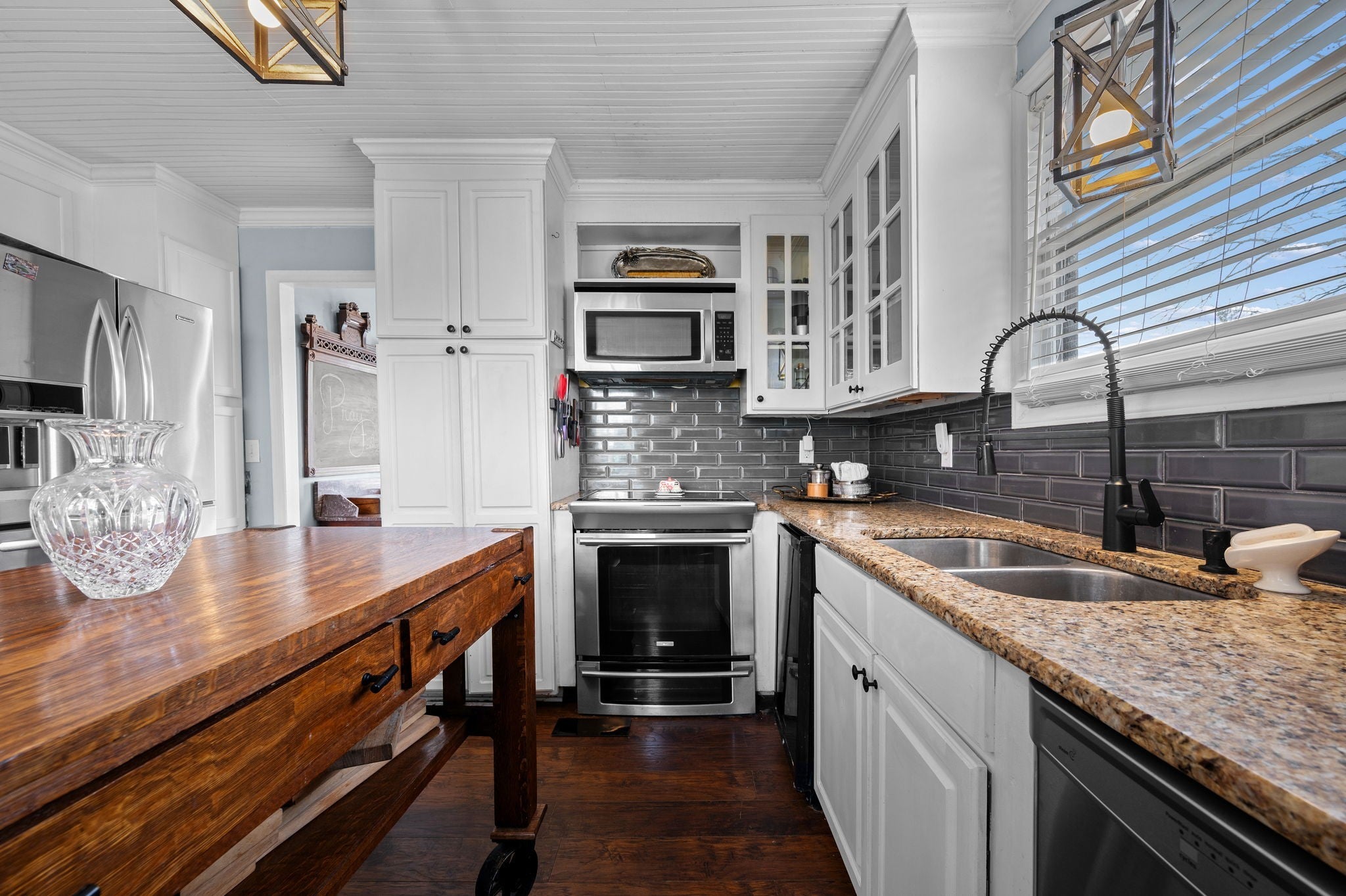 - Electric Oven, Electric Range, Dishwasher, Ice Maker, Microwave, Refrigerator, Stainless Steel Appliance(s)