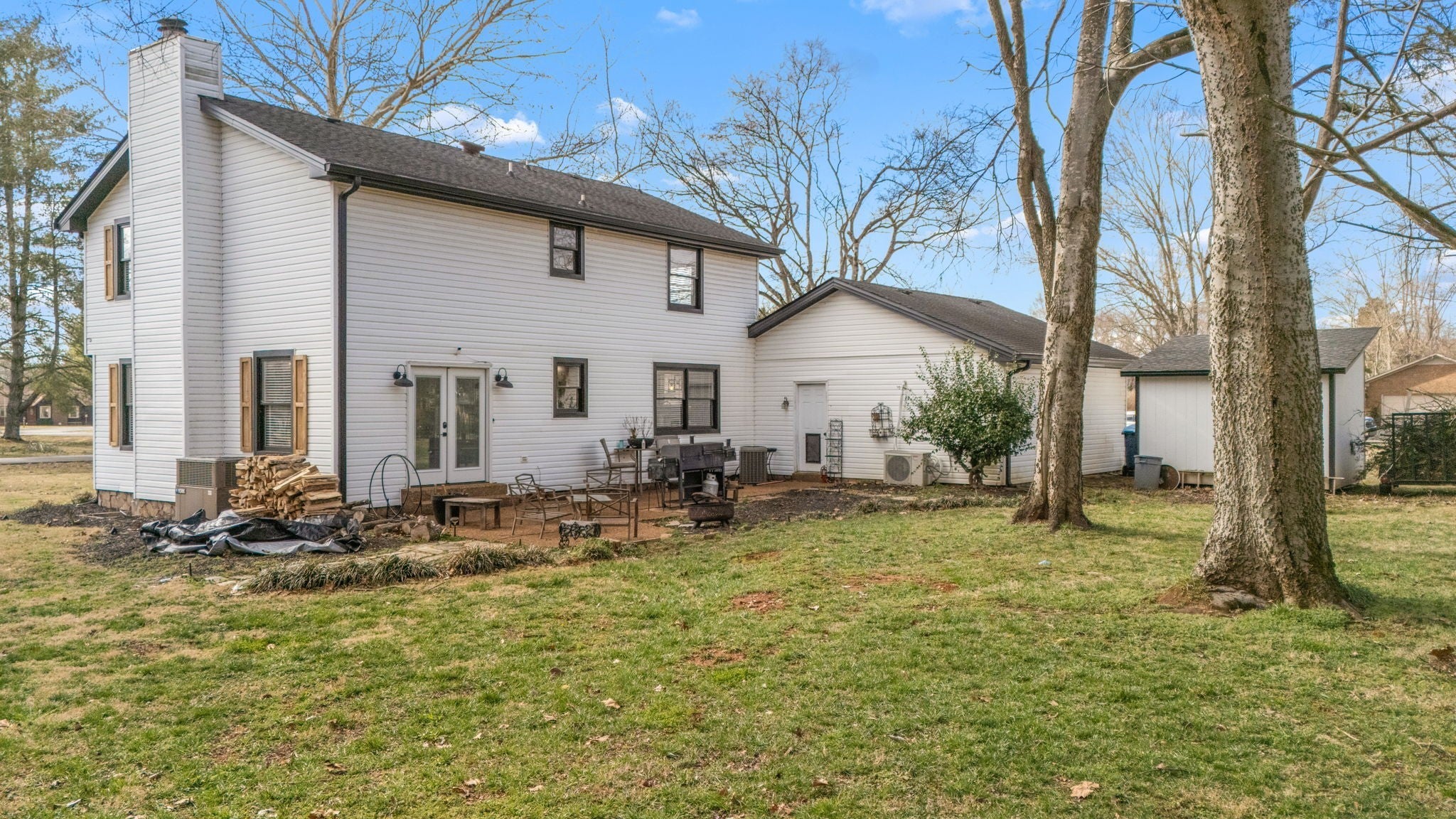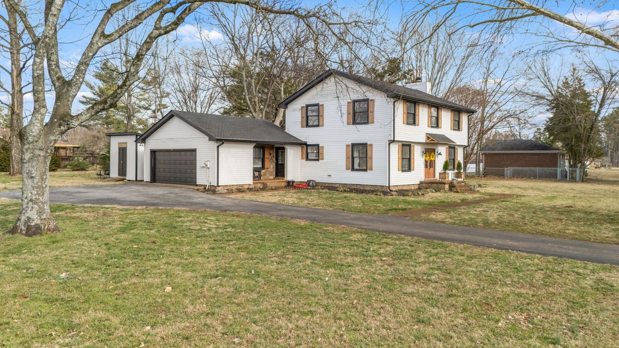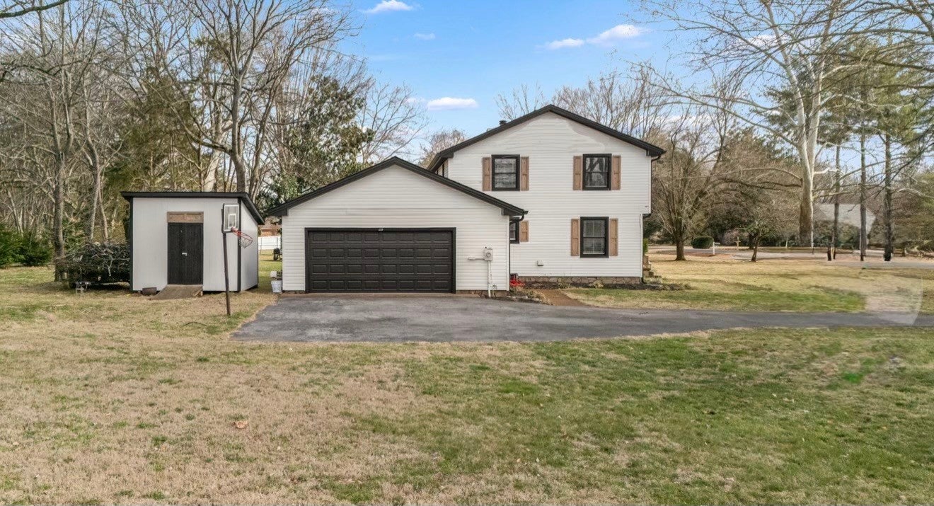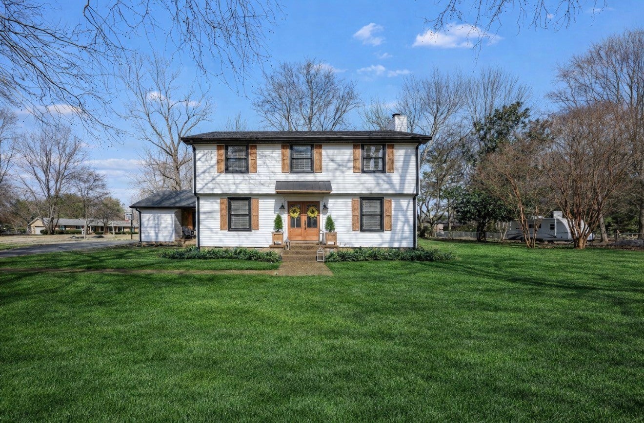 Welcome to this timeless 1970s Colonial nestled on the southern edge of Rutherford County. Offering 3 bedrooms, 2.5 baths, and 1,890 square feet, this home blends classic character with thoughtful updates. Inside, you’ll find beautiful new flooring throughout, neutral paint, abundant natural light, and an original fireplace that anchors the main living space with warmth and charm. The spacious primary suite provides a true retreat, and the oversized pantry is a rare bonus for everyday convenience. Major improvements include a newer roof, two newer HVAC units, a new insulated garage door, updated exterior shutters, and professional uplighting that gives the home a stunning presence at night. Enjoy evenings on the back patio overlooking the yard, with a generous storage shed offering additional space for tools or hobbies. The freshly painted garage includes a mini-split HVAC system, creating an excellent opportunity for a home gym, office, workshop — or easy conversion to additional living space. This is a well-maintained home full of character, comfort, and flexibility — ready for its next chapter. Note: Neighborhood Pool available with annual fee.