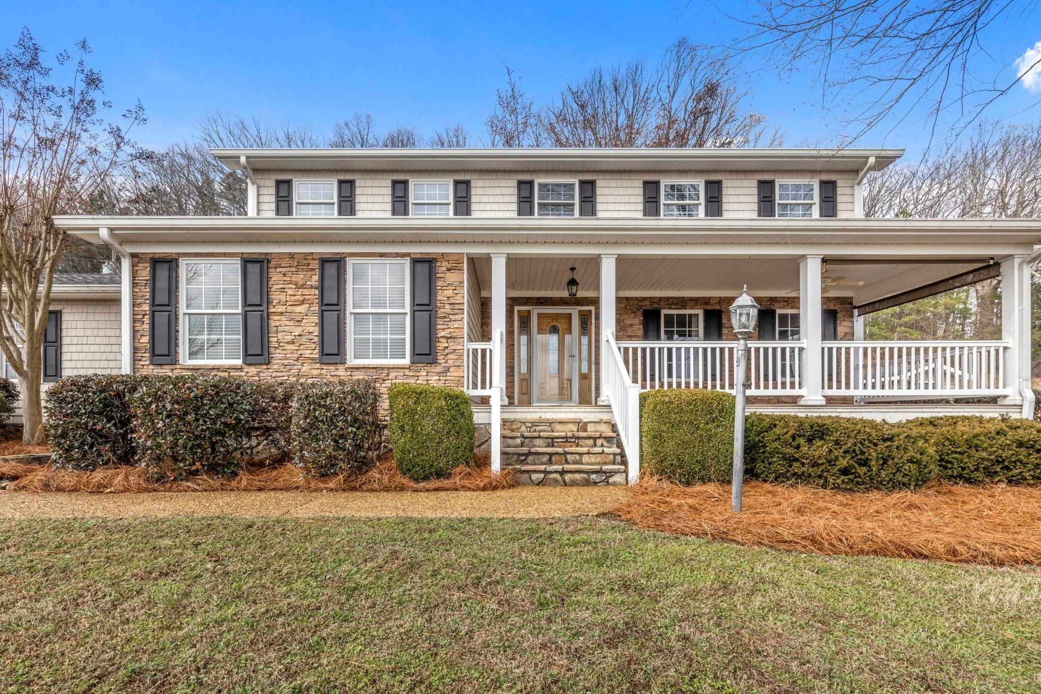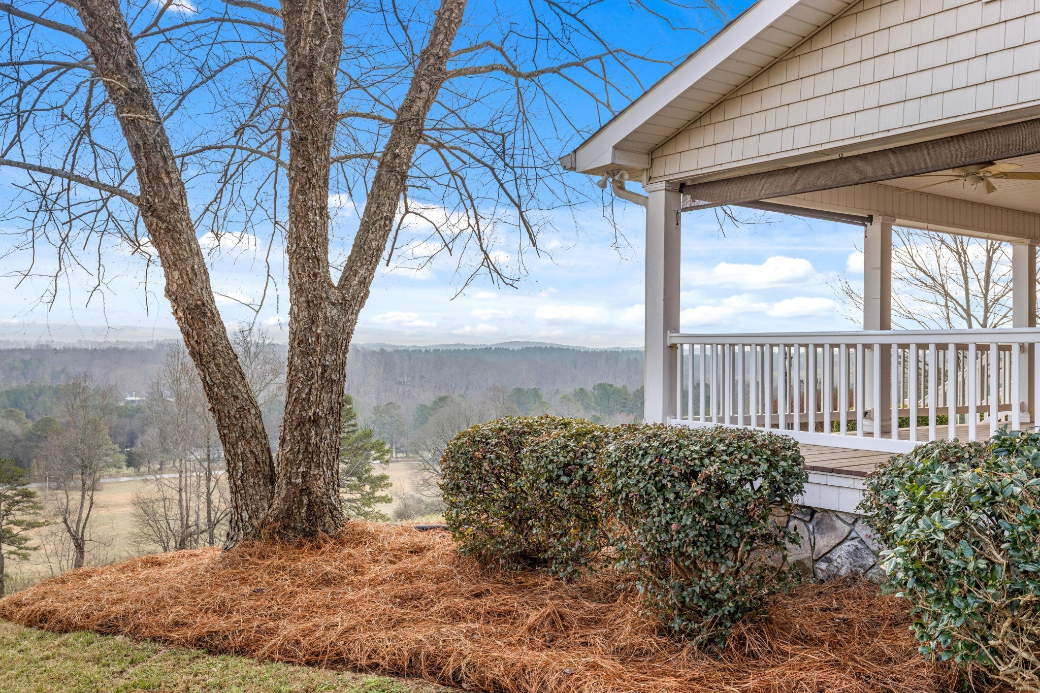 Welcome to 1578 Old Ringgold Rd., a beautiful retreat nestled on over five acres of rolling hills with breathtaking mountain views. This stunning 3-bedroom, 3-bath home offers the perfect blend of comfort, charm, and scenic tranquility. From the moment you arrive, the expansive front porch invites you to slow down and soak in the peaceful surroundings--an ideal space for morning coffee, evening sunsets, and everything in between. Inside, the living room is centered around a grand stone fireplace, creating a warm and inviting focal point for gatherings or quiet nights at home. The spacious kitchen offers ample cabinetry and built-in shelving, combining functionality with character while providing plenty of room for cooking and entertaining. Just beyond, a large insulated sunroom floods the home with natural light and offers year-round enjoyment of the picturesque landscape. The primary suite serves as a private retreat, featuring an ensuite bathroom complete with a large soaking tub, a spacious walk-in shower with a built-in seat, and generous space designed for relaxation. Each additional bedroom also includes built-in shelving and its own ensuite bathroom, offering comfort and privacy for family members or guests alike. Additional features include a two-car garage and two separate storage buildings, providing ample space for vehicles, hobbies, equipment, or workshop needs. With its sweeping views, thoughtful layout, and standout front porch, this property delivers peaceful country living without sacrificing modern conveniences. 1578 Old Ringgold Rd. is more than a home--it's a place to truly unwind and enjoy the beauty of nature.