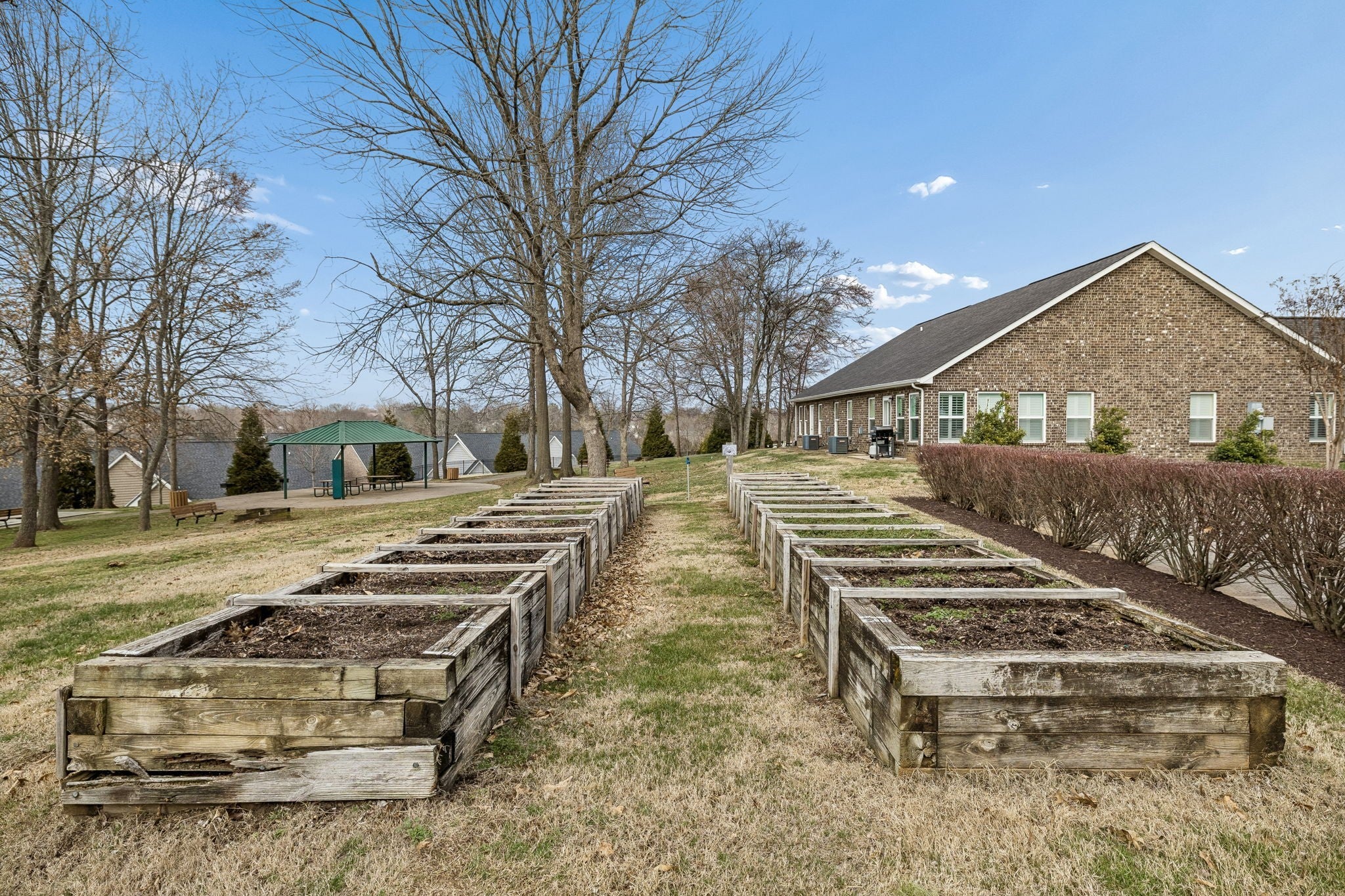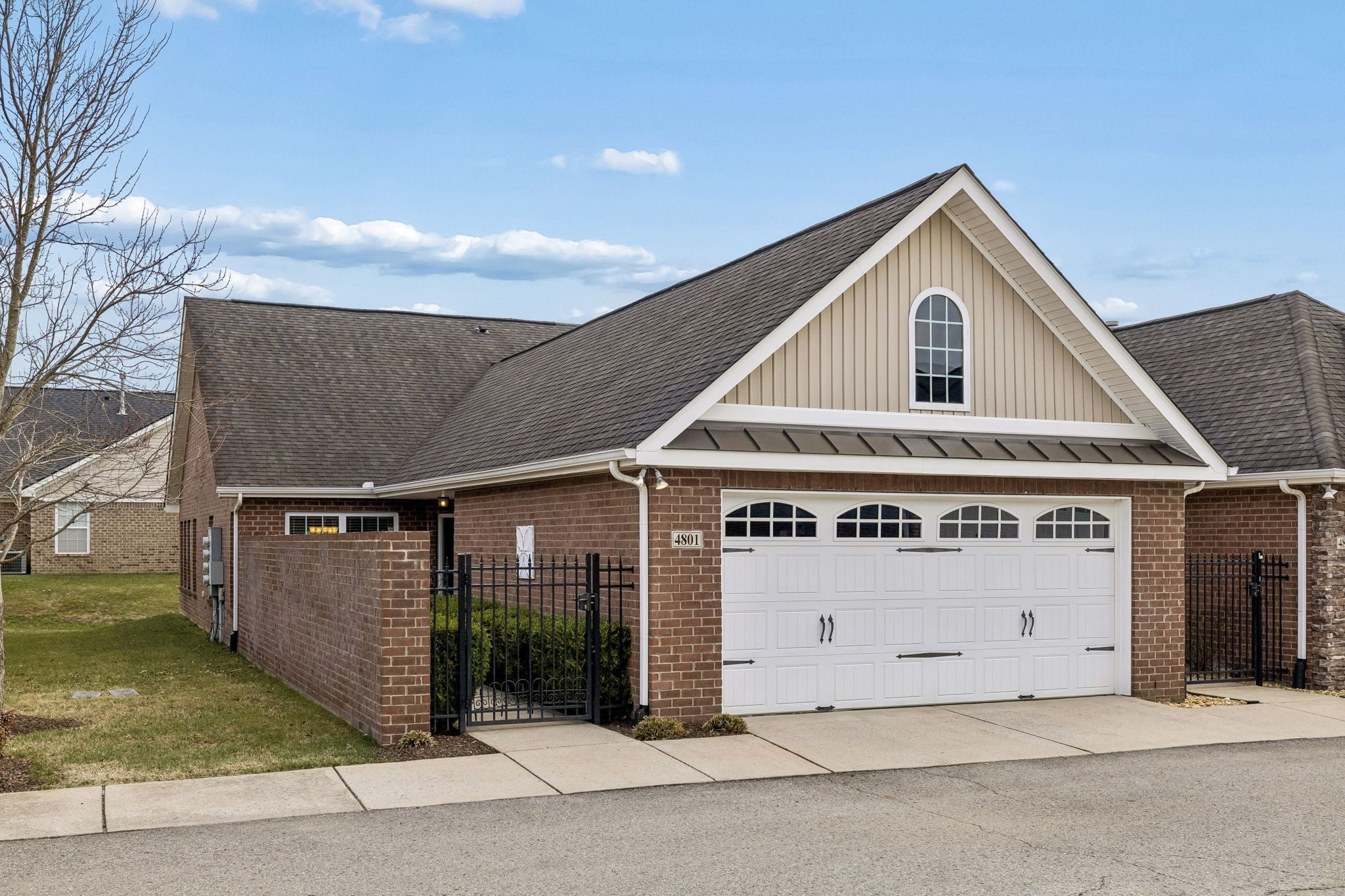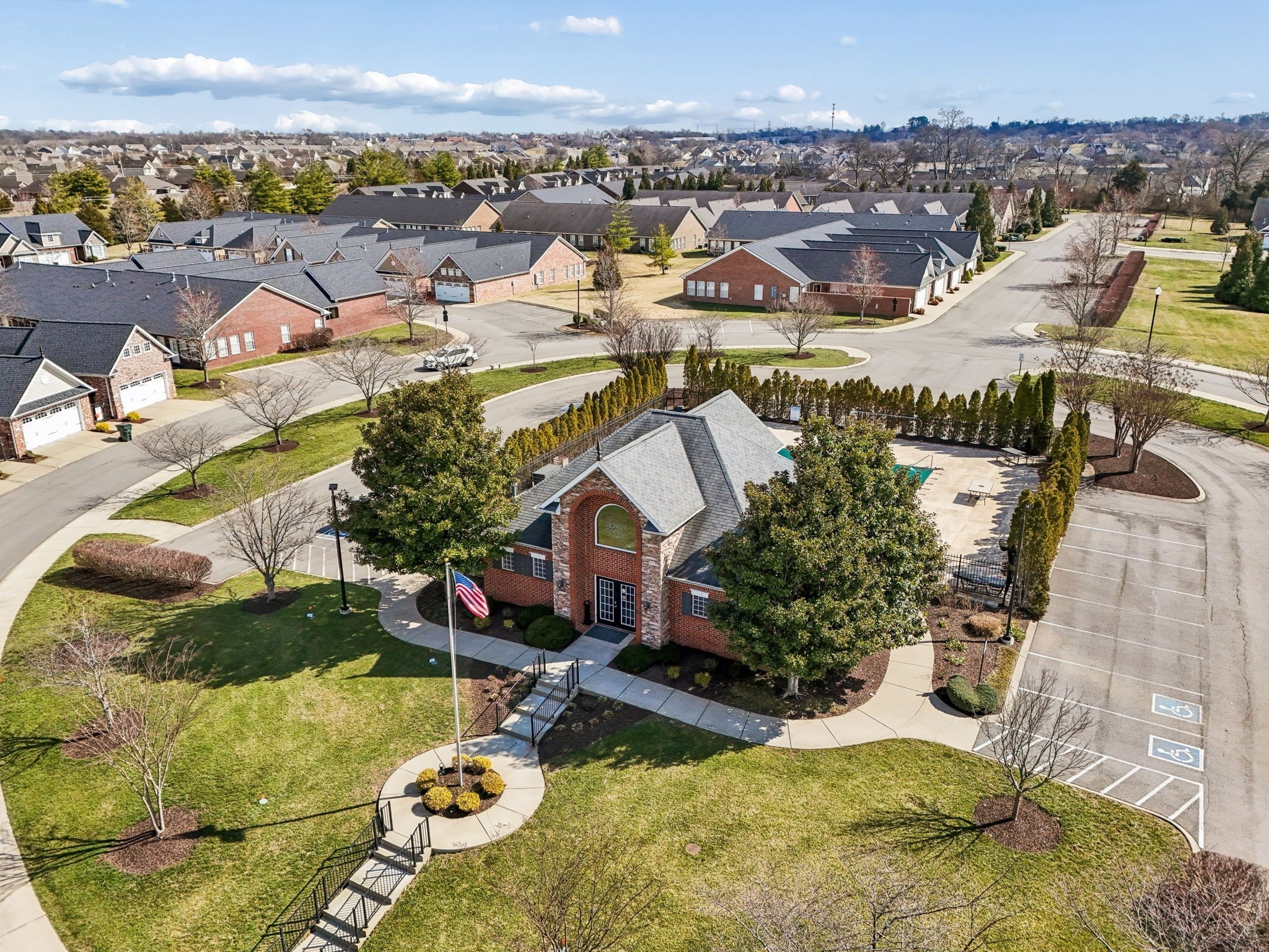 First time offering on this meticulously maintained END unit in the desirable 55+ Lenox Place Community ~ A charming gated courtyard entry with wooded views welcomes you in ~ This spacious home features ONE LEVEL living, beautiful wide plank hand scraped hardwoods throughout the main living areas & a bright open floor plan w/ vaulted ceilings ~ Open Kitchen features a center island, GAS range & ample cabinetry w/ pull out drawers ~ The Refrigerator, Washer & Dryer remain ~ Two spilt bedrooms for privacy + a Florida/Flex Room ideal as a study/craft or 3rd bedroom option ~ The Primary Suite features vaulted ceilings, ensuite bath w/ step in shower, double vanity & WIC ~ Two car oversized garage w/ additional attic storage ~ Lenox Place offers a Clubhouse w/ pool & fitness center, sidewalks throughout w/ a walking trail to the community garden/outdoor grill & shuffleboard amenities area ~ Don't miss this pristine home in an extremely convenient location within minutes to groceries & restaurants with low maintenance living in the heart of Gallatin!