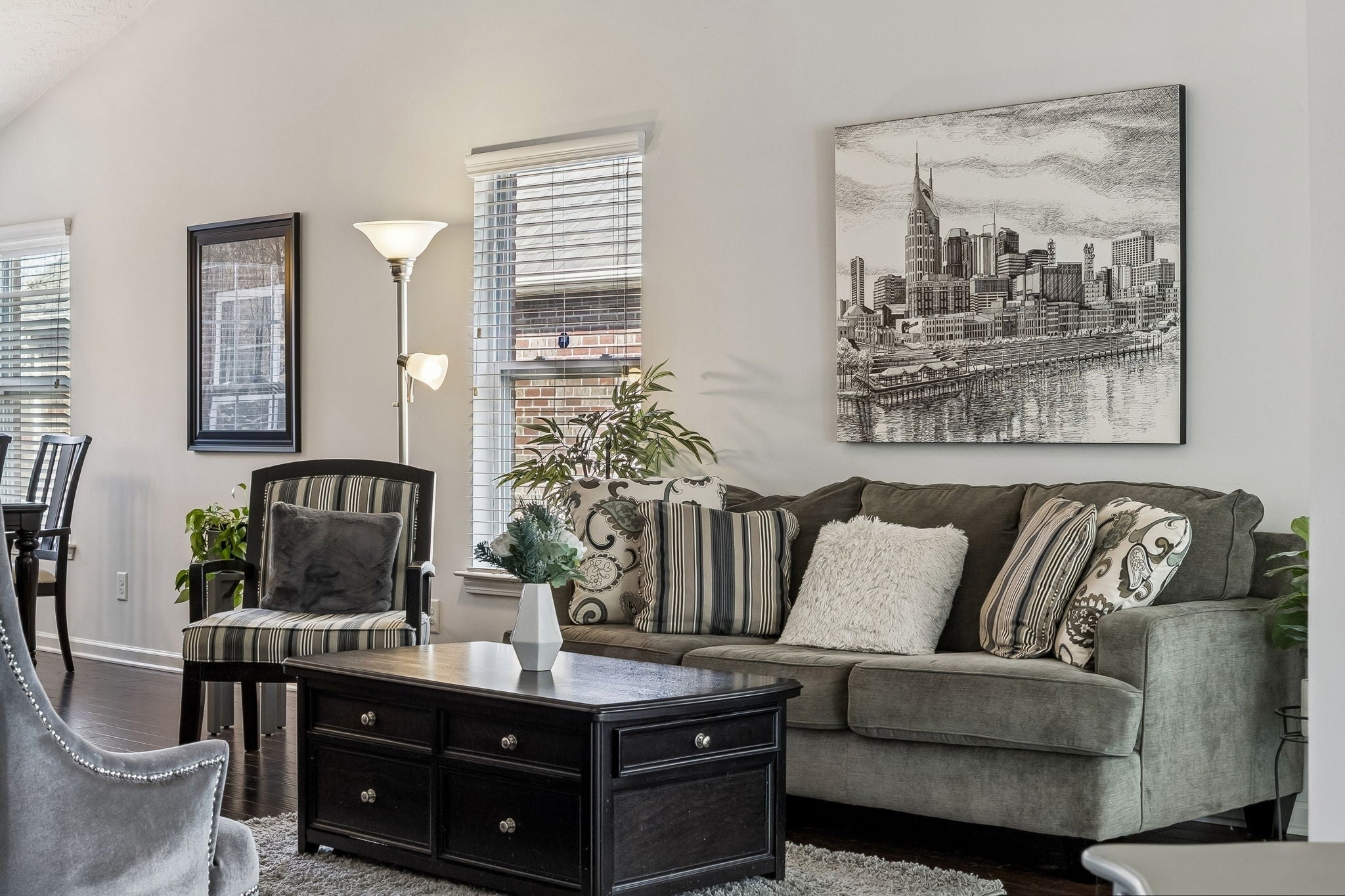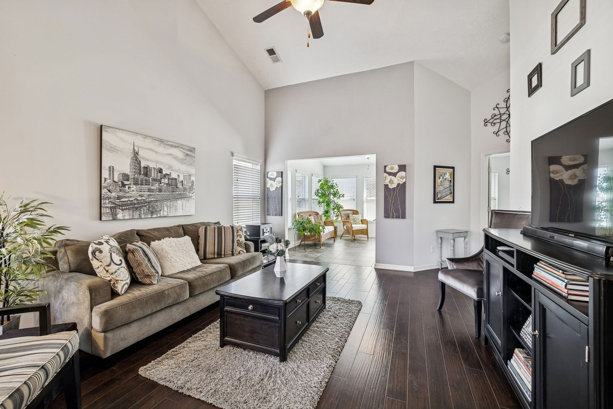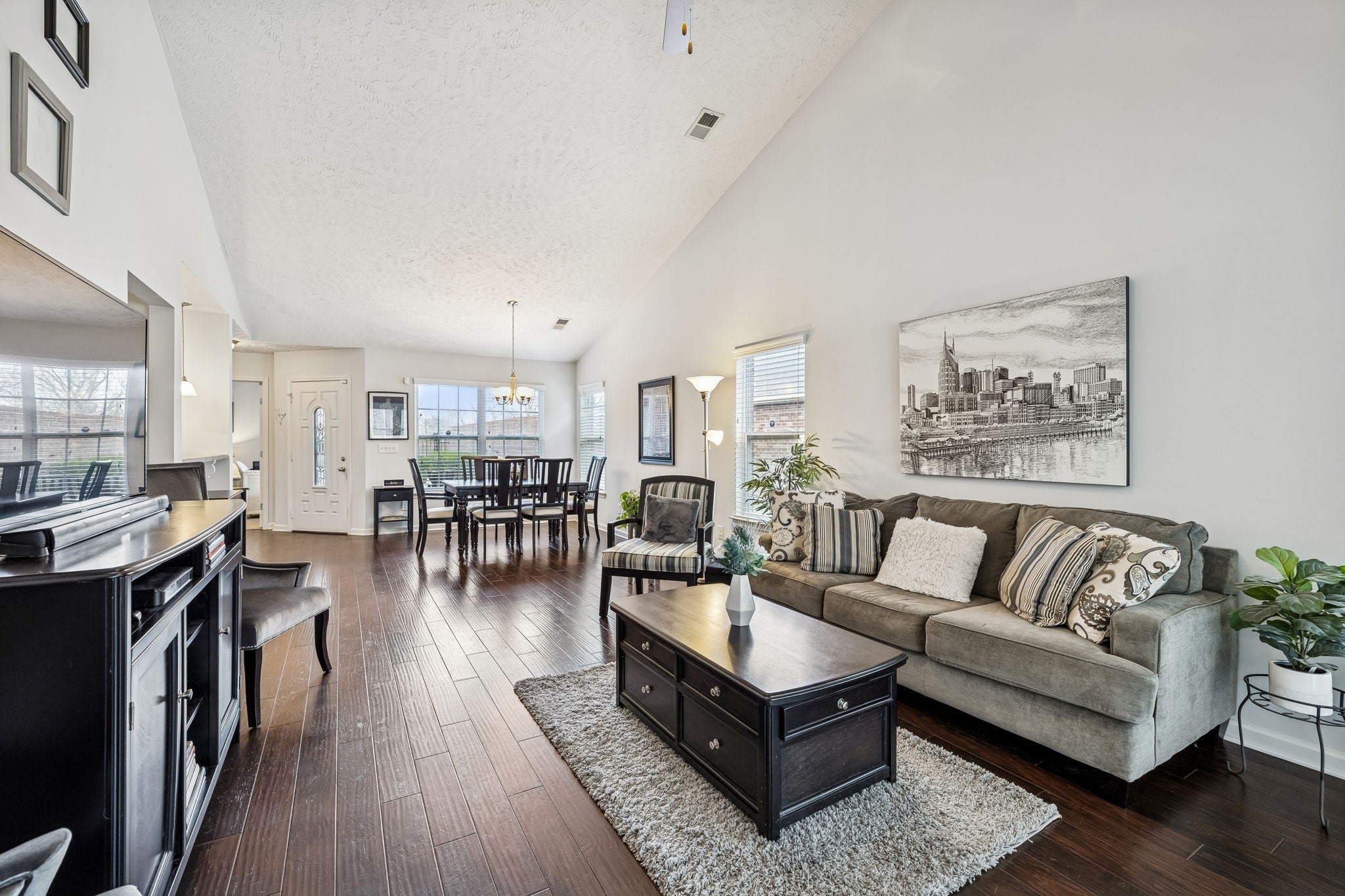 First time offering on this meticulously maintained END unit in the desirable 55+ Lenox Place Community ~ A charming gated courtyard entry with wooded views welcomes you in ~ This spacious home features ONE LEVEL living, beautiful wide plank hand scraped hardwoods throughout the main living areas & a bright open floor plan w/ vaulted ceilings ~ Open Kitchen features a center island, GAS range & ample cabinetry w/ pull out drawers ~ The Refrigerator, Washer & Dryer remain ~ Two spilt bedrooms for privacy + a Florida/Flex Room ideal as a study/craft or 3rd bedroom option ~ The Primary Suite features vaulted ceilings, ensuite bath w/ step in shower, double vanity & WIC ~ Two car oversized garage w/ additional attic storage ~ Lenox Place offers a Clubhouse w/ pool & fitness center, sidewalks throughout w/ a walking trail to the community garden/outdoor grill & shuffleboard amenities area ~ Don't miss this pristine home in an extremely convenient location within minutes to groceries & restaurants with low maintenance living in the heart of Gallatin!