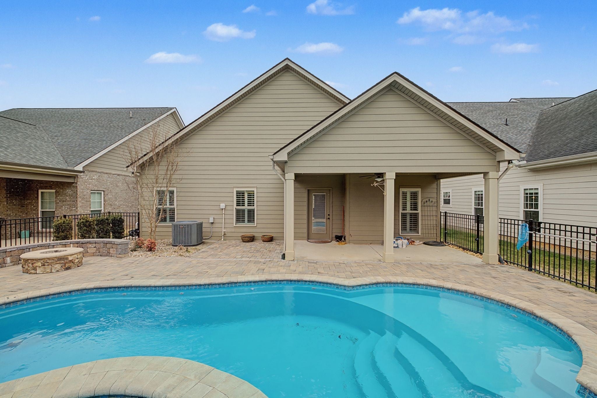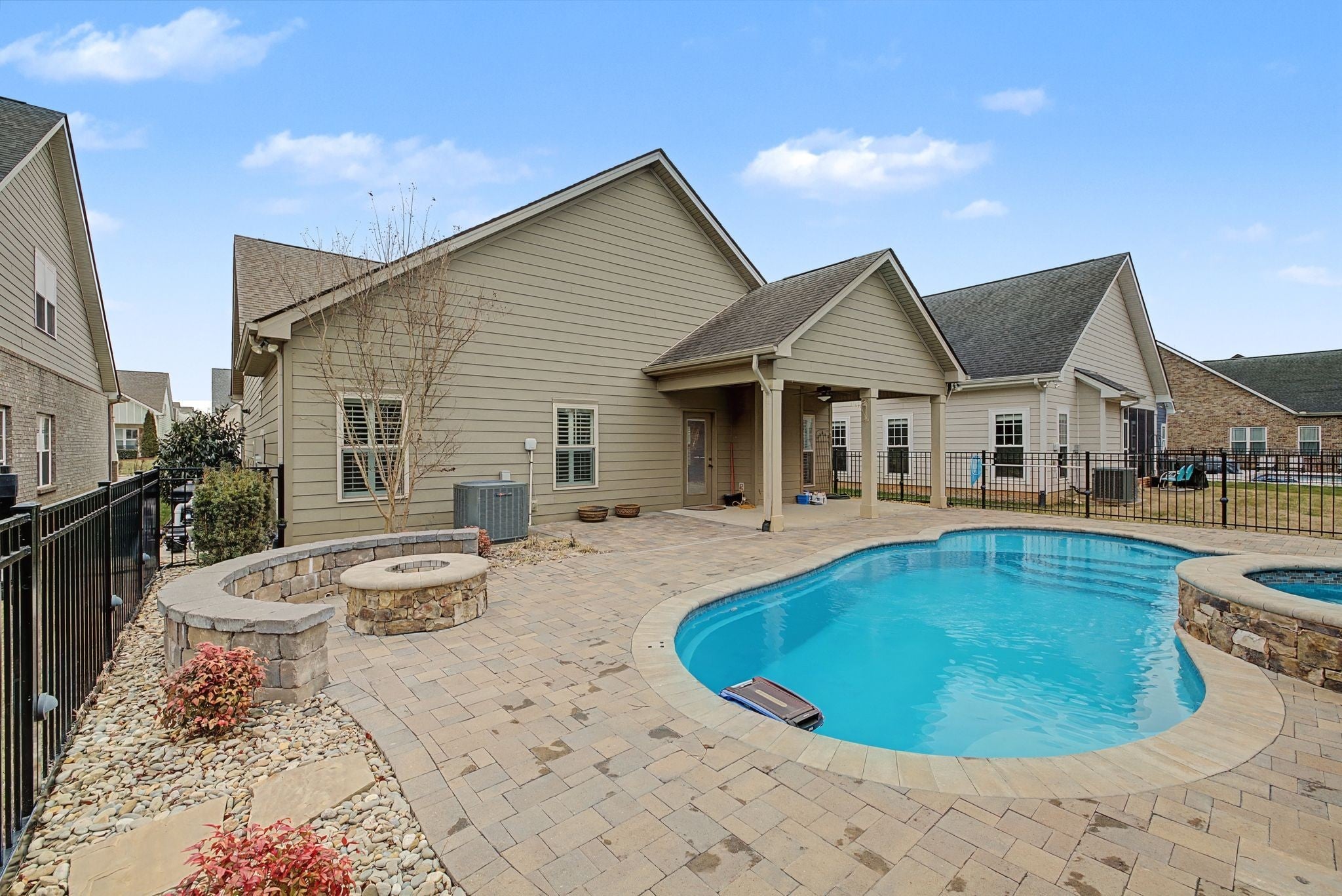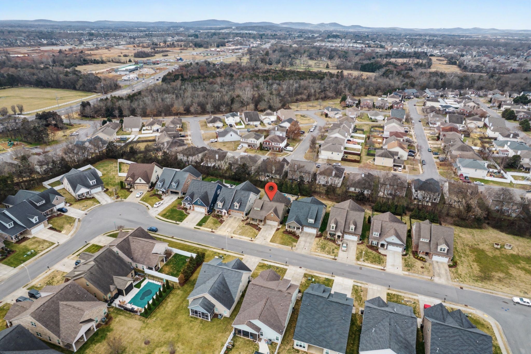 Charming architectural cottage-style home with 3 bdrms, 3 full baths with spacious rooms throughout. Plantation shutters make a great first impression when entering the home. Plantation shutters continue in the upstairs bonus room & third bedroom. Open kitchen w/large island, granite counter tops, kitchen flows into the den area with a searing tray ceiling & gas fireplace. New carpet in primary bedroom & front downstairs bdrm./office, finished wood floors in main living areas. Kitchen includes all appliances plus washer and dryer remain in the utility room. Ample space in the primary bedroom & bath with selective shelving in the closet. Tankless hot water heater and automatic lighting in pantry & supply closet added for convenience. Enjoy the backyard with covered patio, in-ground pool, fire pit, & fence w/lighting-perfect for entertaining. HOA maintained lawn. Metal storage bins in the garage. Close to shopping, restaurants & convenient drive to Franklin and accessibility to I-24 This home is move-in ready with thoughtful upgrades throughout.