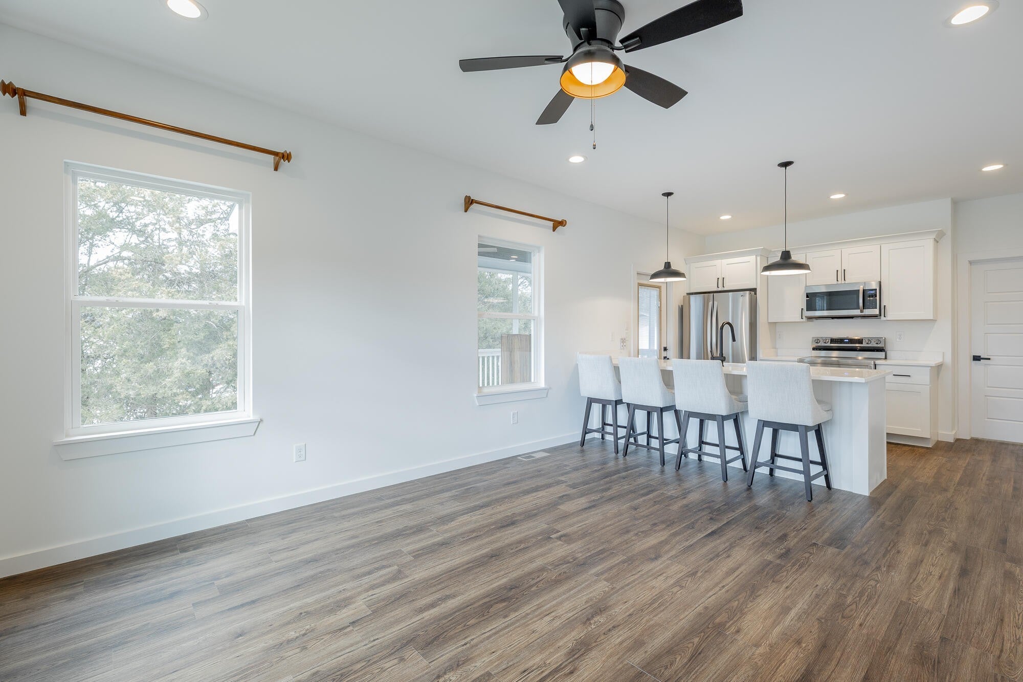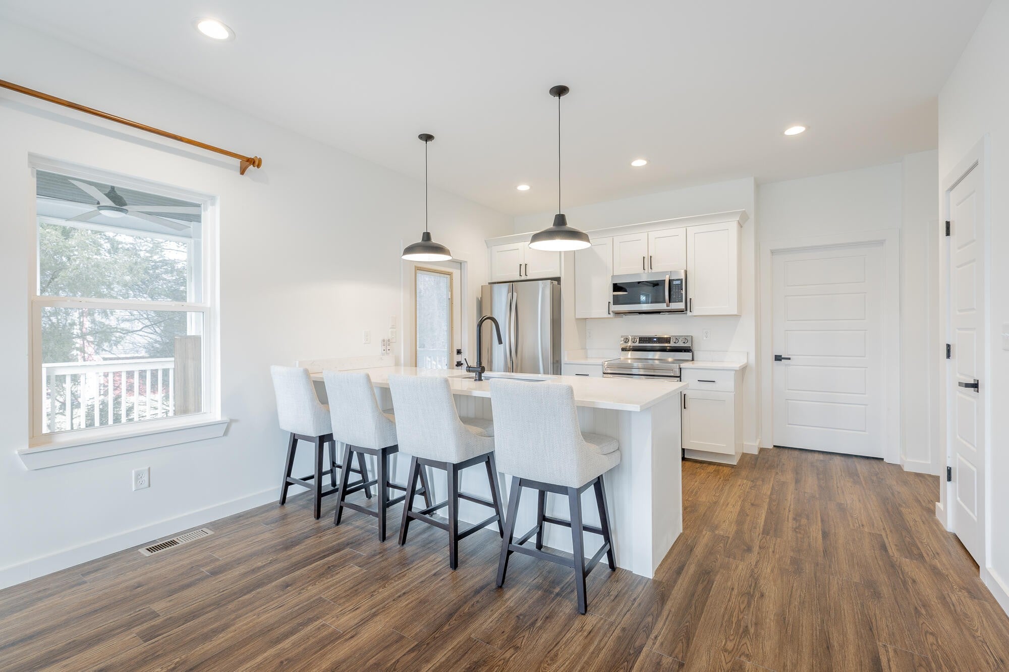 Welcome to 9443 Williams Street, a beautiful home tucked away in a quiet Soddy Daisy neighborhood. This well-designed 3-bedroom, 2-bathroom residence combines comfort and modern style from the moment you step inside. Durable engineered flooring leads you into a spacious living room that flows seamlessly into the dining area and open kitchen--ideal for both everyday living and entertaining guests. The kitchen overlooks the main living space and features quartz countertops and custom cabinetry, creating a functional and stylish heart of the home. Each bedroom is equipped with ceiling fans and additional recessed (canned) lighting, adding comfort and a thoughtful touch throughout. The exterior showcases attractive, low-maintenance James Hardie cement fiber siding for lasting durability and curb appeal. Out back, you'll find a massive screened-in porch--perfect for relaxing, hosting gatherings, or enjoying the outdoors in comfort year-round. Schedule your private showing today and see all this home has to offer!