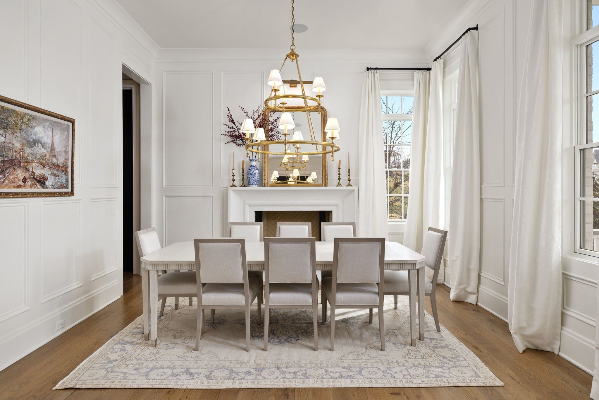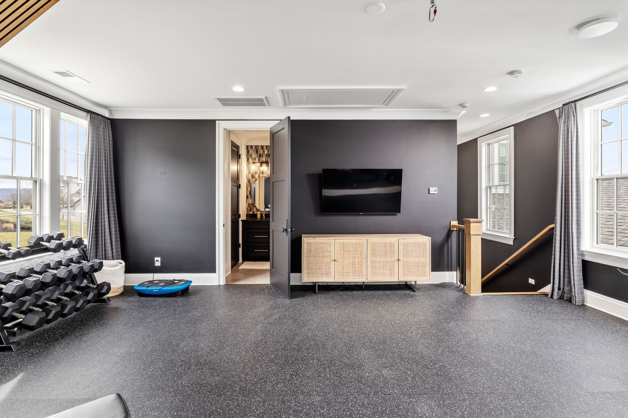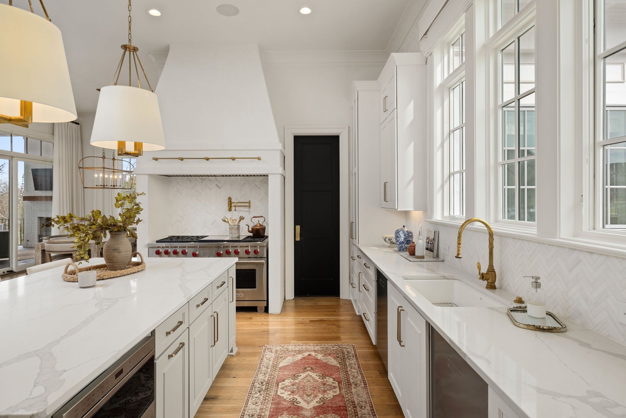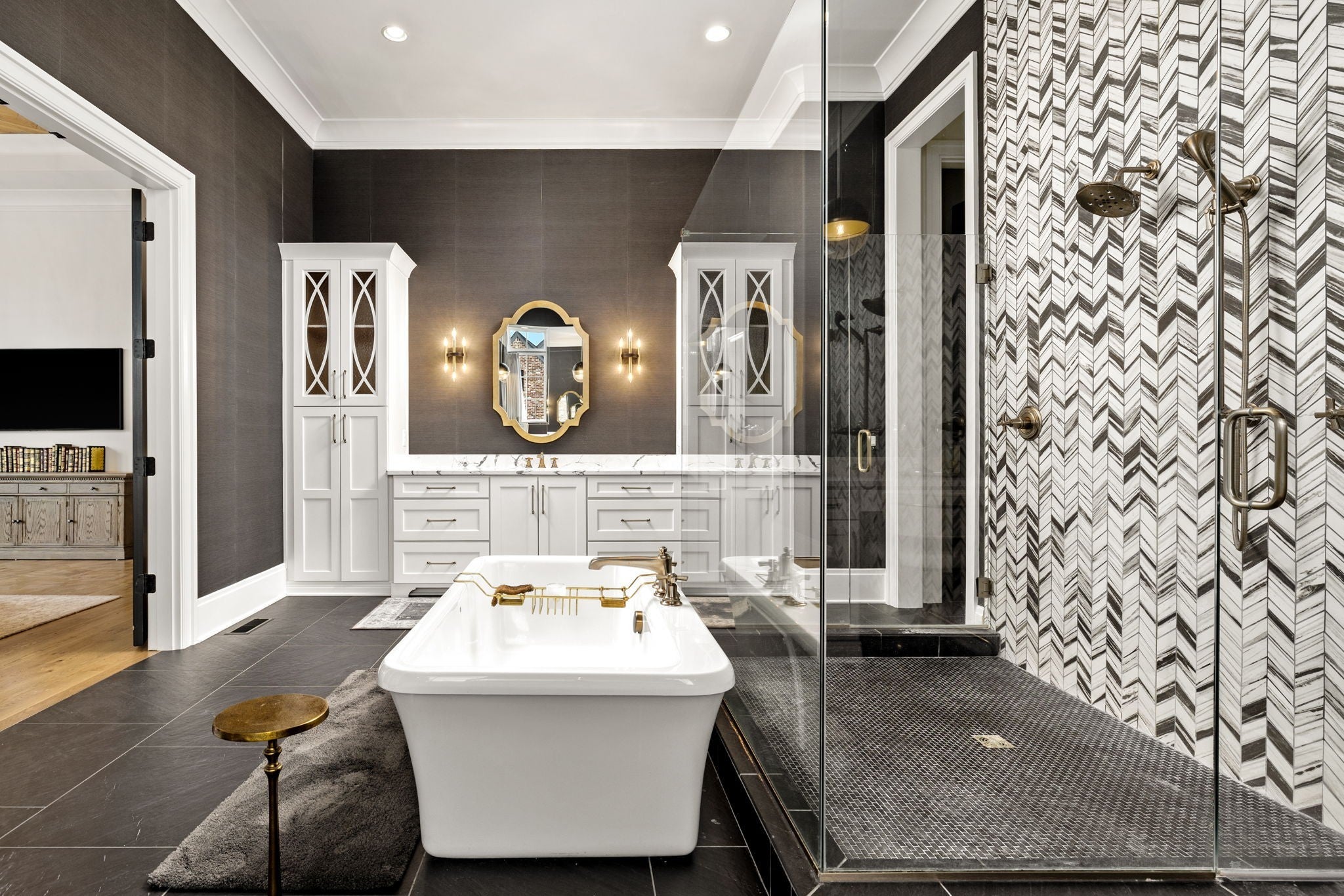 An exceptional custom residence by Stonegate Homes, set within Witherspoon - one of Brentwood’s most desirable communities - and thoughtfully positioned to capture expansive views. Welcoming double covered front porches set the tone for the exceptional craftsmanship found throughout. The main level showcases 12-foot ceilings and a chef’s kitchen designed for effortless hosting. Anchored by a 60” range and featuring a large wet bar, the kitchen offers generous natural light and an open, well-proportioned layout. The primary suite on the main level features elegant tray ceiling details and a spa-like bath with dual vanities, walk-in closets, and dual water closets, offering exceptional privacy and convenience. The second level offers 10-foot ceilings and an expansive bonus room with built-in bunk beds, complemented by en suite baths for all bedrooms. A separate back staircase leads to a thoughtfully reimagined home wellness suite with professional-grade gym flooring, custom wood paneling, a spa-inspired bath, and a custom steam sauna. The outdoor living space is elevated with a covered rear porch featuring a fireplace and grilling area. Overlooking the pool and manicured turf, multiple entertaining areas designed for both relaxation and gatherings are set against the backdrop of a tree-lined common area that offers privacy. The home has been further enhanced with numerous high-end upgrades, including a whole-home water filtration and soft-water system, Waterstone unlacquered brass kitchen fixtures and pot filler, and a majority of lighting replaced with premium Visual Comfort designer fixtures. Additional improvements include many thoughtful touches that enhance both comfort and functionality.