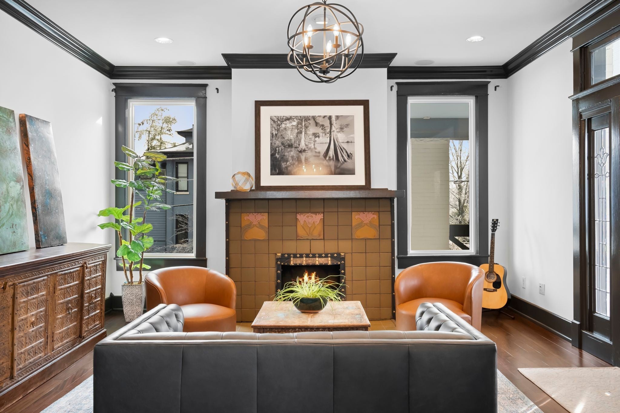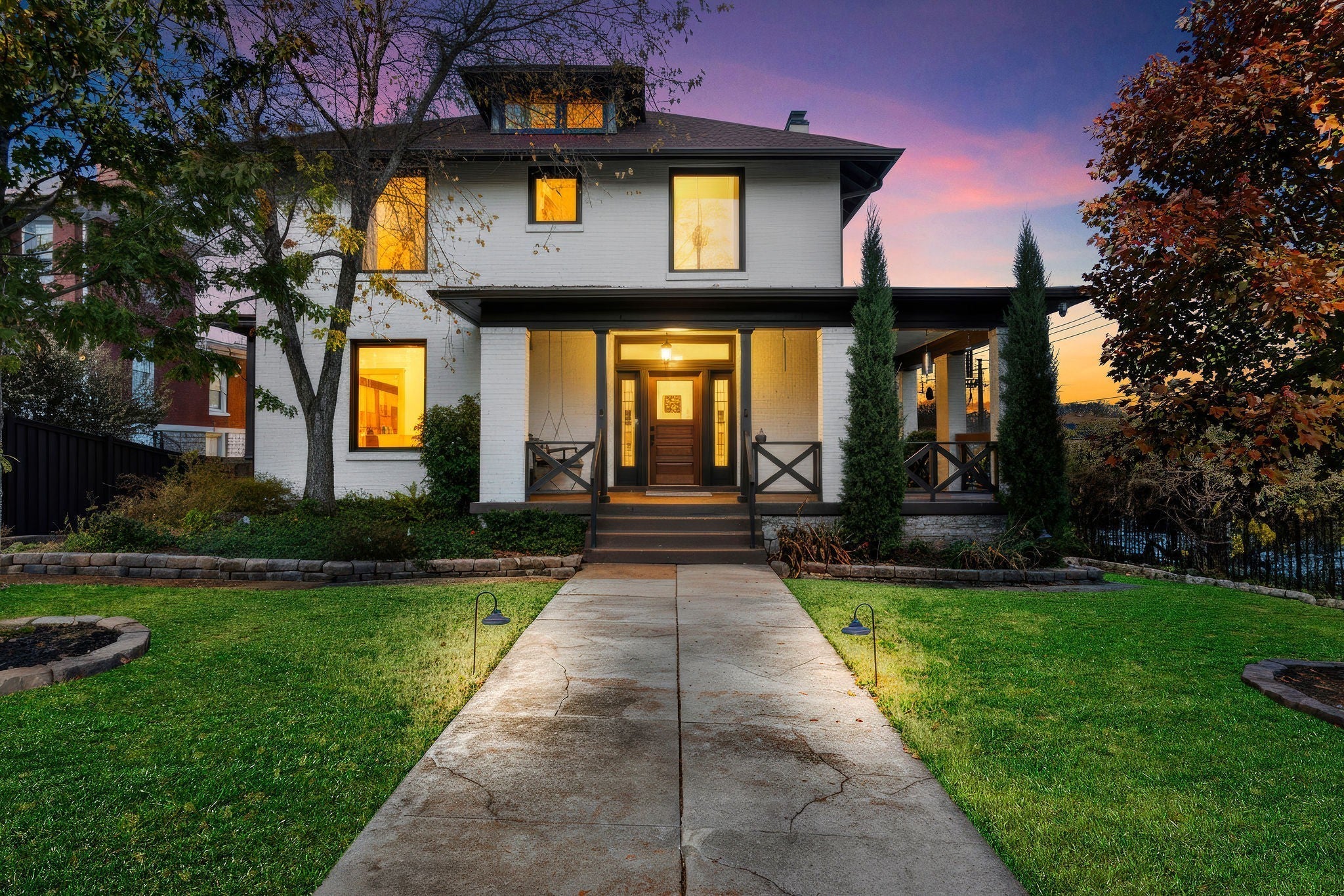 Tucked within the beloved Belmont-Hillsboro neighborhood, this remarkable 1920s American Foursquare sits on a prominent corner lot and stands as a celebrated example of historic Nashville real estate and timeless architecture. Overflowing with character and unmistakable charm, it has been carefully preserved to honor its original craftsmanship while incorporating thoughtful modern upgrades. From the welcoming front porch to the detailed millwork, rare hand-painted Minton tile fireplace, and solid African cherry hardwood floors, the home showcases a level of detail seldom seen today. Recent enhancements—including a new roof (2022) and high-end energy-efficient windows—blend seamlessly with the home’s historic architecture. A rare luxury for this area, the property offers a 2-car attached garage with alley access, a motorized gated entry, and additional off-street parking without blocking the driveway. Security is exceptional, with perimeter fencing, a hidden safe room, and a hard-wired video system. The home is currently arranged as four bedrooms, but the generous layout can easily support five or even six bedrooms, including two potential primary suites. A Generac whole-house generator powers all four levels. The lower level, complete with a private entrance, once served as a recording studio—complete with an isolation booth—offering endless possibilities for creative, professional, or expanded living space. With its walkable location, timeless architecture, and rare combination of historic integrity and modern convenience, this home presents an extraordinary opportunity to own a distinct piece of Nashville’s history. Just minutes from Hillsboro Village, 12th South, Belmont University, Vanderbilt university, Green Hills, and Downtown Nashville.