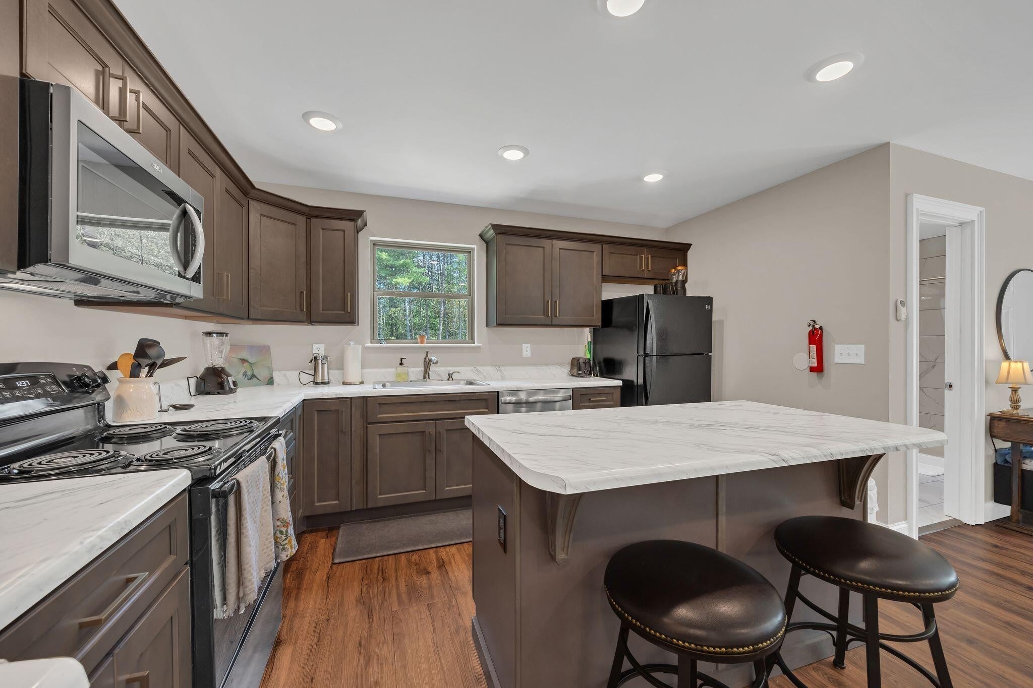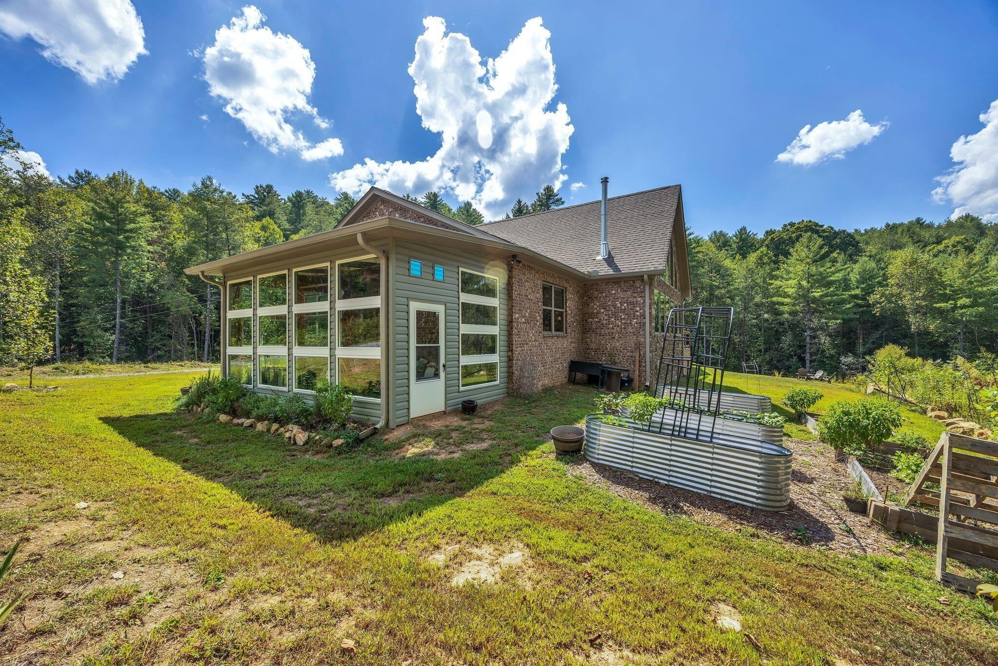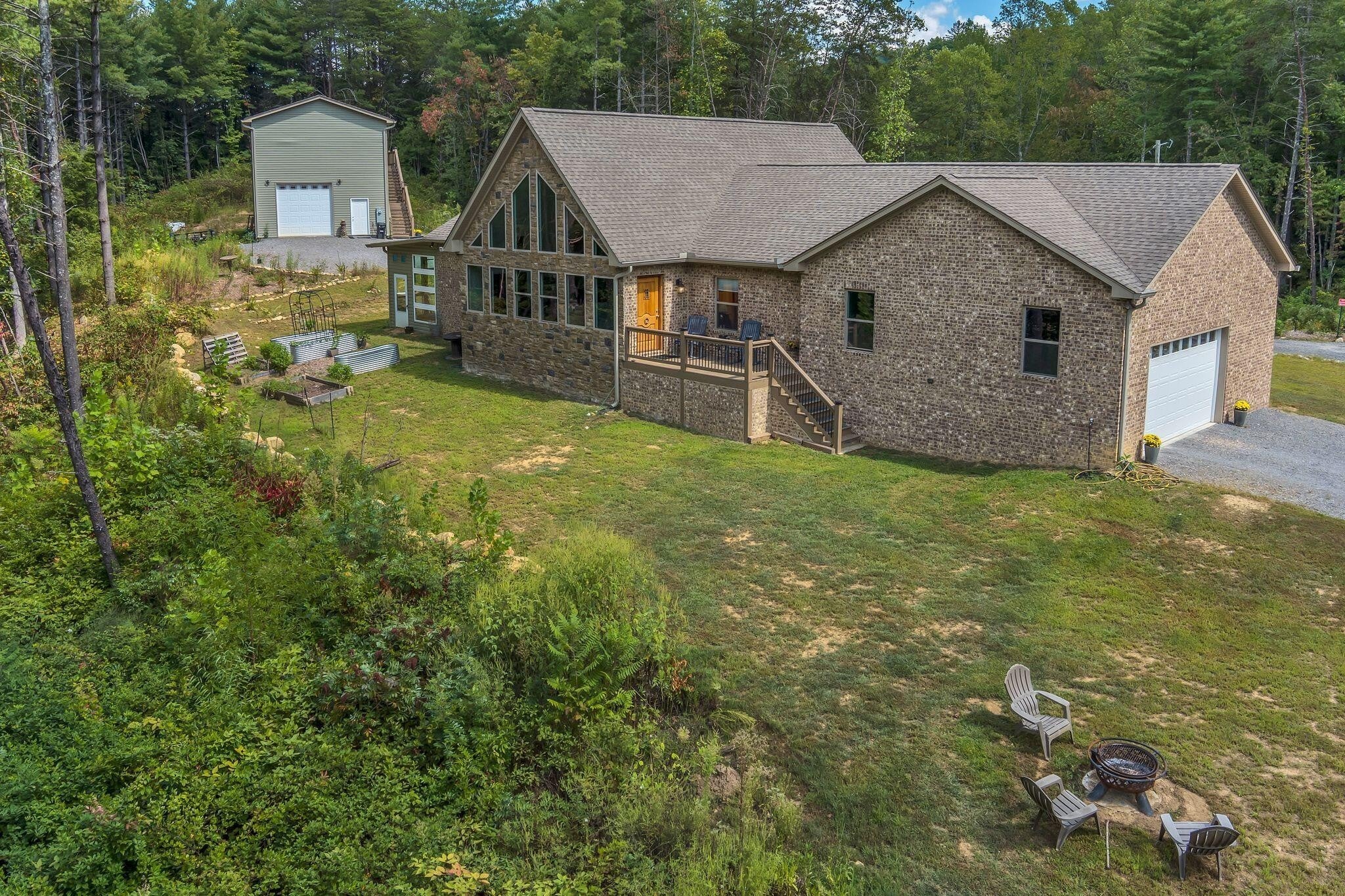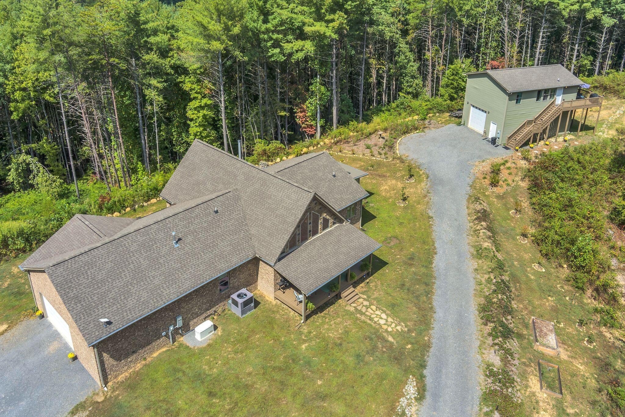 Discover your own private sanctuary on 15 wooded acres, a main home and separate 2 bed, 1 bath mother-in-law home or vacation rental built in 2023 just moments from the Hiwassee River—perfect for tubing, fly fishing, and recreational activities that draw visitors from across the region. Tucked away in peace and quiet, yet surrounded by natural beauty, this property offers both a luxurious lifestyle and practical features designed for comfort and self-sufficiency. The main residence showcases timeless real brick and stone veneer construction, expansive windows that frame wooded evergreen views, and white oak hardwood floors throughout. The open-concept floorplan is anchored by a light-filled living room and a private master suite complete with a greenhouse, large soaking tub, custom tile shower, and spa-like retreat atmosphere. A Generac generator, UV light system and water softener add peace of mind, while the fully encapsulated crawlspace ensures efficiency and durability. The primary residence's kitchen features stainless steel appliances, Quartz countertops with a gas range, seamlessly flowing into the dining and living areas—ideal for entertaining. Outside, enjoy evenings on the secluded back porch, around the fire pit or relax in the quiet of your own forested haven. A separate in-law building or vacation rental offers 2 bedrooms, 1 bath with Quartz countertops, Starlink and a fully insulated RV garage with hookups below, a perfect opportunity for guests, extended family, or potential short term vacation rental income. A large pump house, with water supply pumping 25 gallons per minute, offers further potential to be built out into additional living quarters. The gravel driveway has been recently refreshed as well, and utilities remain remarkably low thanks to thoughtful systems already in place. This property is more than a home—it's a retreat environment, blending tranquility, luxury, and tremendous investor opportunity. Schedule your private showing today.
