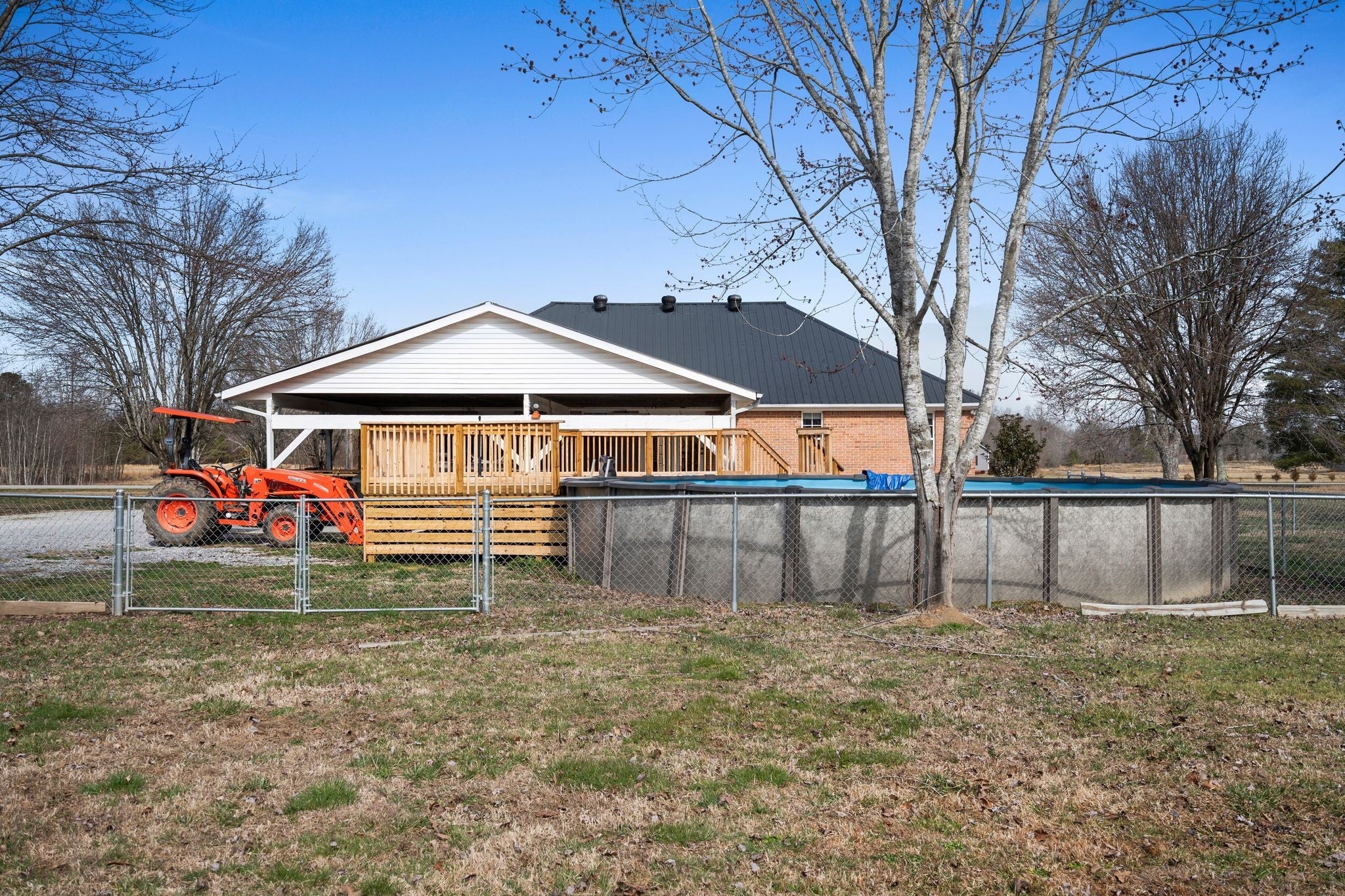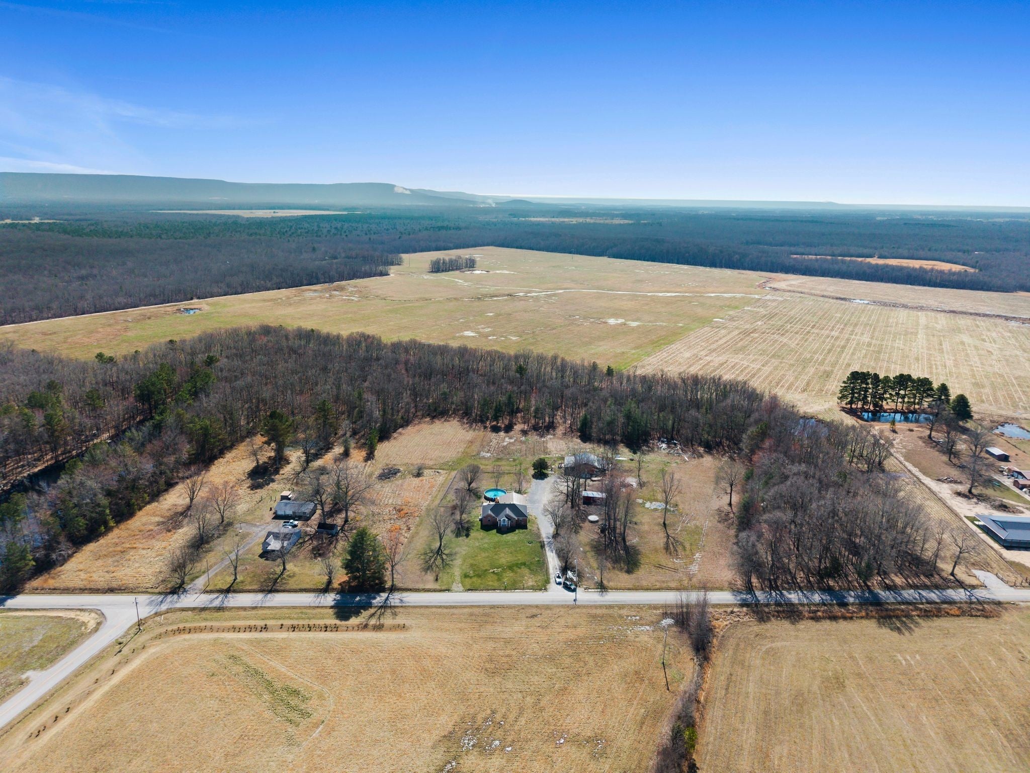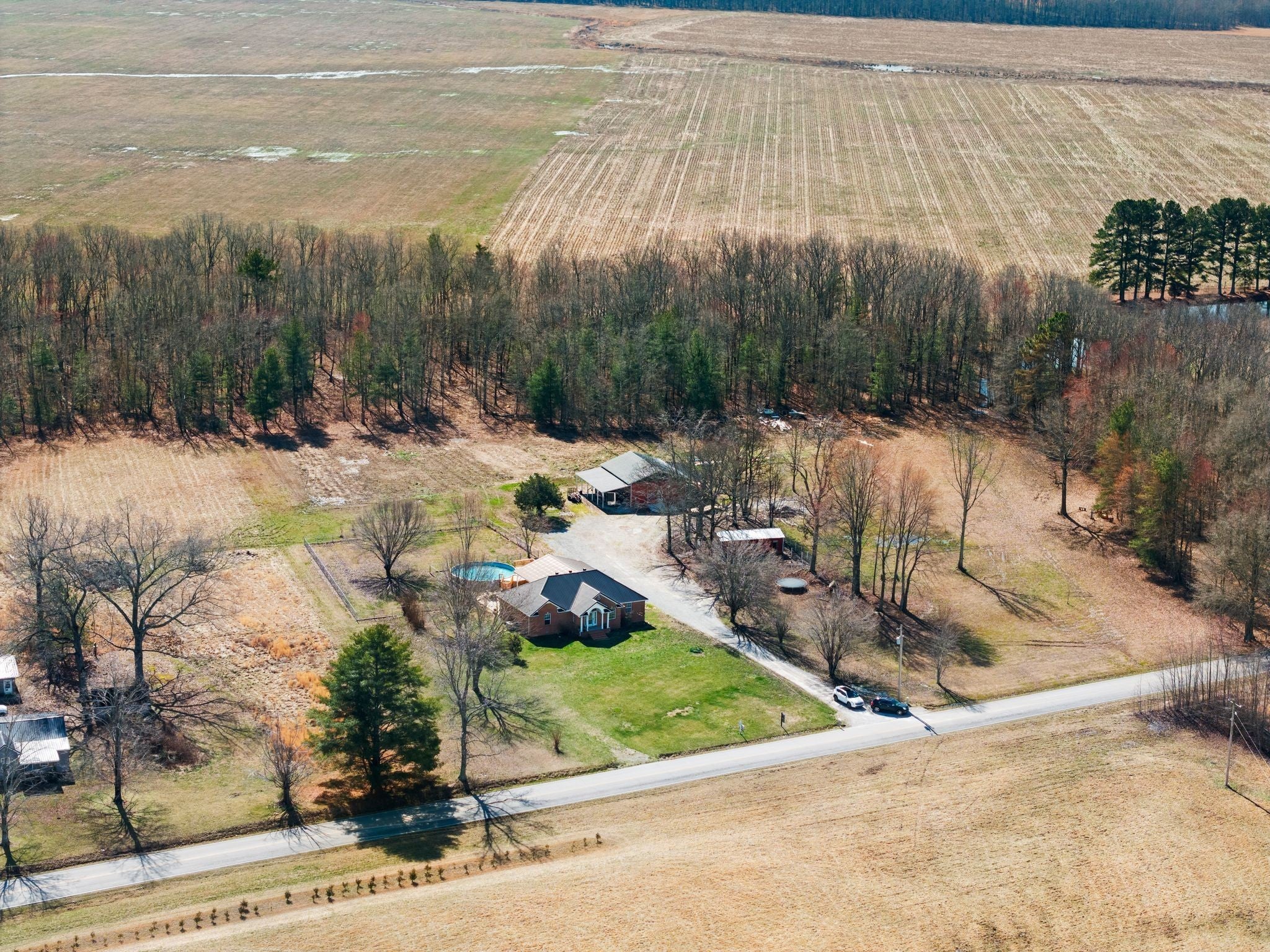 Welcome to a rare opportunity to own a true homestead-ready property offering 16.5 level, usable acres, a large workshop, fenced chicken coop area and the infrastructure needed for farm, hobby, or rural living. This all brick, 3 bedroom, 2 bath ranch-style home provides an open floor plan perfect for everyday country life. The upstairs area of this ranch home offers a large attic/storage area that is partially drywalled already for future expansion. A substantial (30'x40') shop building with tall ceiling and concrete floor supports equipment storage, livestock, and serious workshop use. Shop has separate electric meter. Covered areas and fenced spaces allow for immediate use for animals, gardens, or expansion of a working homestead. A fenced chicken coop with dedicated water spigot supports easy, everyday homestead living, while the above-ground pool with newer deck offers a perfect place to unwind and enjoy peaceful country views. Outdoor features include a covered rear area, large concrete pad, and an above-ground pool with surrounding deck—ideal for relaxing after a day on the land. Mature fruit trees (apple and pear) and a 1-acre garden patch are established for your enjoyment. The acreage offers privacy, flexibility, and room to grow, whether your vision includes farming, recreation, or simply slowing down. Properties with this combination of land, infrastructure, and versatility are increasingly hard to find. Wonderfully low taxes! Schedule your showing soon to experience the full potential this property offers.