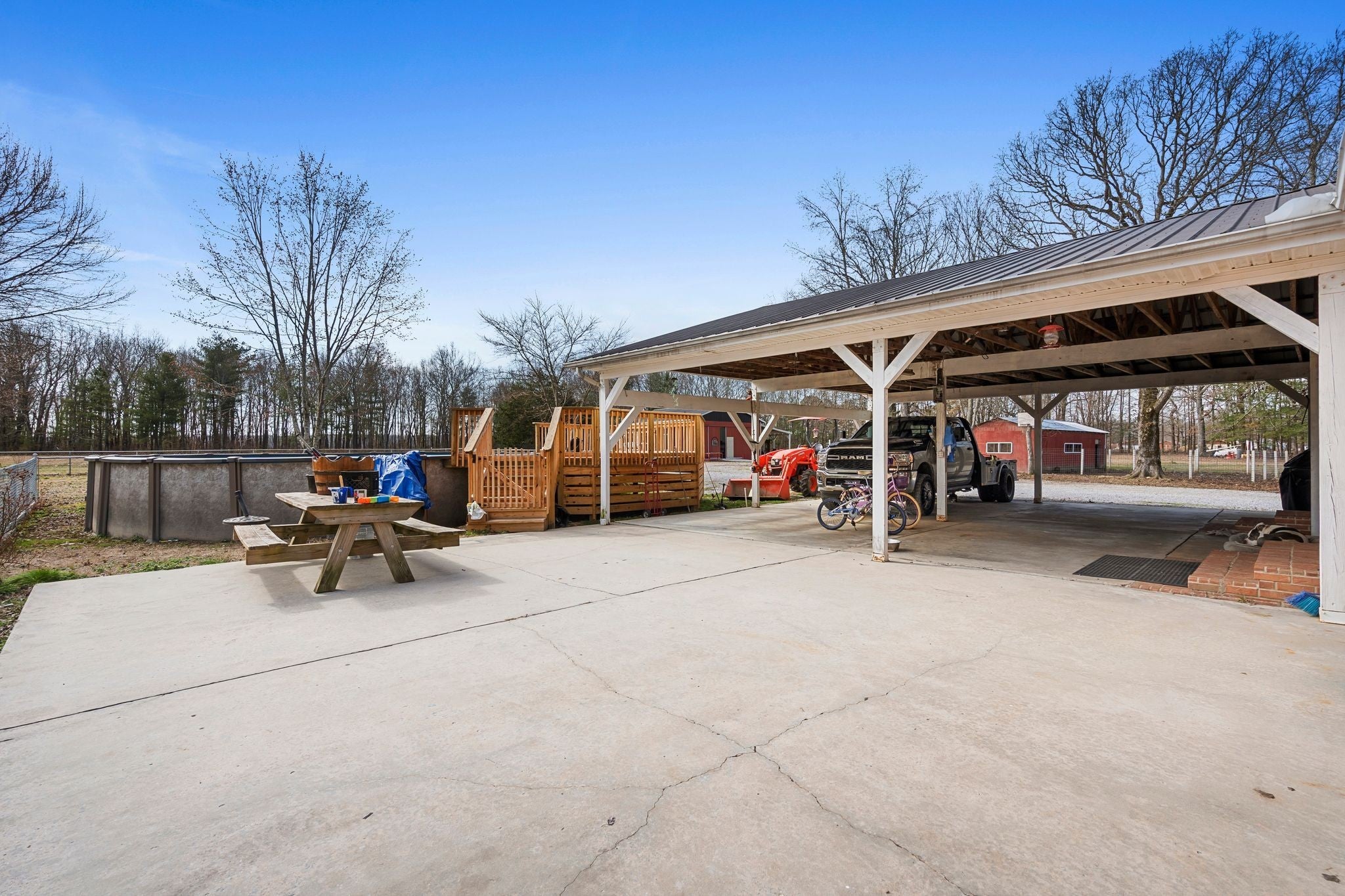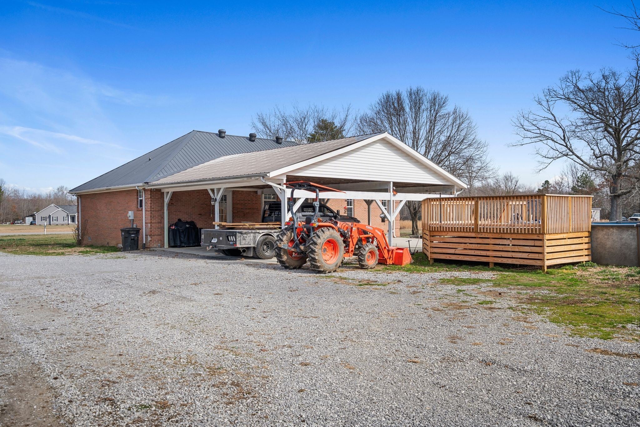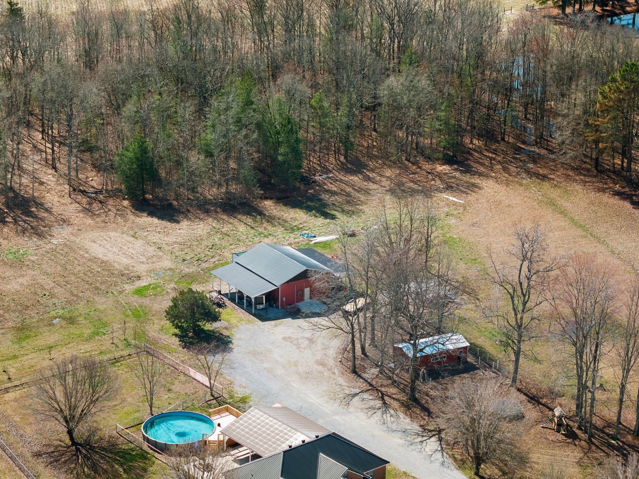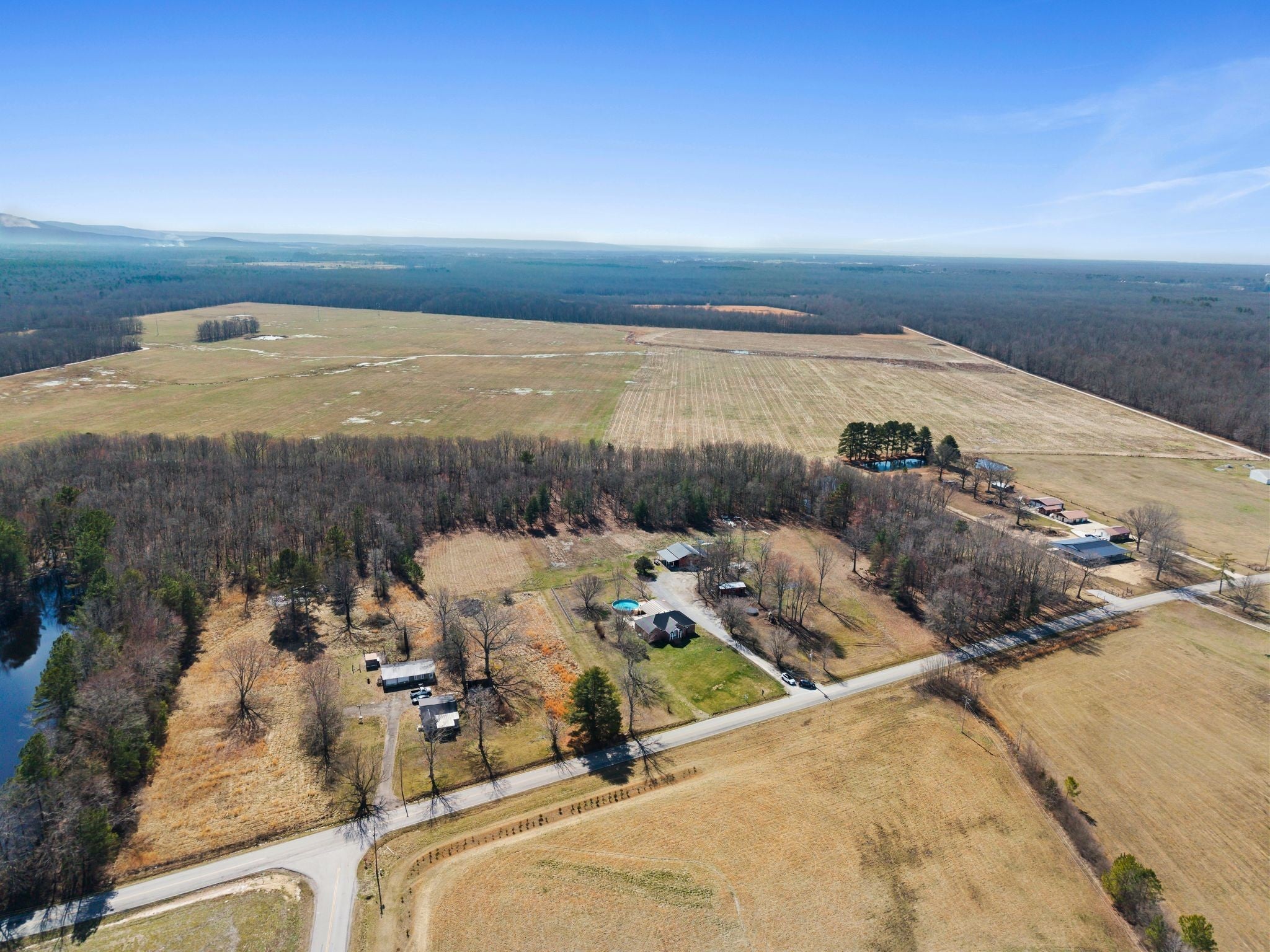 Welcome to a rare opportunity to own a true homestead-ready property offering 16.5 level, usable acres, a large workshop, fenced chicken coop area and the infrastructure needed for farm, hobby, or rural living. This all brick, 3 bedroom, 2 bath ranch-style home provides an open floor plan perfect for everyday country life. The upstairs area of this ranch home offers a large attic/storage area that is partially drywalled already for future expansion. A substantial (30'x40') shop building with tall ceiling and concrete floor supports equipment storage, livestock, and serious workshop use. Shop has separate electric meter. Covered areas and fenced spaces allow for immediate use for animals, gardens, or expansion of a working homestead. A fenced chicken coop with dedicated water spigot supports easy, everyday homestead living, while the above-ground pool with newer deck offers a perfect place to unwind and enjoy peaceful country views. Outdoor features include a covered rear area, large concrete pad, and an above-ground pool with surrounding deck—ideal for relaxing after a day on the land. Mature fruit trees (apple and pear) and a 1-acre garden patch are established for your enjoyment. The acreage offers privacy, flexibility, and room to grow, whether your vision includes farming, recreation, or simply slowing down. Properties with this combination of land, infrastructure, and versatility are increasingly hard to find. Wonderfully low taxes! Schedule your showing soon to experience the full potential this property offers.