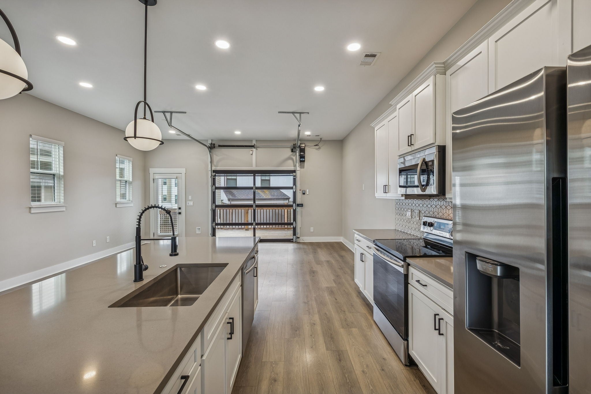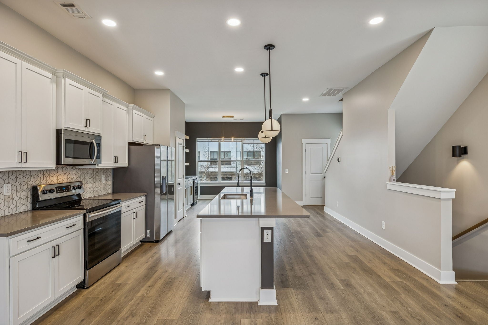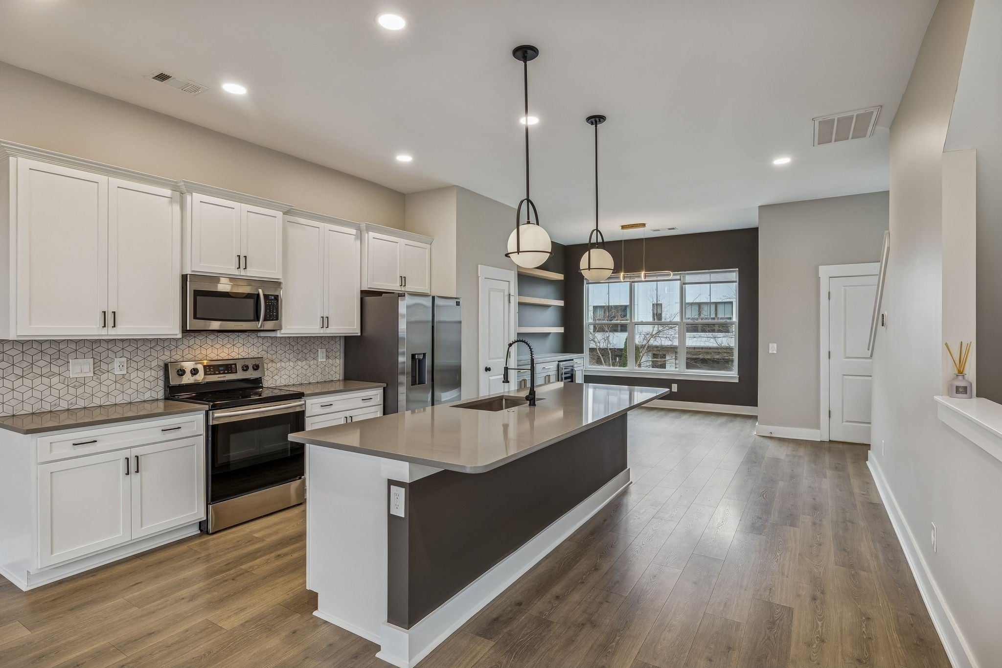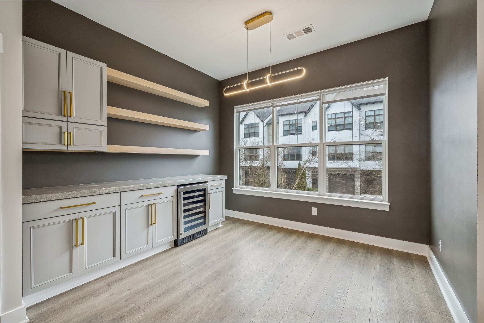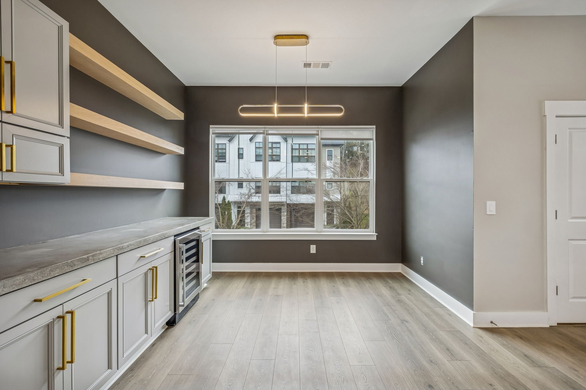 Conveniently located to all West & Downtown Nashville has to offer, this upgraded end-unit townhome places you right in the heart of it all! The open-concept second level is designed for everyday living & entertaining. It showcases LVP flooring throughout & a spacious living room highlighted by a unique glass garage door with a retractable screen that opens seamlessly to the covered second-level deck. The chef’s kitchen is equipped with quartz countertops, a tile backsplash & stainless-steel appliances. Flowing directly into the dining nook, you will find a gorgeous wet bar complete with a wine fridge, concrete countertops, custom cabinetry & open shelving. On the 1st level of the home, a versatile flex room features an electric fireplace & an acoustic soundproof accent wall, offering a perfect space for a home office, media room or guest retreat. The flex room has an ensuite, renovated bathroom with a handmade concrete vanity, LED anti-fog mirror & tile shower with a frameless glass door. Sealed concrete flooring throughout this level adds both durability and contemporary appeal. Upstairs, the primary suite boasts a high ceiling, ceiling fan & a spacious closet with built-in shelving, while the ensuite bath has dual vanities, tile flooring & a tile shower with a glass door. Additional features of the home include a 1-car garage, modern light fixtures, a smart thermostat, window treatments, and a rear patio. Located just minutes from the West Nashville Shopping Center, Charlotte Park & Bellevue shopping/restaurants.