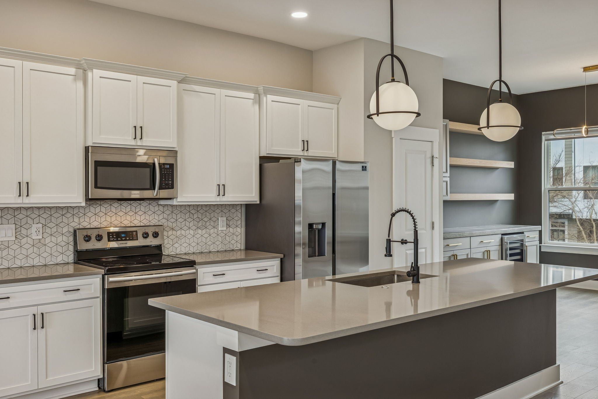 - Built-in Features, Ceiling Fan(s), Entrance Foyer, Extra Closets, High Ceilings, Open Floorplan, Pantry, Smart Thermostat, Walk-In Closet(s), Wet Bar, Kitchen Island