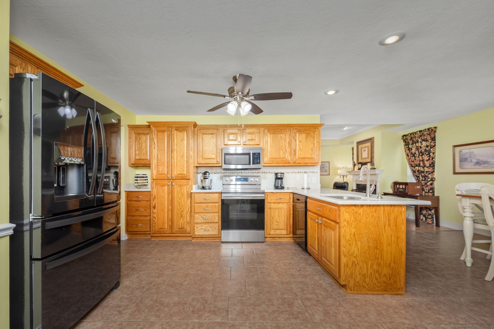 - Built-In Electric Oven, Built-In Electric Range, Dishwasher, Microwave, Refrigerator, Stainless Steel Appliance(s)